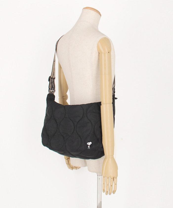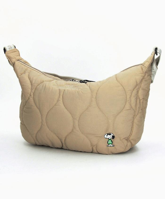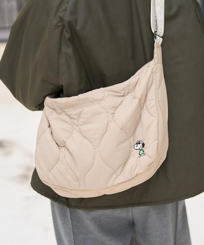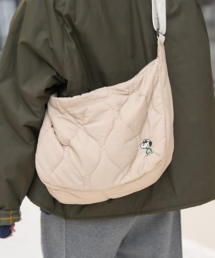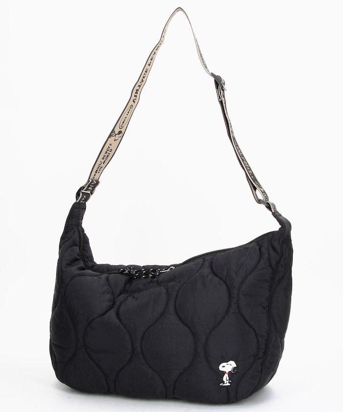 特別設計的 PEANUTS 設計編織帶和史努比刺繡點綴。米色和黑色版本有不同的刺繡圖案。