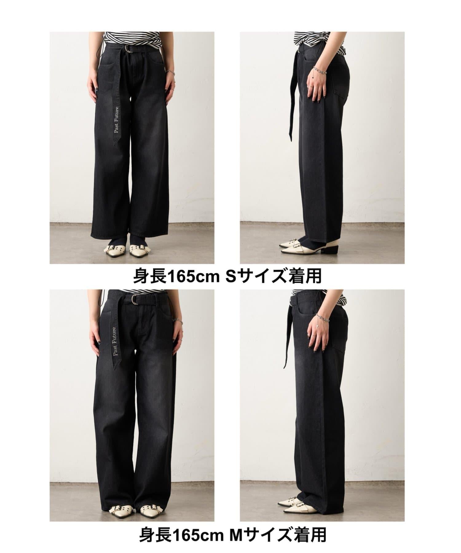 在標準直筒牛仔布上繫上腰帶,可作為套裝穿著(也可以不繫腰帶)。(也可以不配腰帶。) ・牛仔布採用加工感設計,打造時尚外觀。
