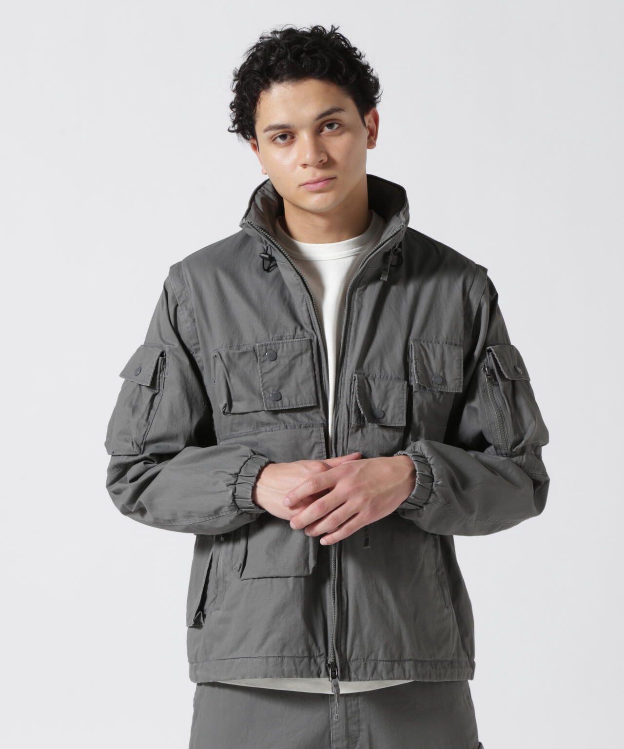 AVIREX 官方旗艦店] 商品名稱:PIGMENT 2WAY CARRIER JACKET商品詳情 - 兩種穿法均可的軍裝風夾克 - 超大廓形,袖子可拆卸 - 下襬有抽繩,可調整廓形 - 具有立體感的多口袋設計設計有多個具有立體感的插袋,採用表面有顏料塗層的薄棉斜紋織物。
