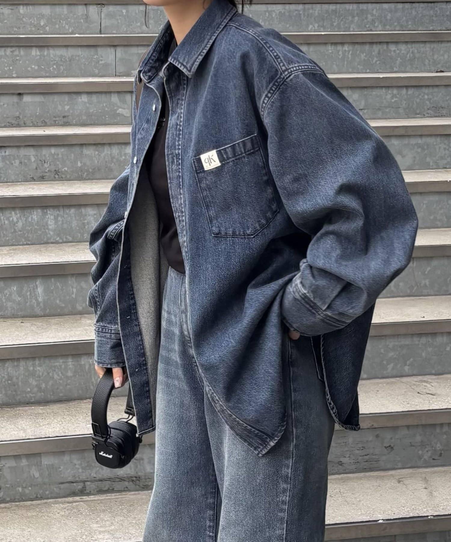 【PIKO企畫 / 】寬鬆褶皺牛仔襯衫