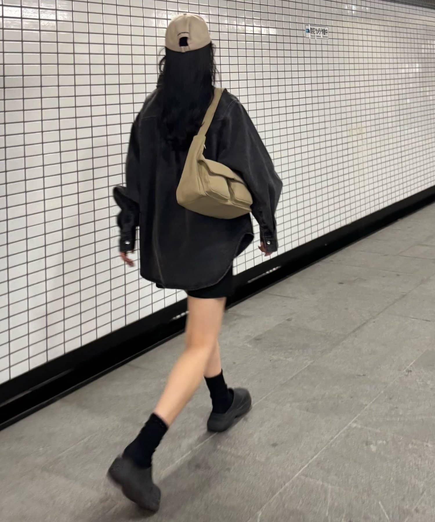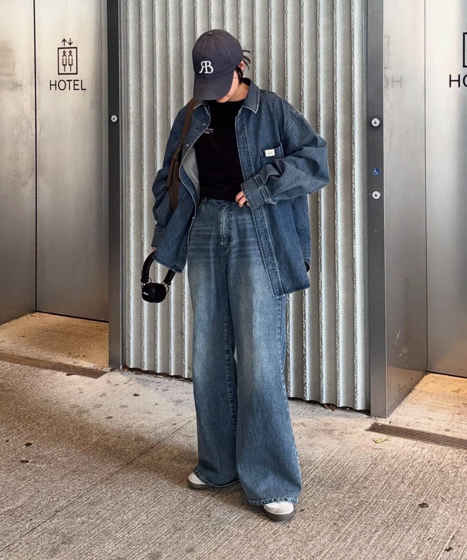 同時建議搭配同材質的牛仔長褲作為套裙!正面的口袋裝飾有與牛仔短褲相同的徽標笙名,同樣講究細節。