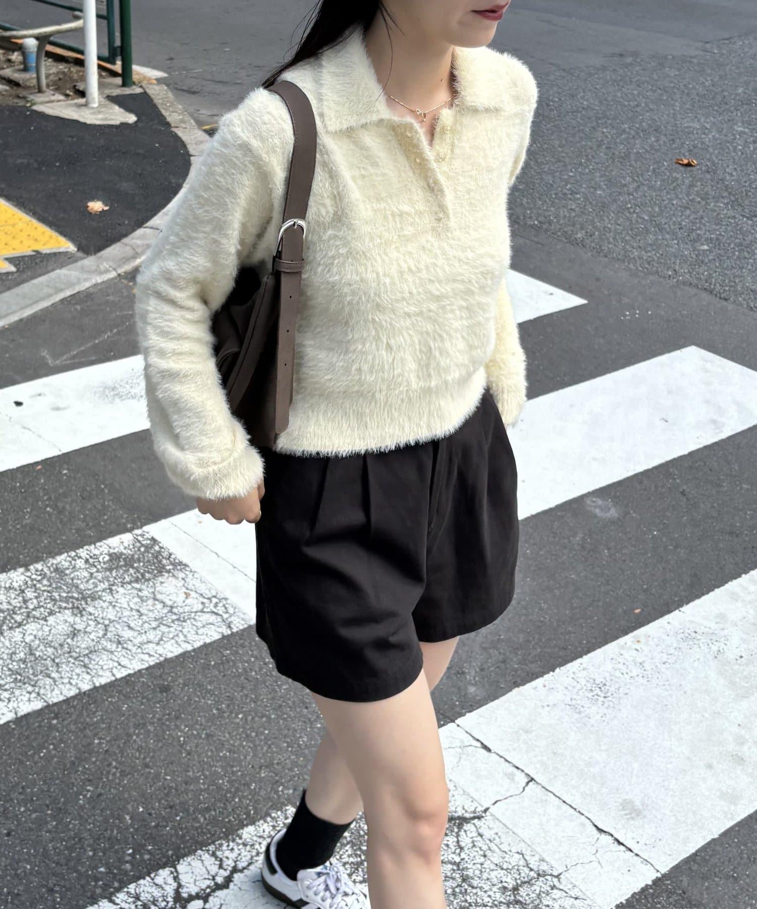 蓬鬆絨毛面料的針織 Polo,讓您只需一件就能成為全場的明星。
