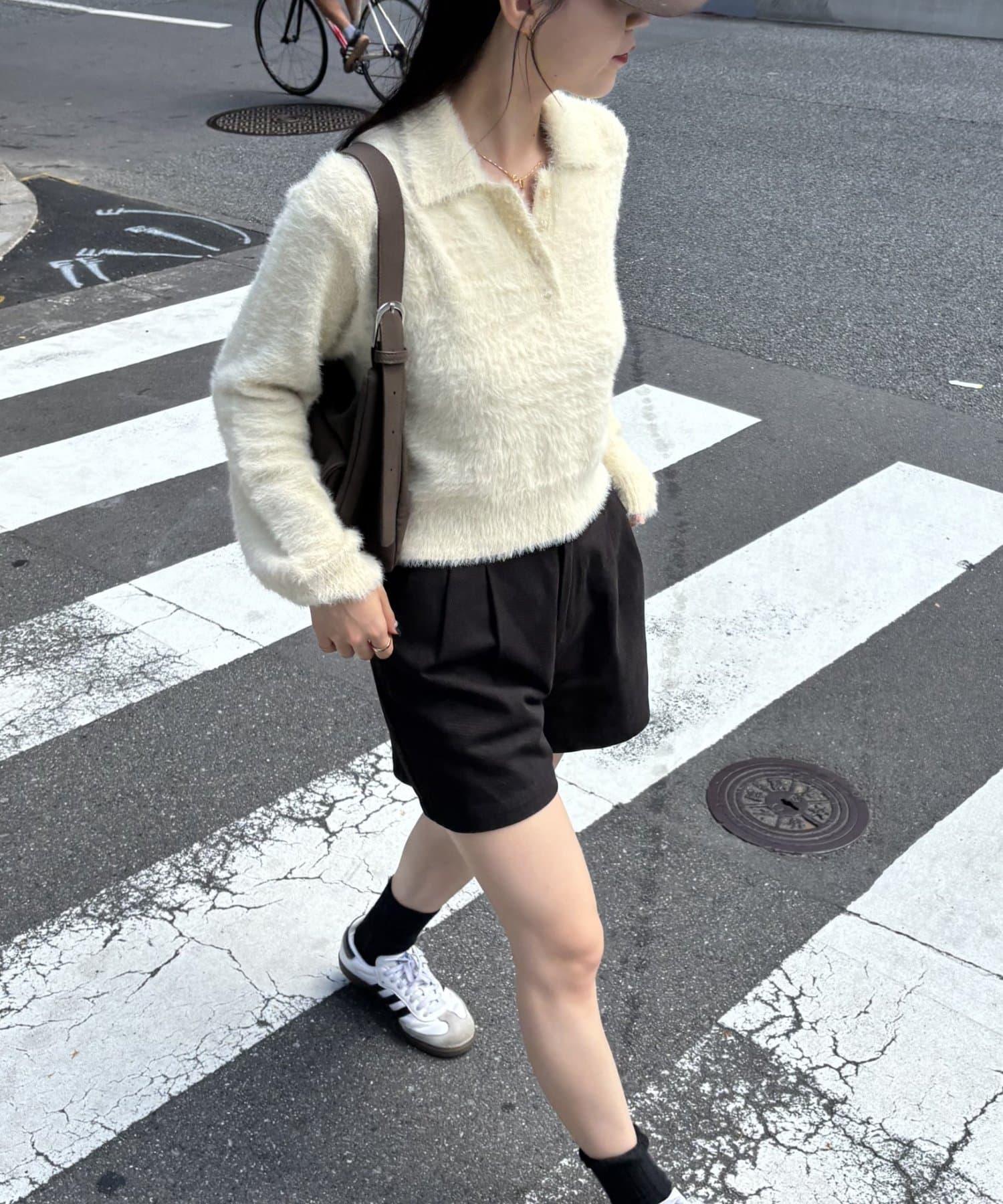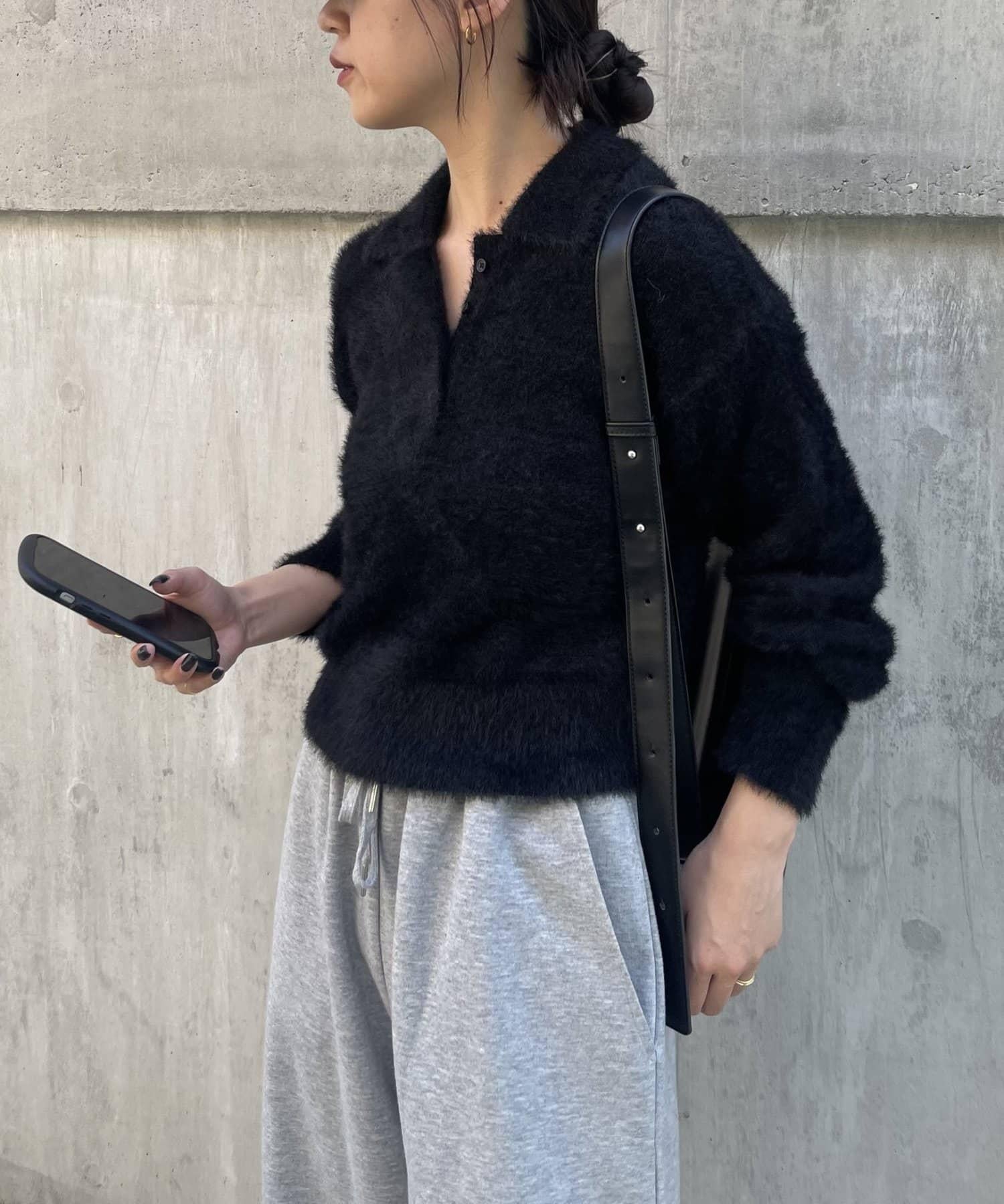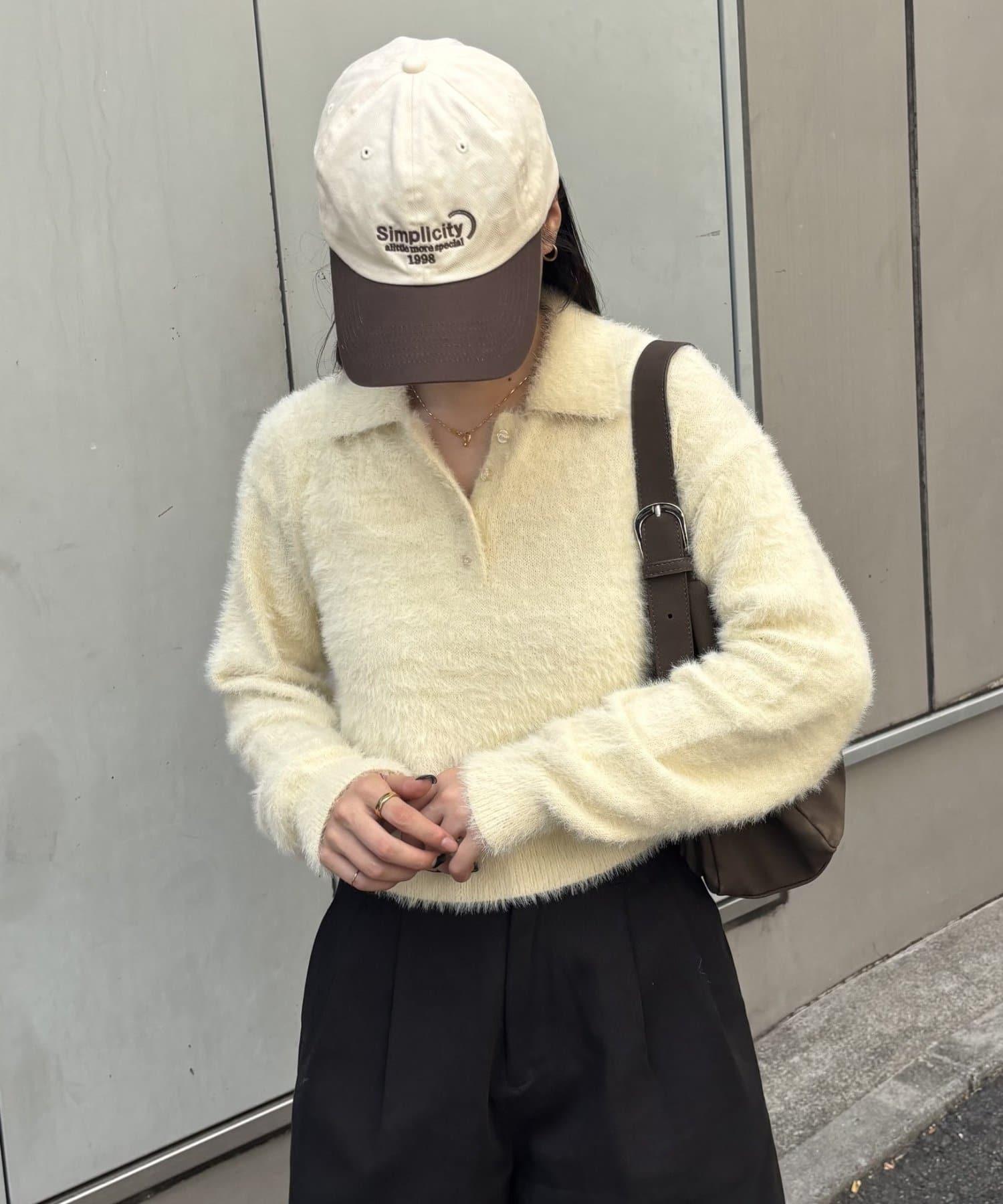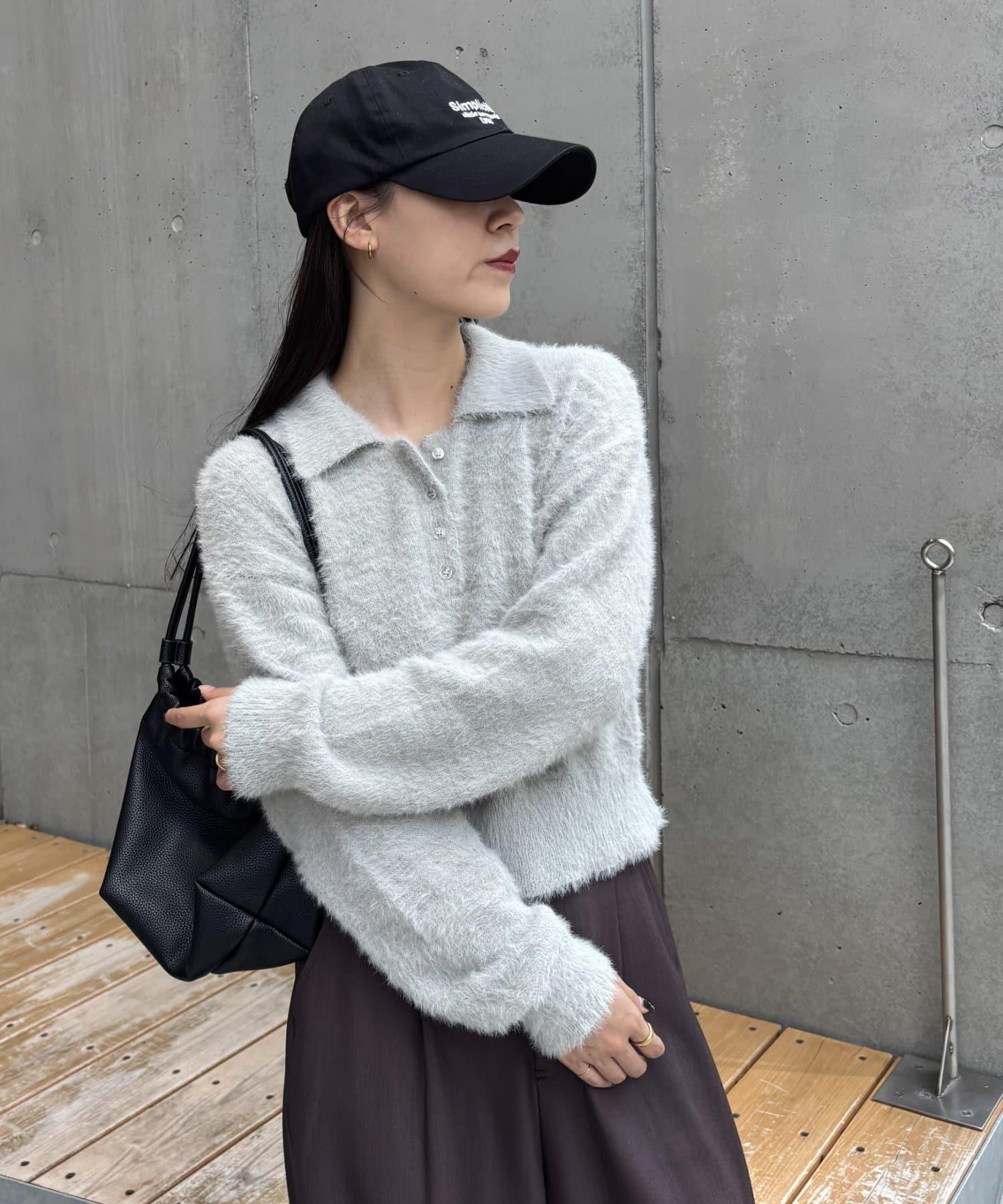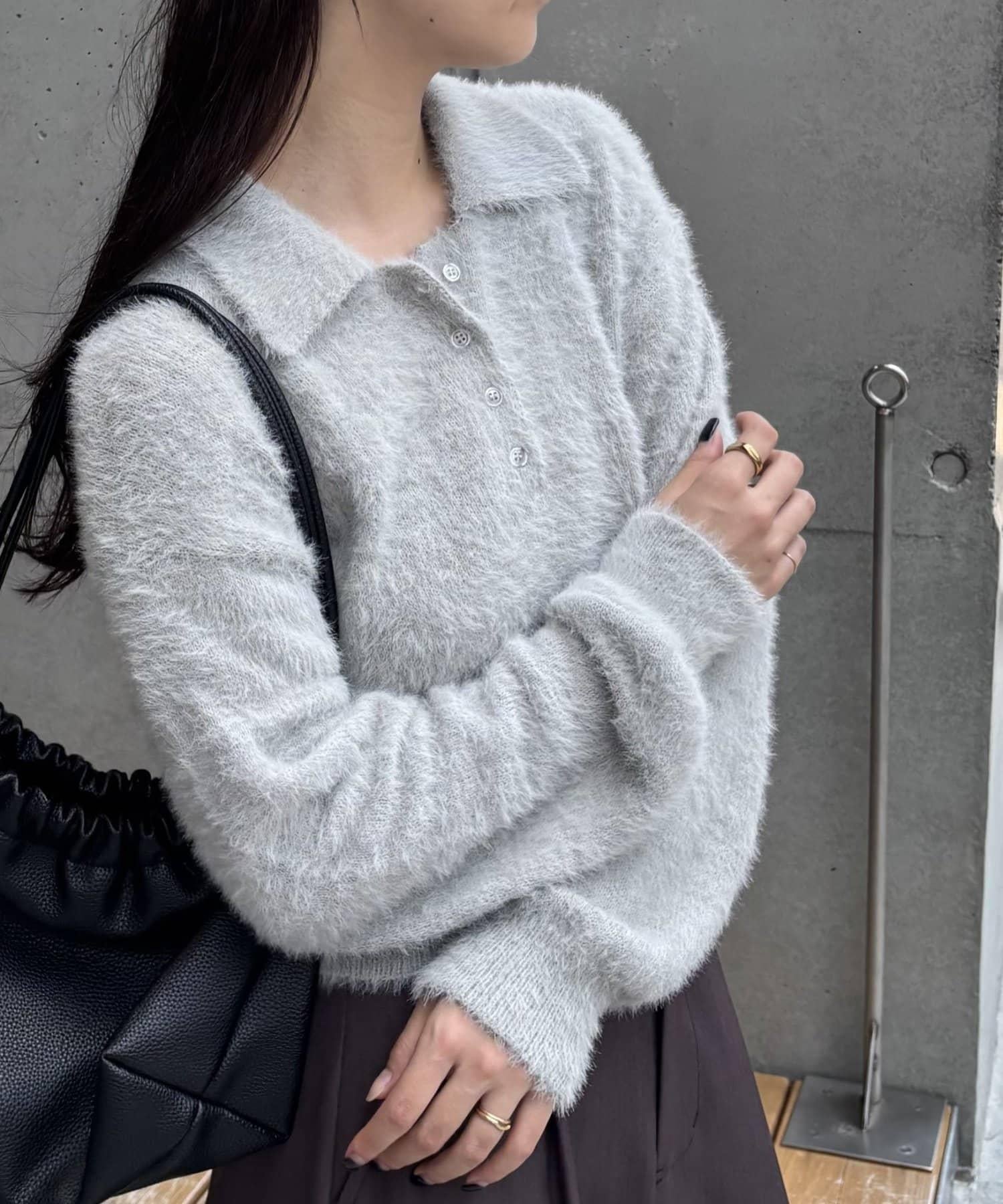 這款毛茸茸的針織 polo 是這個秋冬季節的必備單品。