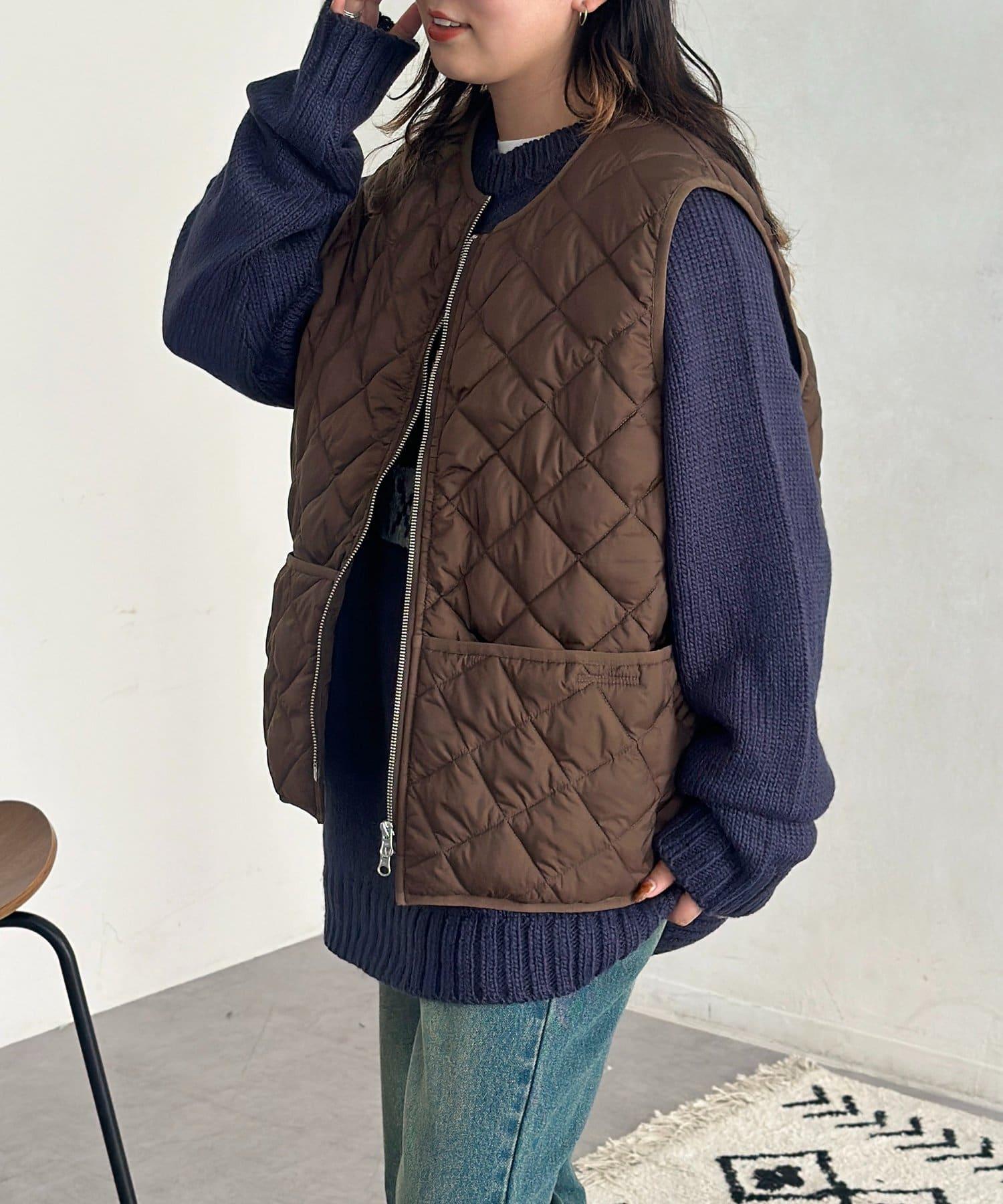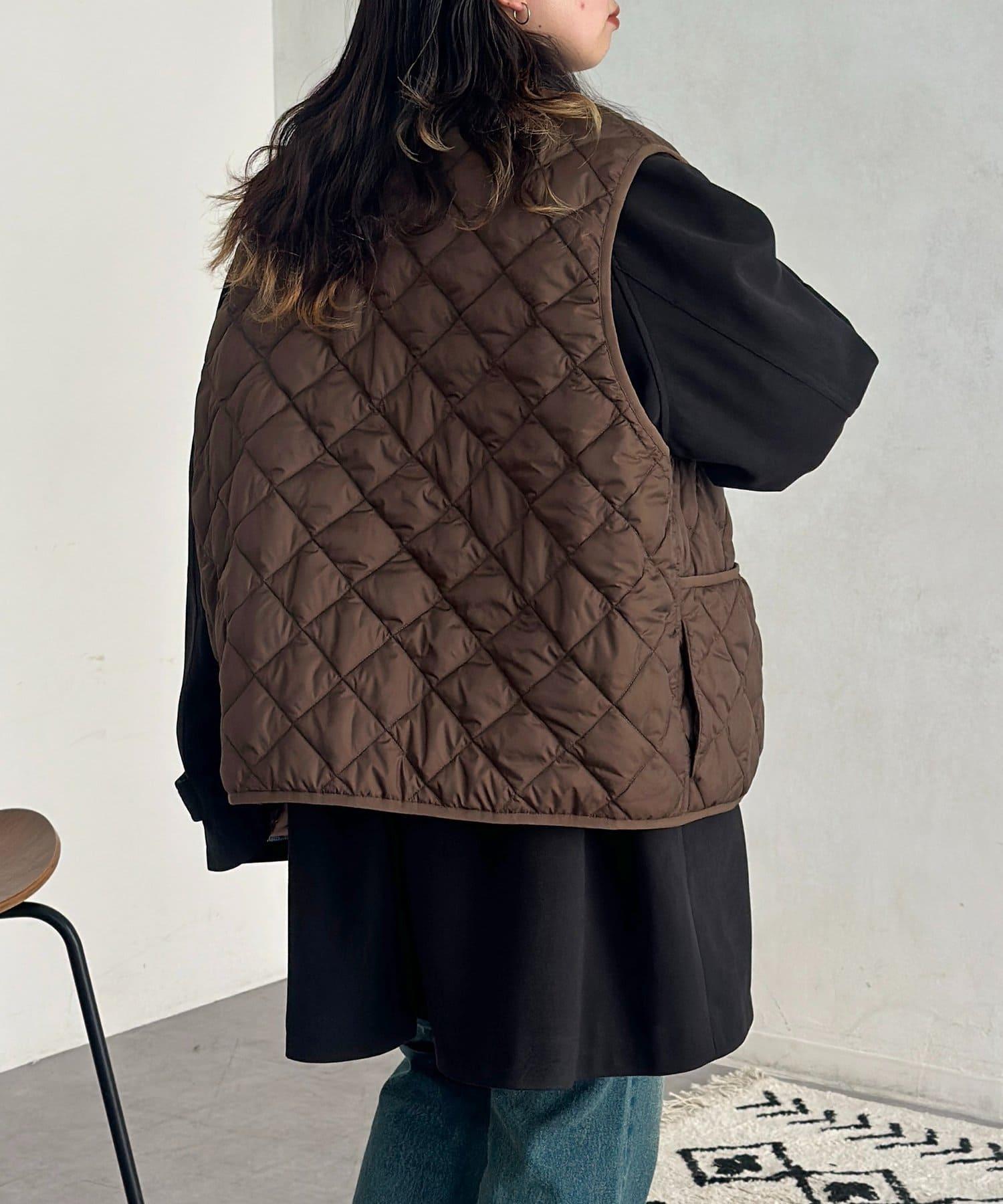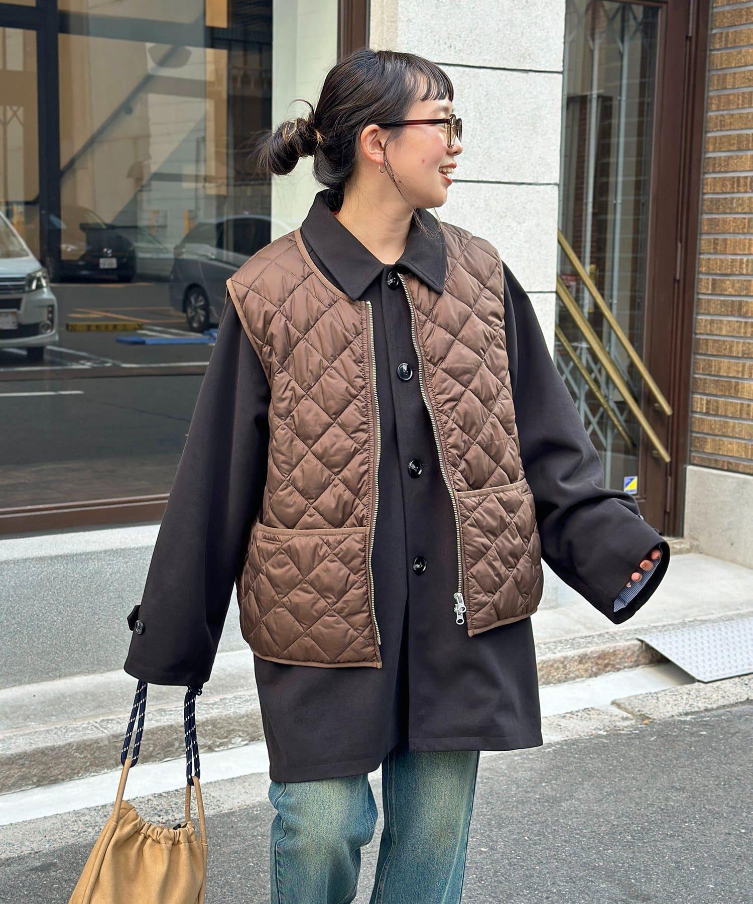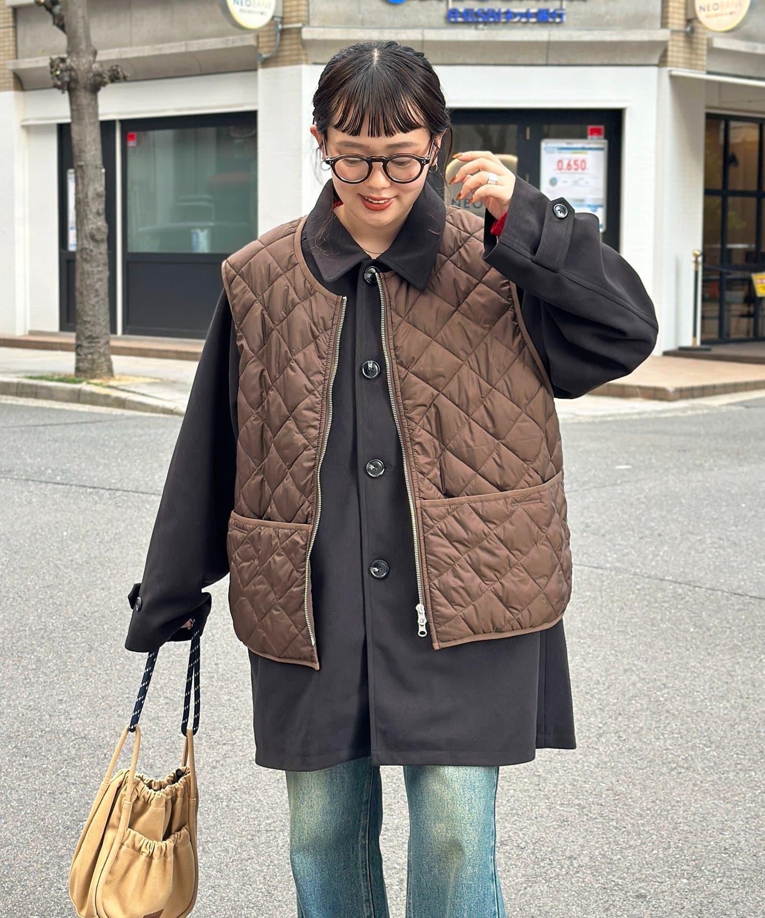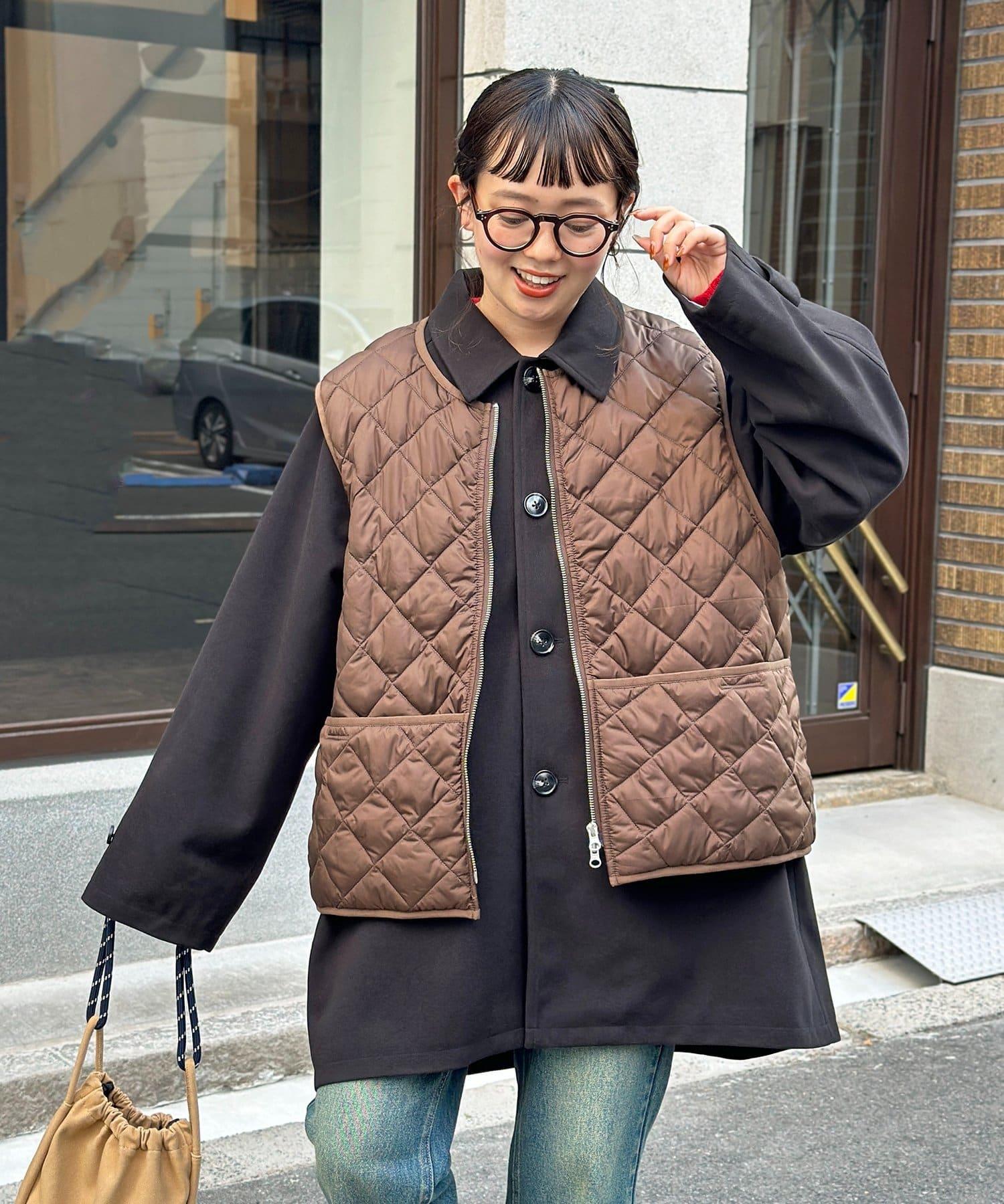 這款馬甲尺寸寬鬆,可以疊穿在大衣外面。