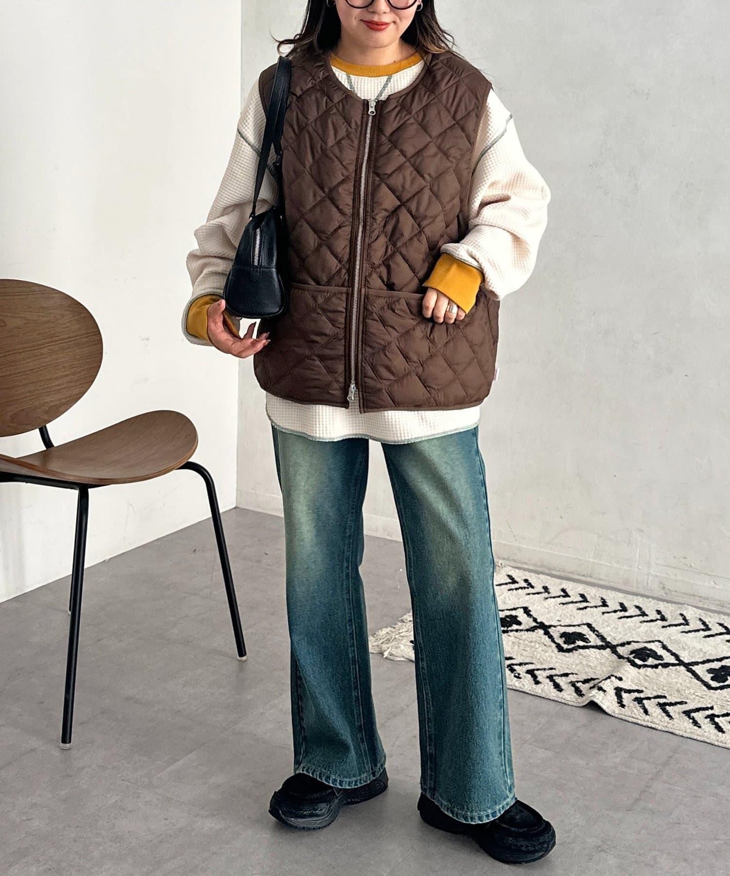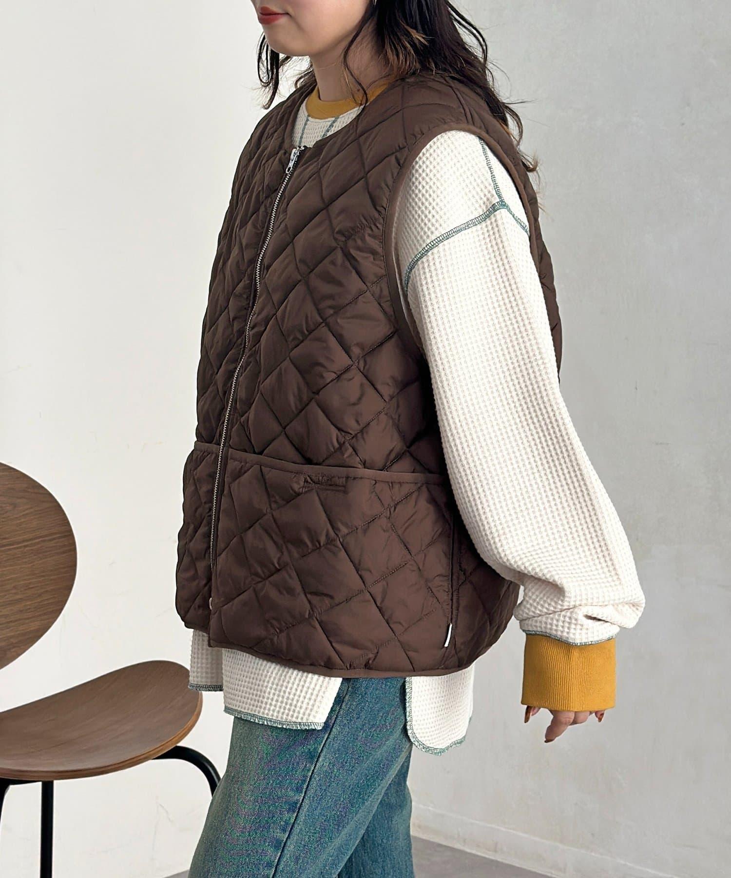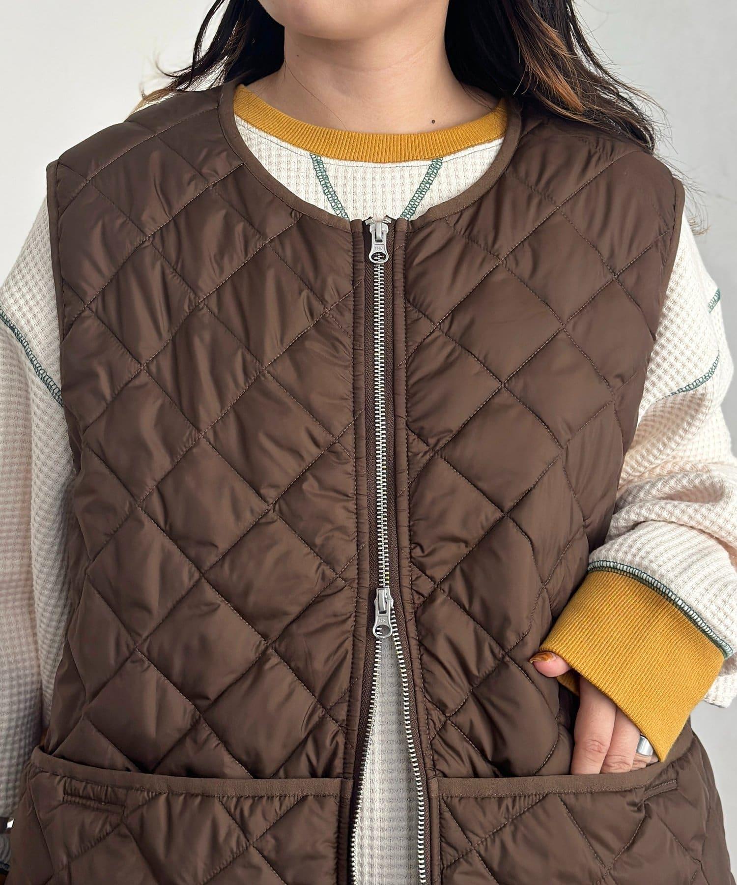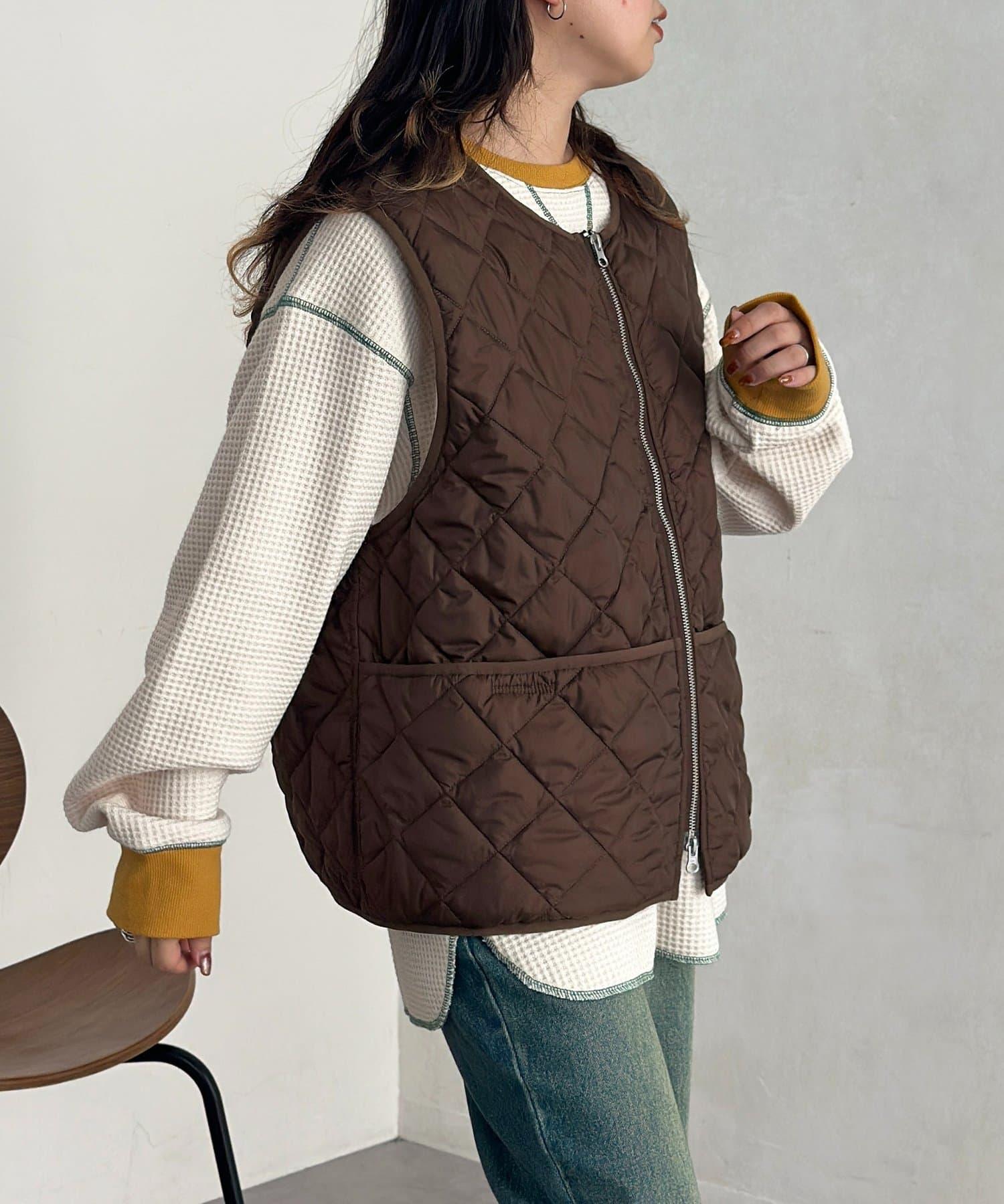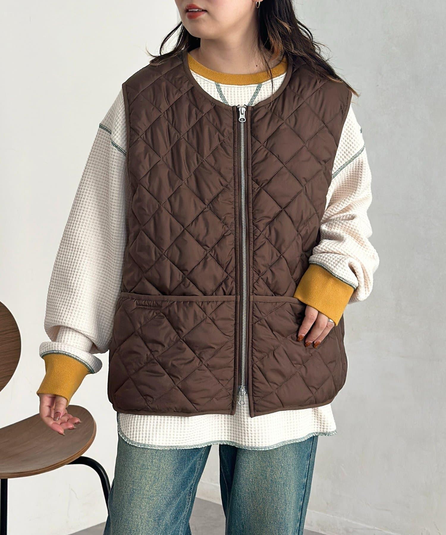 這款馬甲尺寸寬鬆,可以疊穿在大衣外面。