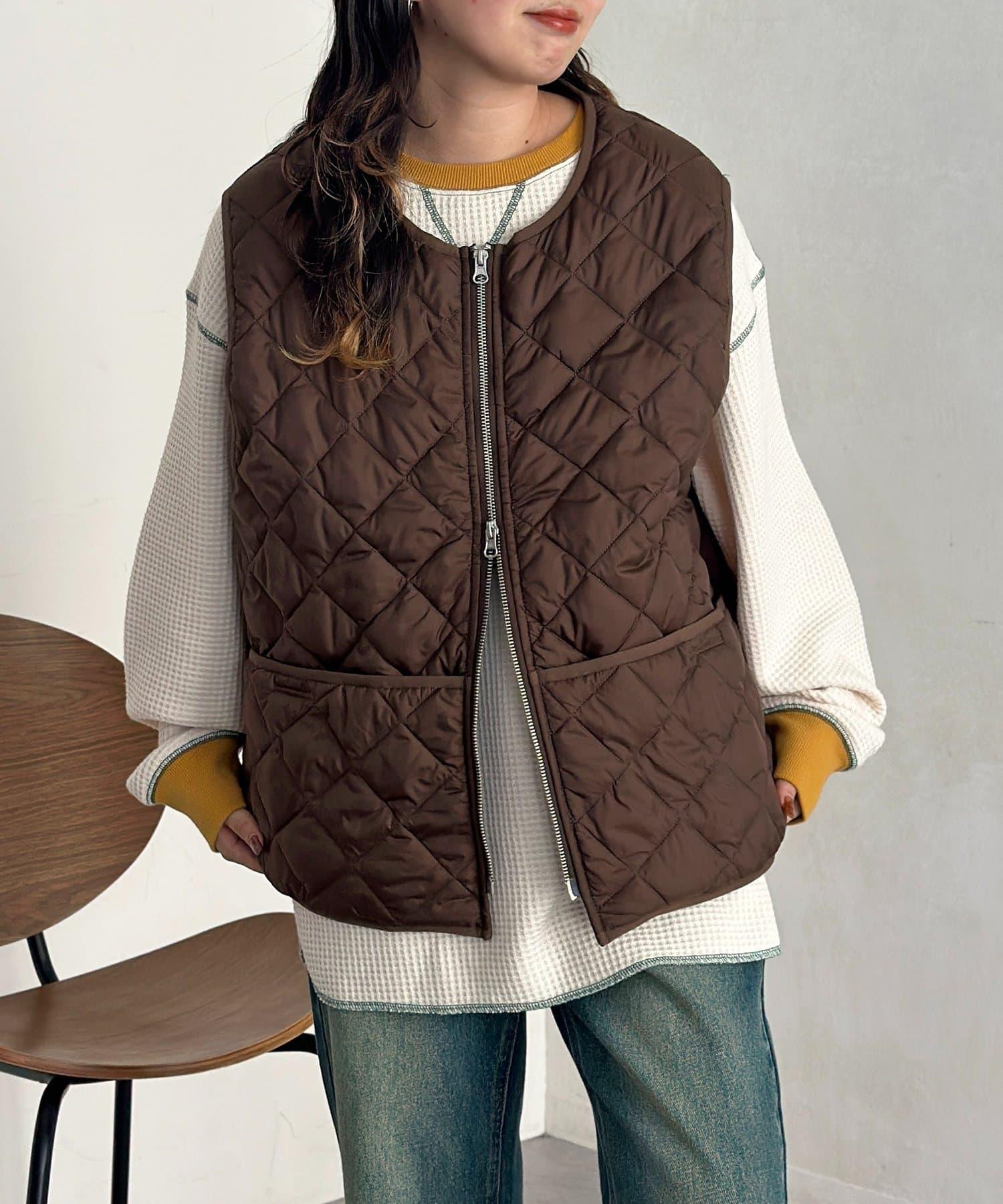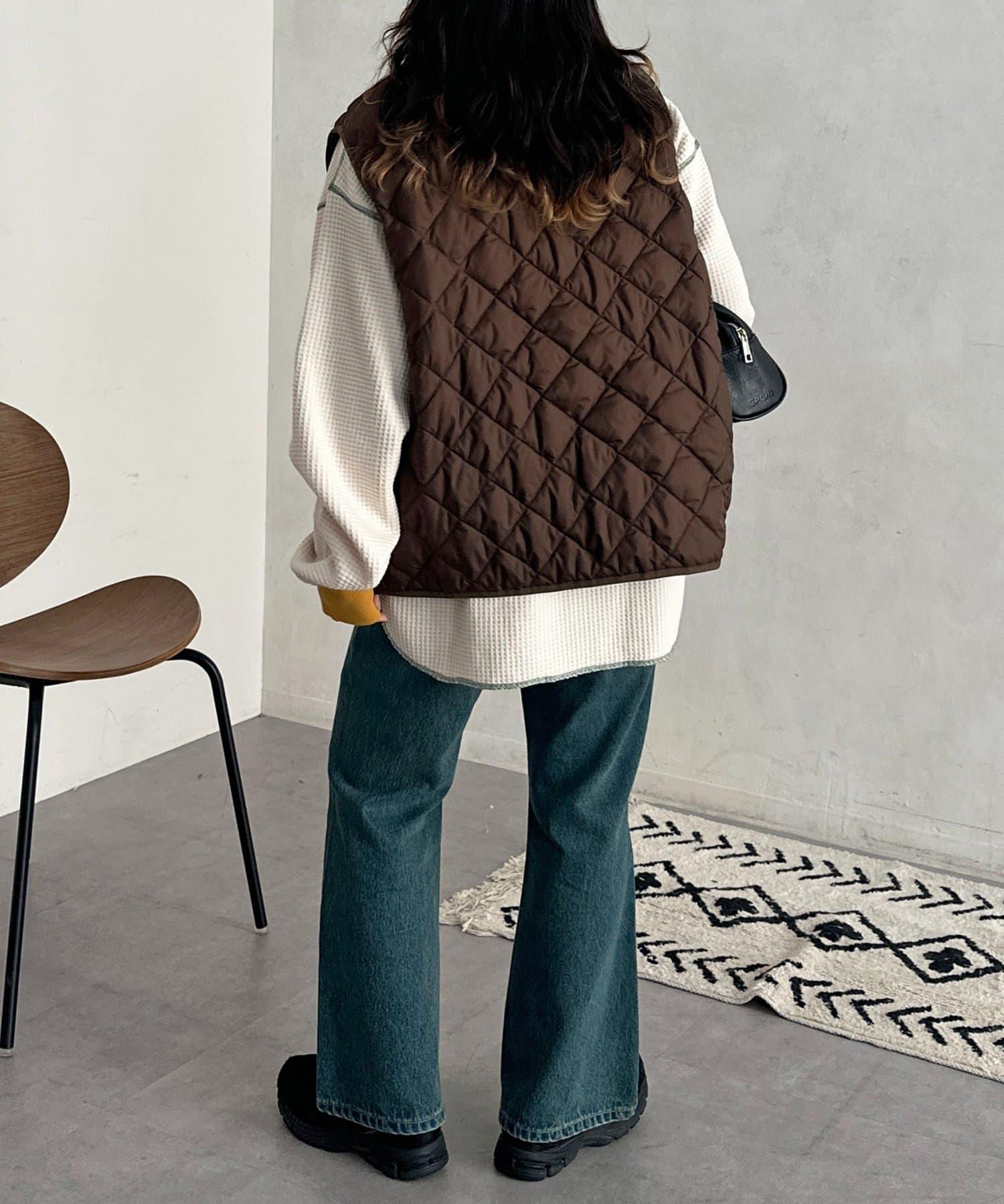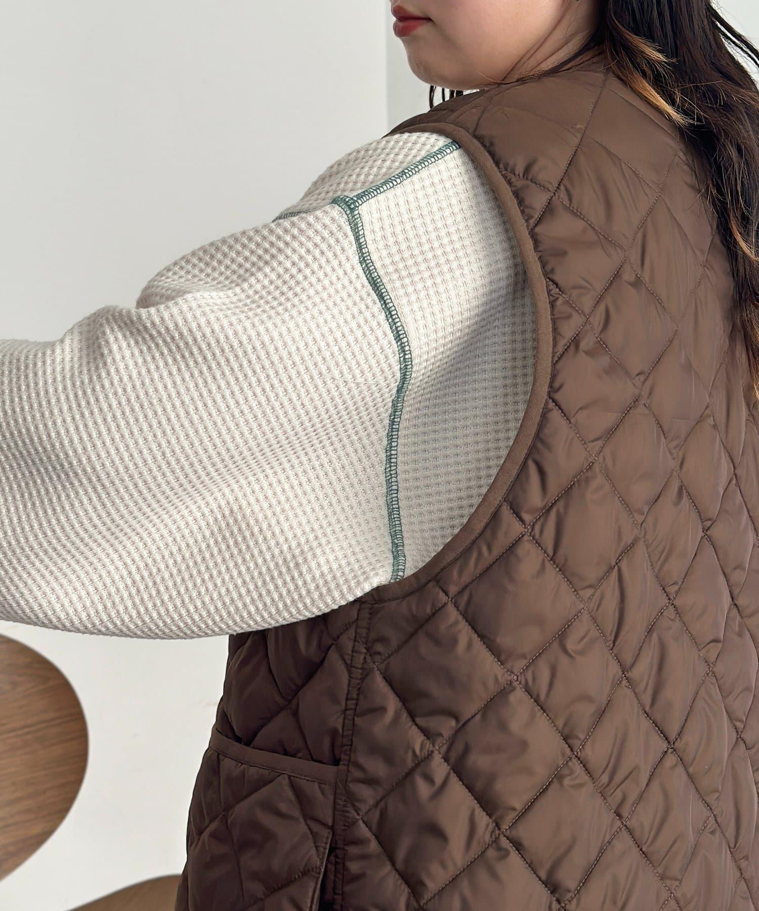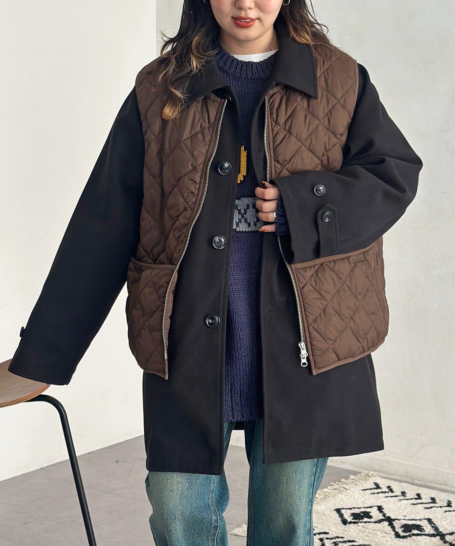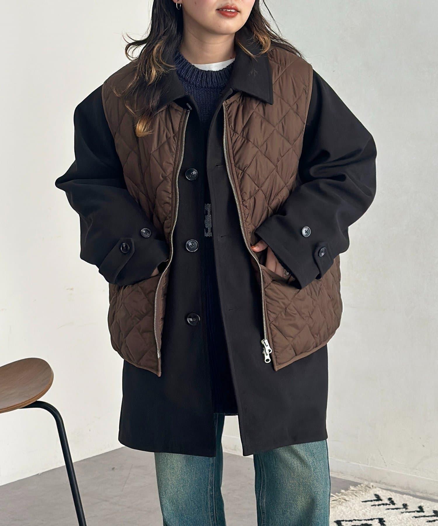 這款馬甲尺寸寬鬆,可以疊穿在大衣外面。