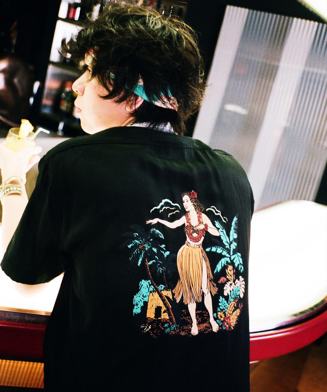 Schott x Pineapple Juice 膠囊系列將於 2025 年春夏季推出。該系列採用閃亮的 100% 人造絲面料,顏色為黑色。這種傳統的日本和服面料促進了夏威夷襯衫的繁榮。設計靈感來源於自 20 世紀 30 年代末以來一直用於夏威夷紀念品的流行名稱 "Aloha Hawaii",圖案為夏威夷天堂中的草裙舞女郎、棕櫚樹和衝浪者。菠蘿汁]復古阿羅哈襯衫是象徵二十世紀四五十年代夏威夷黃金時代的藝術品。
