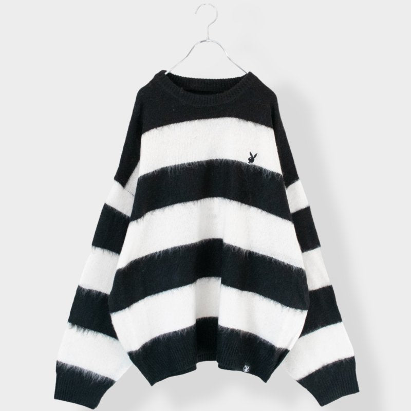 Play Boy 愛 SEQUENZ 毛絨般 寬條紋 毛衣 黑白色 (CT6966BK)