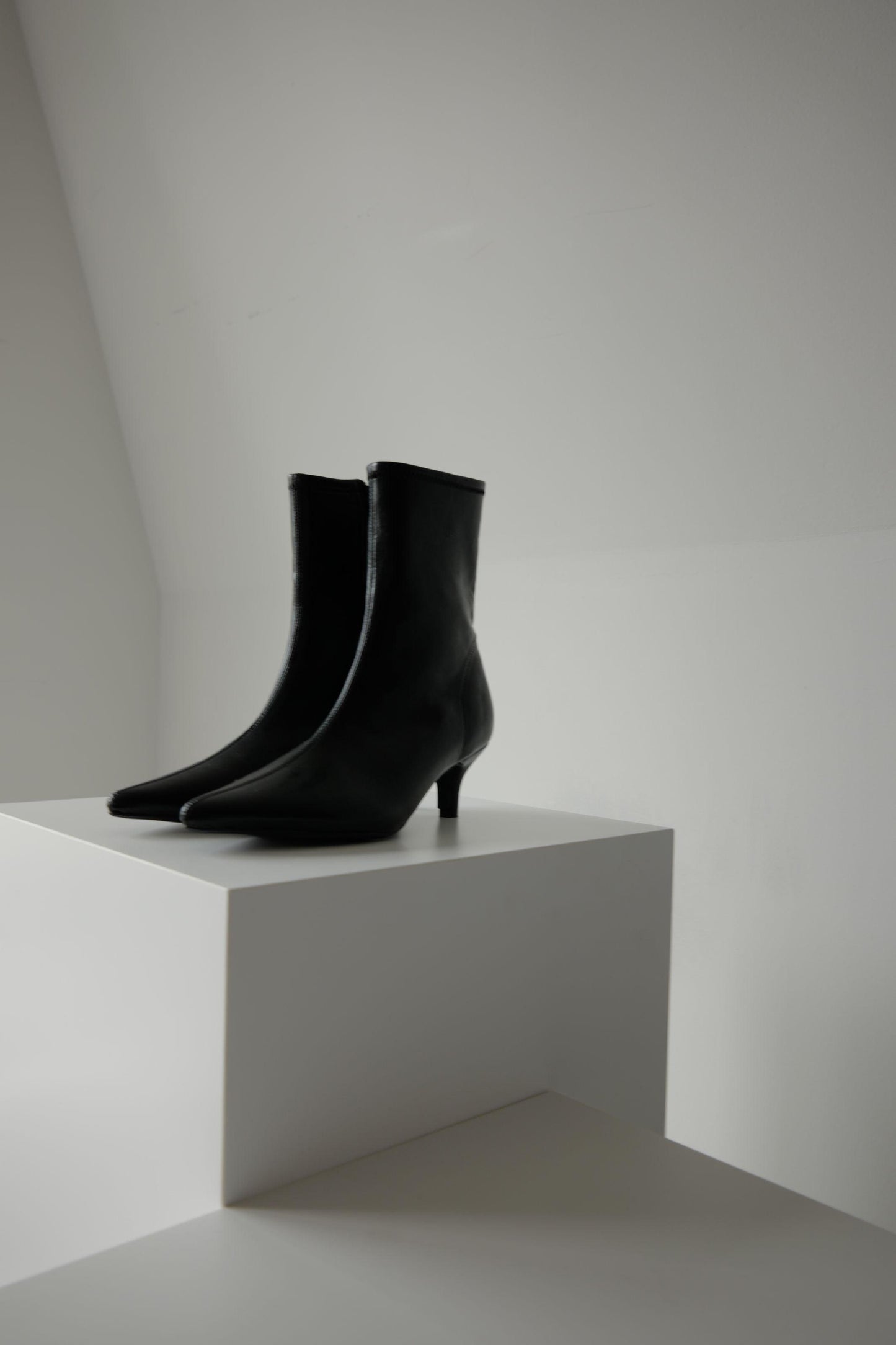 這款短靴採用基本款設計,易於融入日常衣櫥,同時鞋跟高度適中,保持優雅。 修長的腿部輪廓和尖尖的鞋尖讓雙腳顯得美麗迷人。 彈力材質讓您穿著時不會感到束縛。 象牙色和黑色由人造皮革製成,混合色由人造麂皮製成。