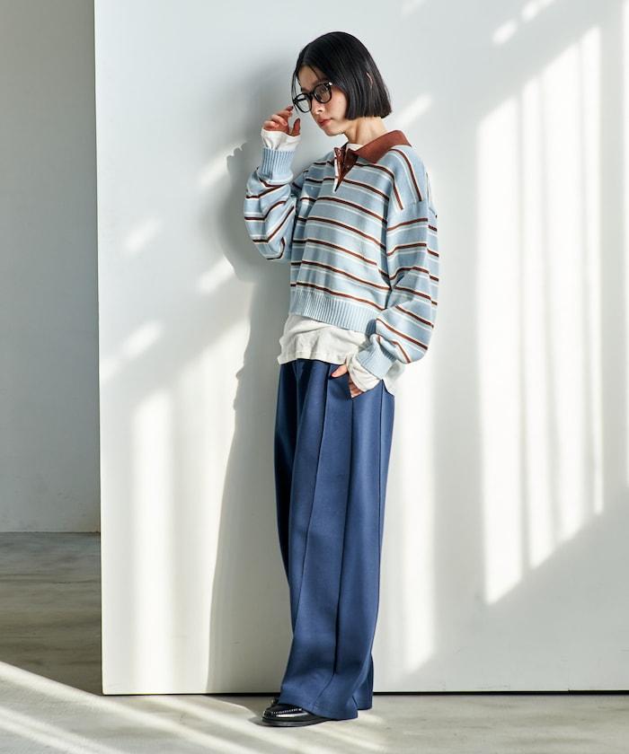 針織面料的表現力不會過於平淡,即使是條紋圖案也能給人立體感,所以單穿也能很好看。