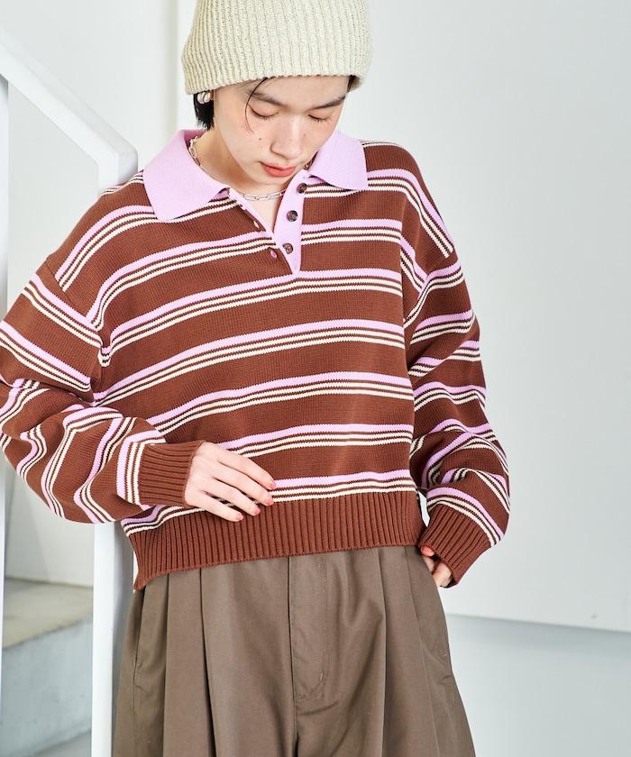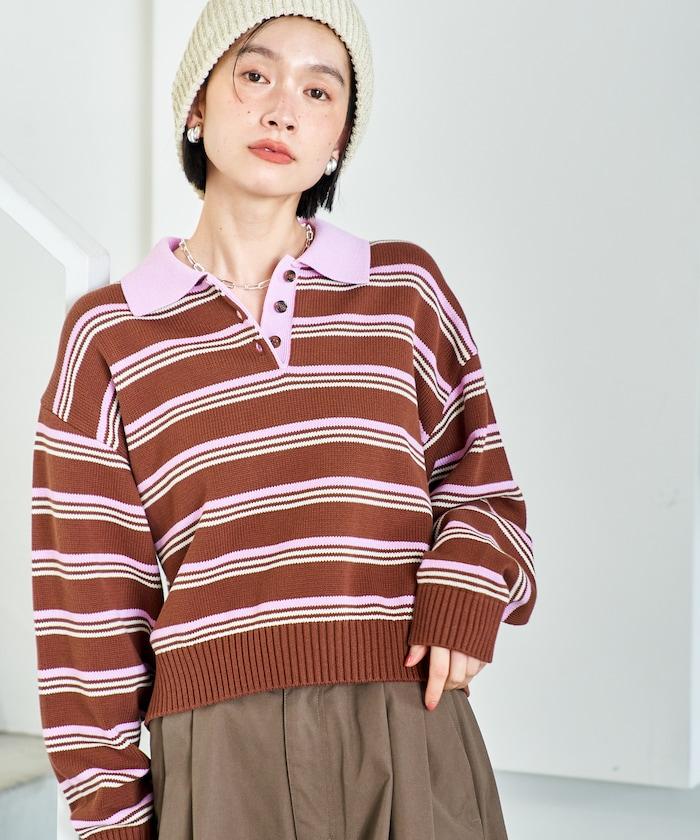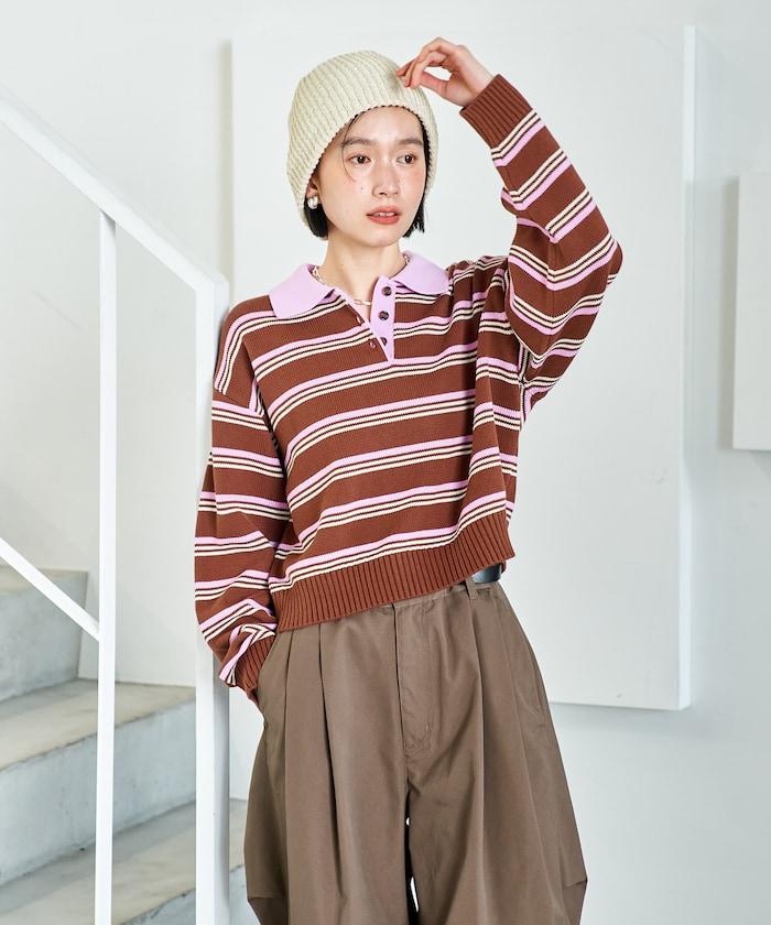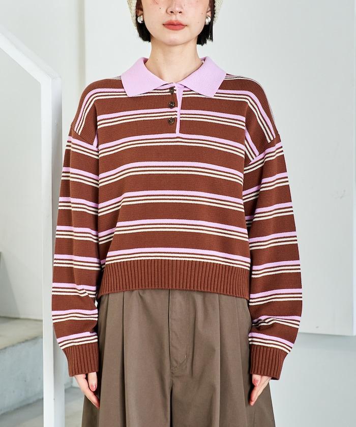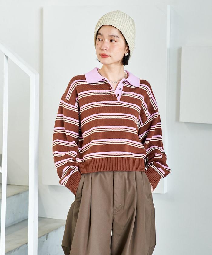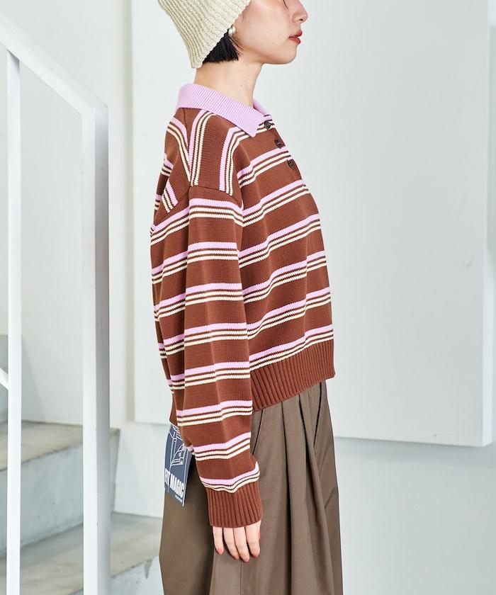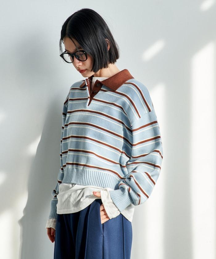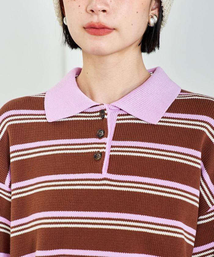 多條紋 Polo 針織上衣,色彩平衡醒目。