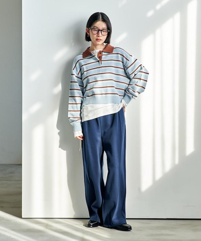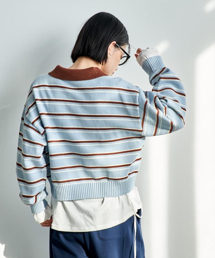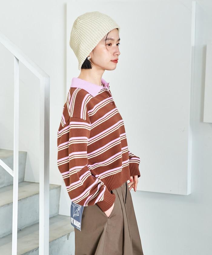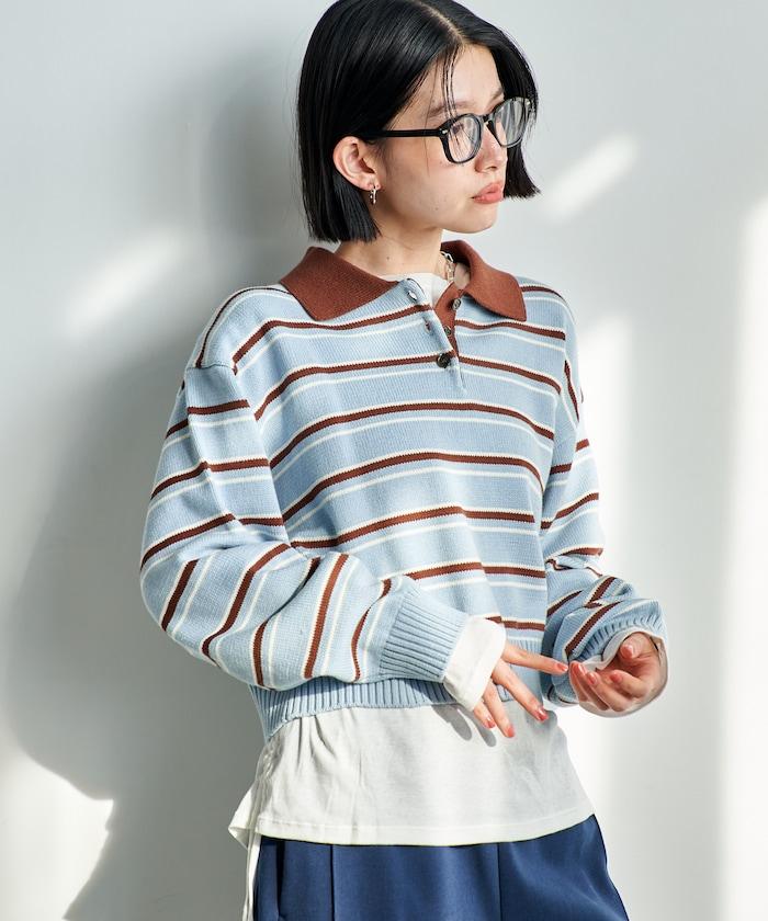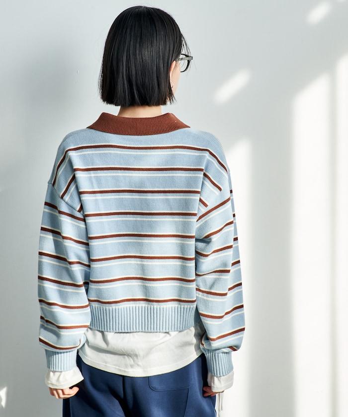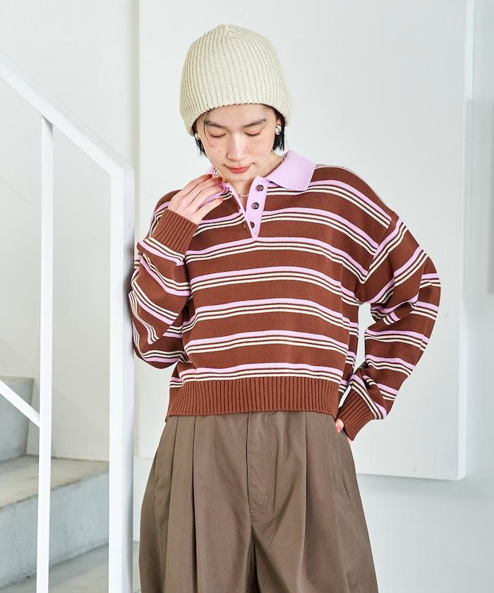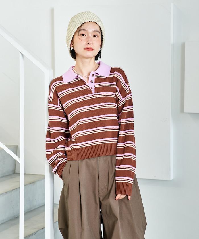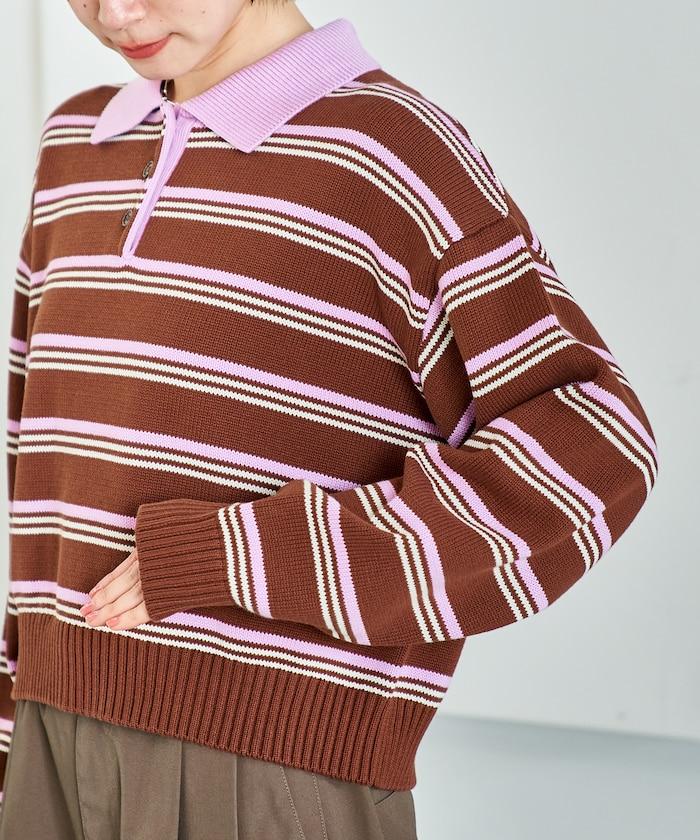 多條紋 Polo 針織上衣,色彩平衡醒目。
