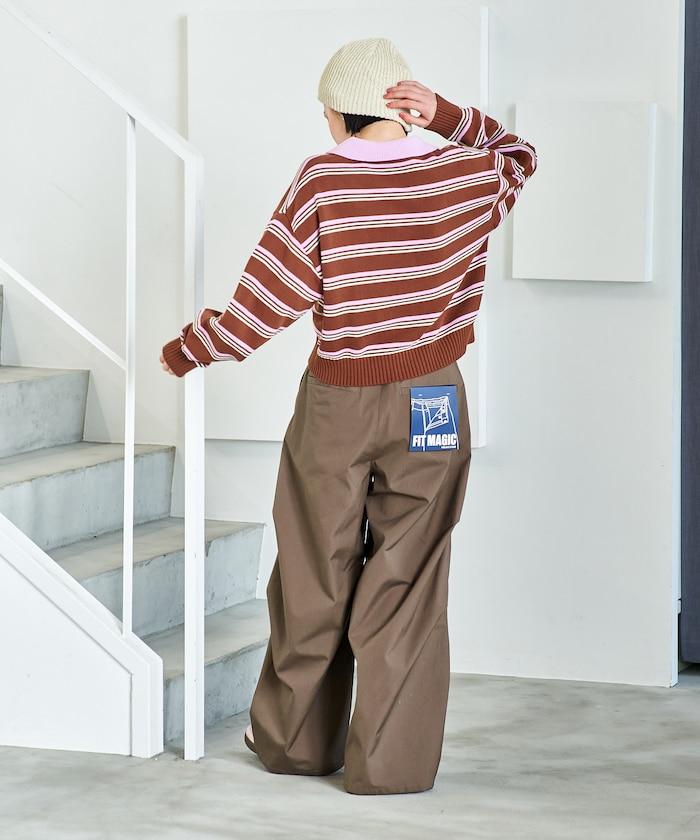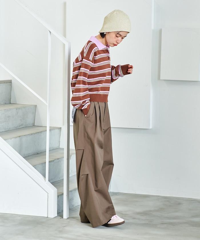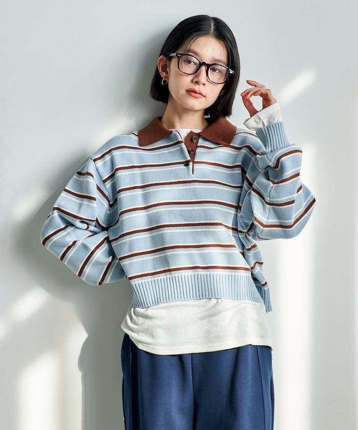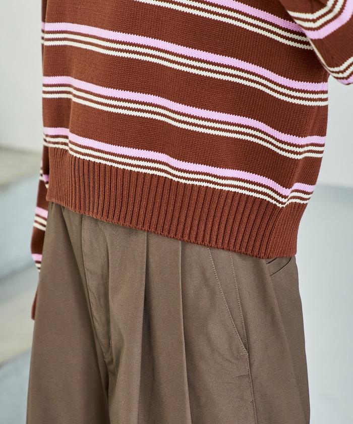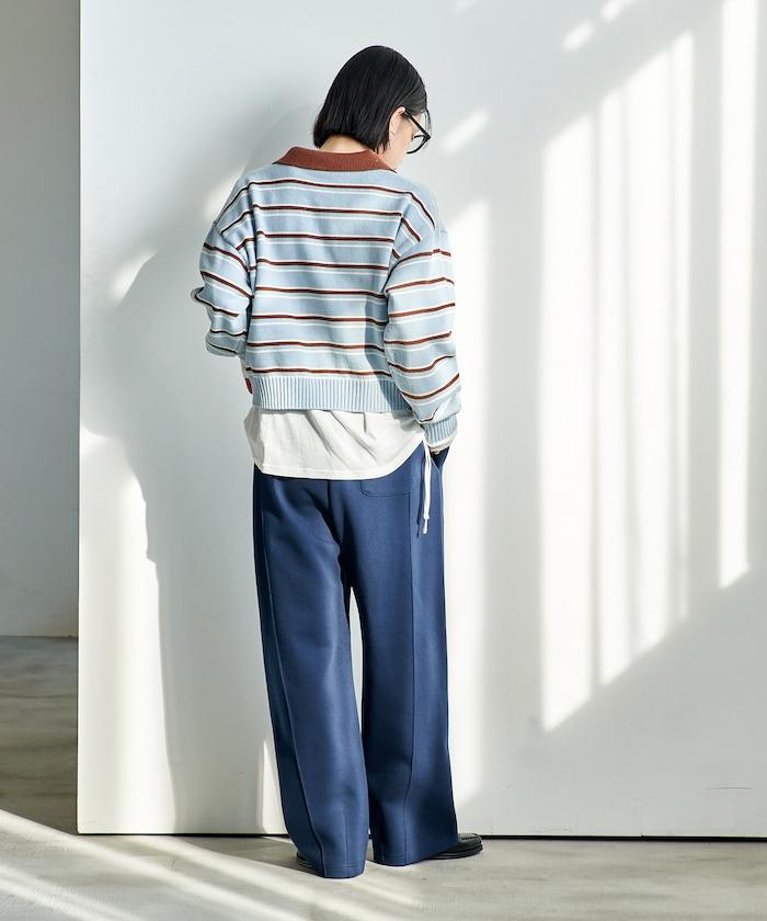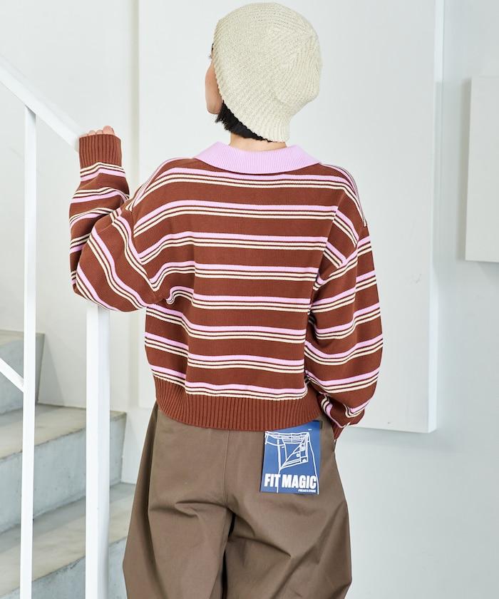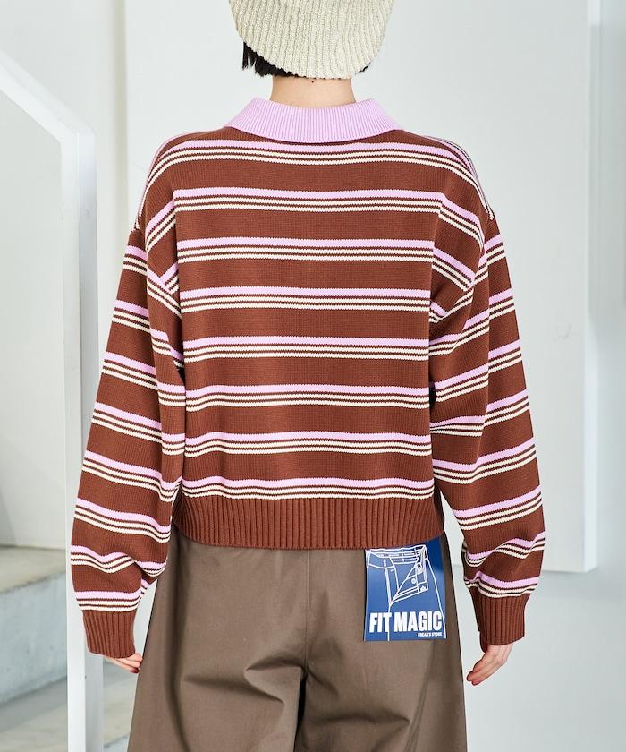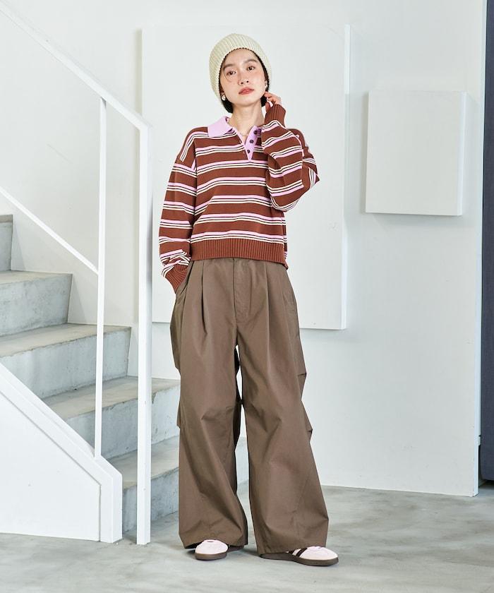 多條紋 Polo 針織上衣,色彩平衡醒目。