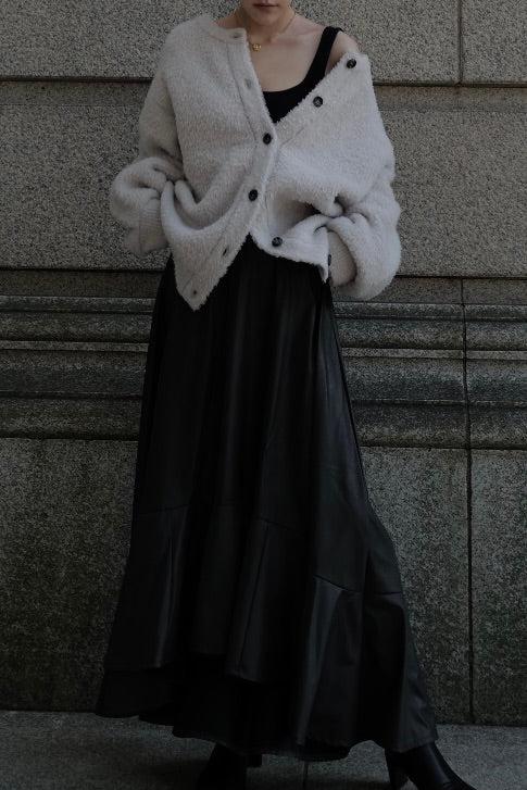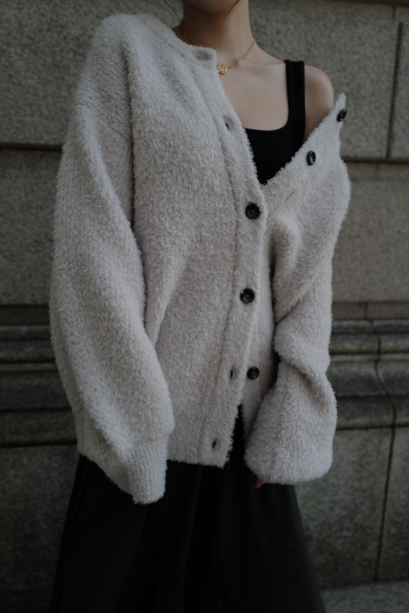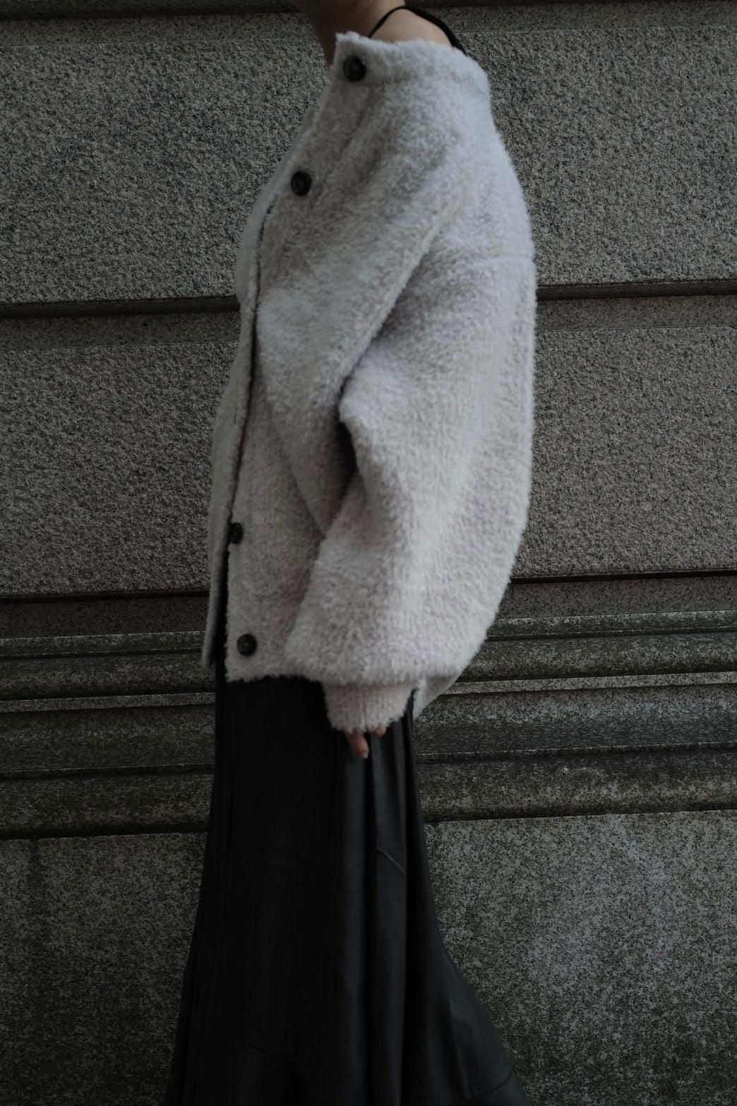 秋裝必備的針織開衫,表面紋理是捲曲的短毛,就像貴賓犬一樣,立體的輪廓和結實的厚度在整潔感中透出趣味。