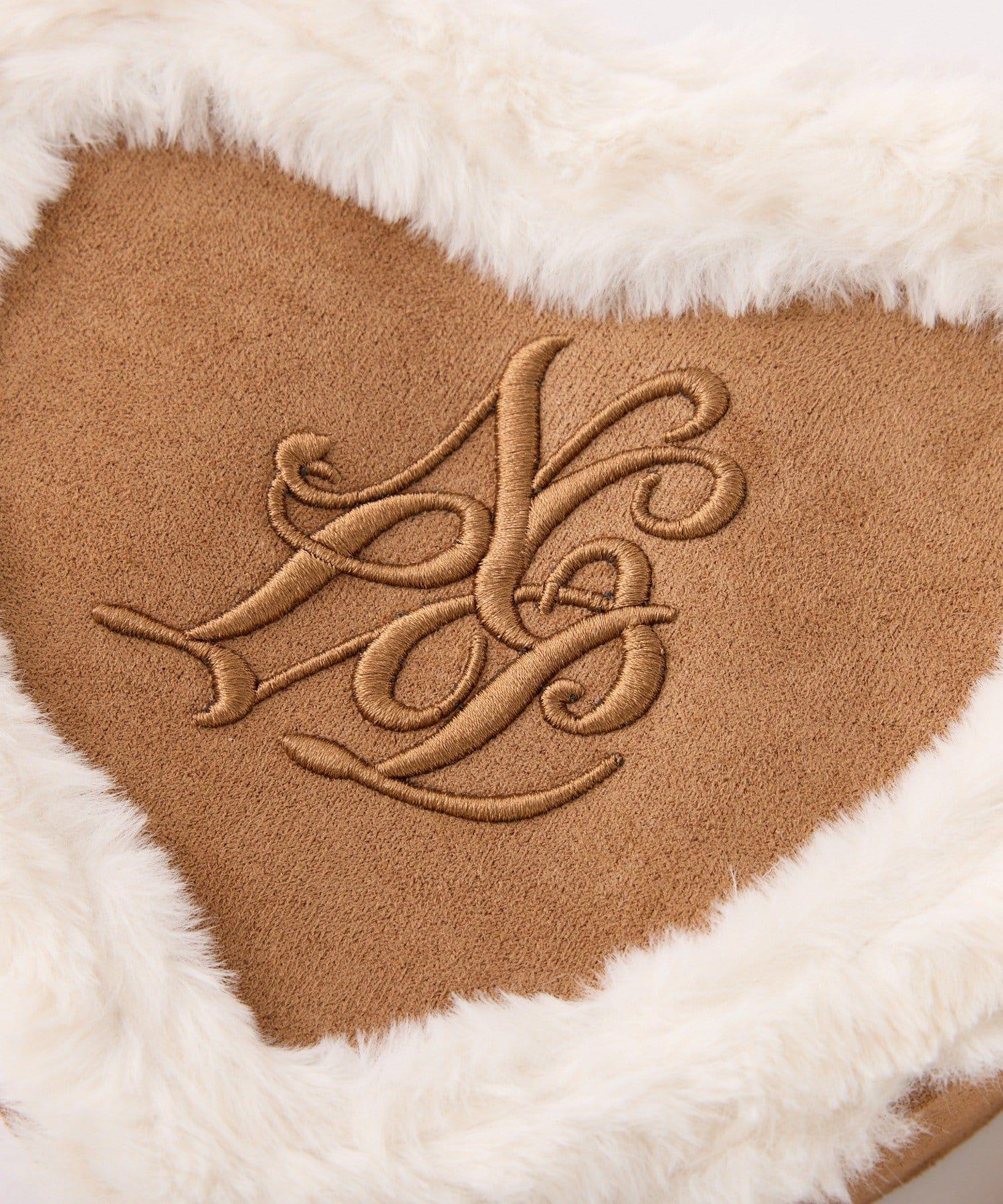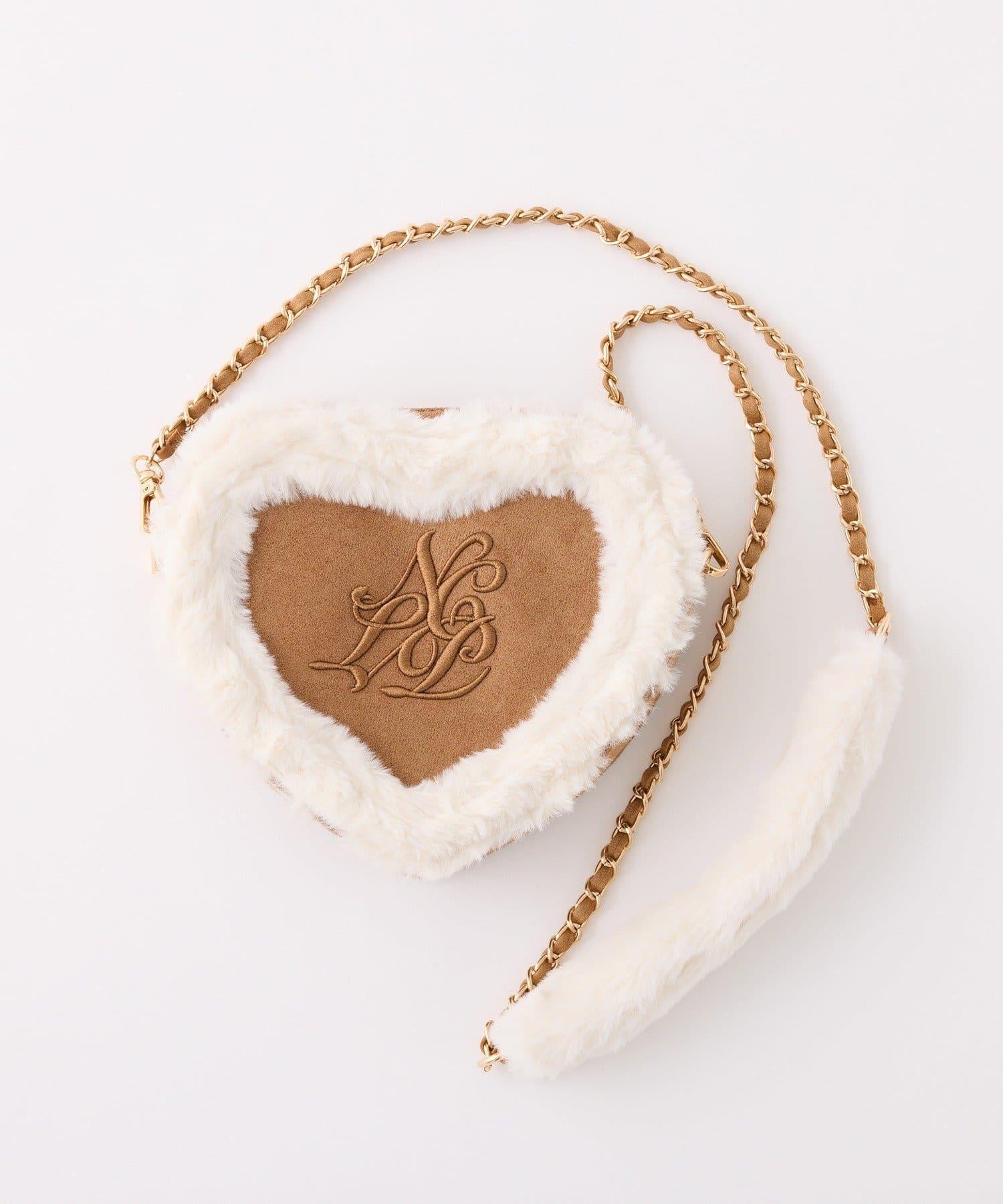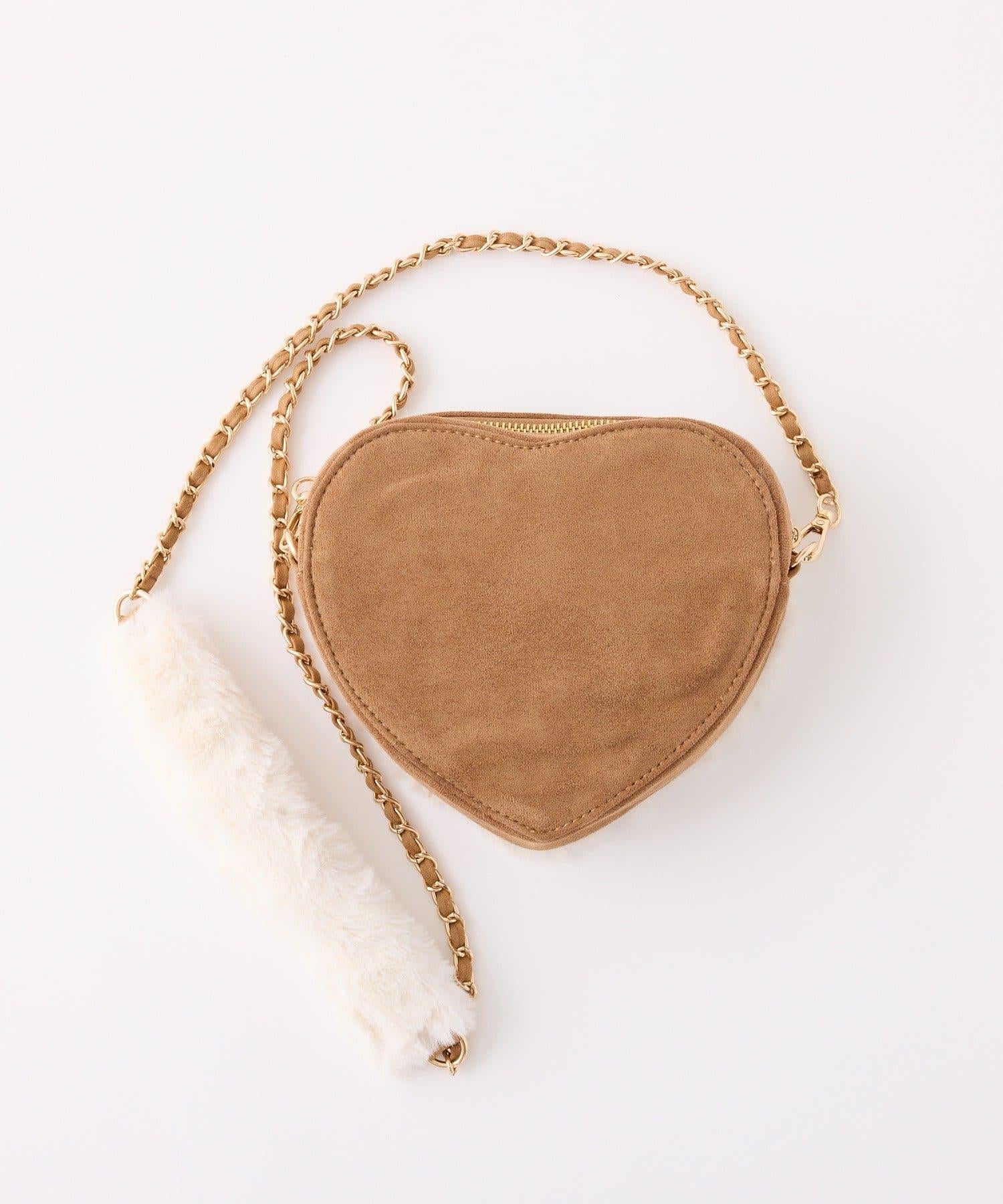 這是一款帥氣的心形雙肩包,採用蓬鬆的 Mouton 材質和毛皮層疊設計,具有很高的可視性。