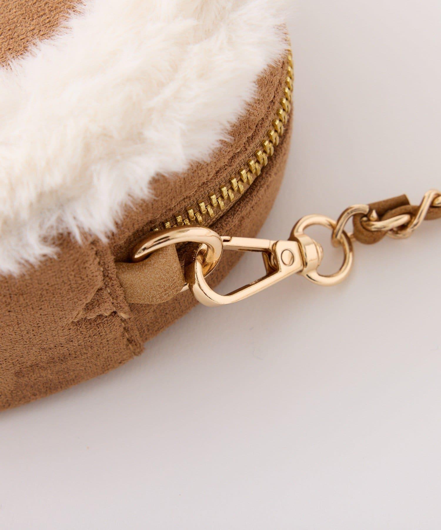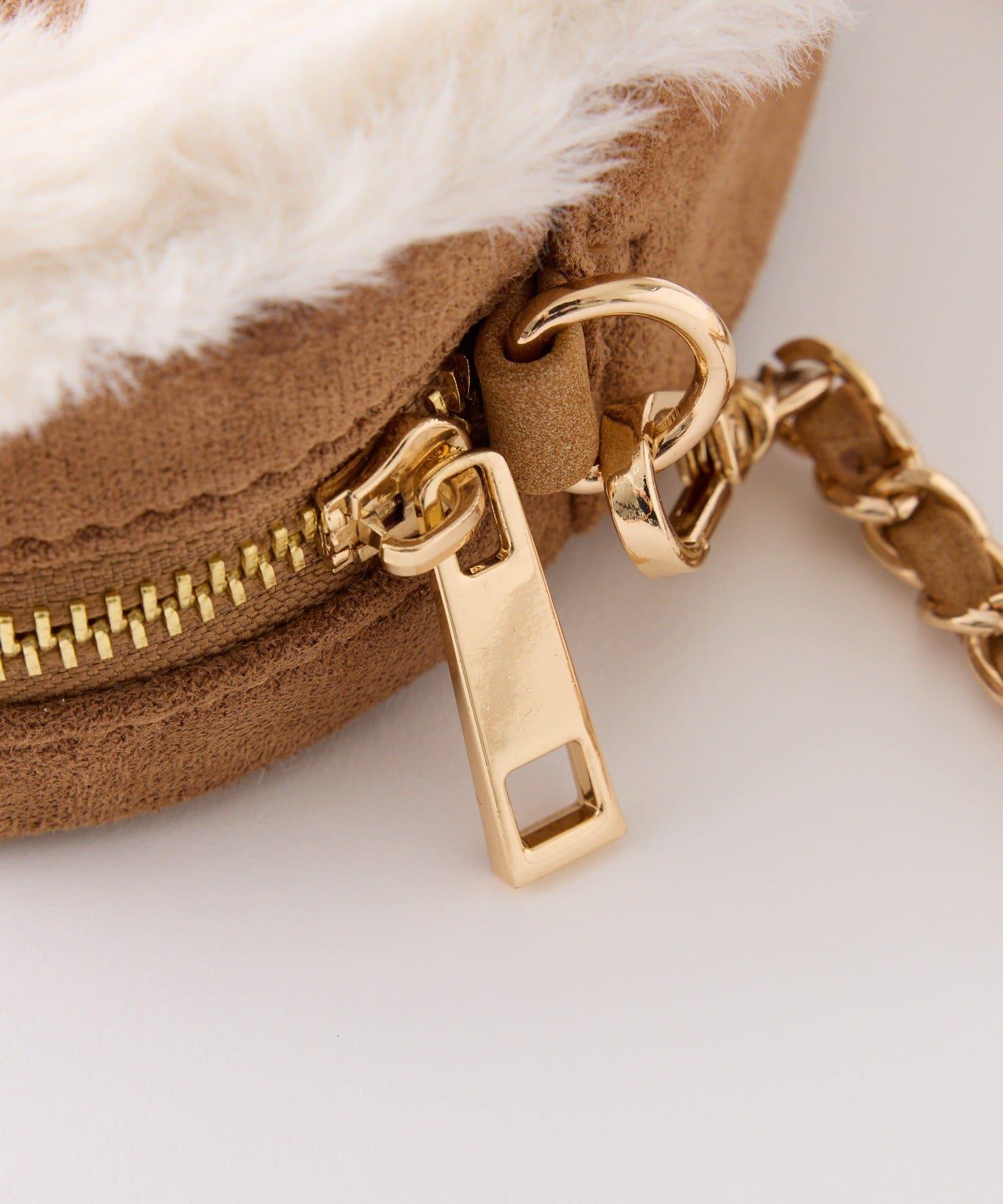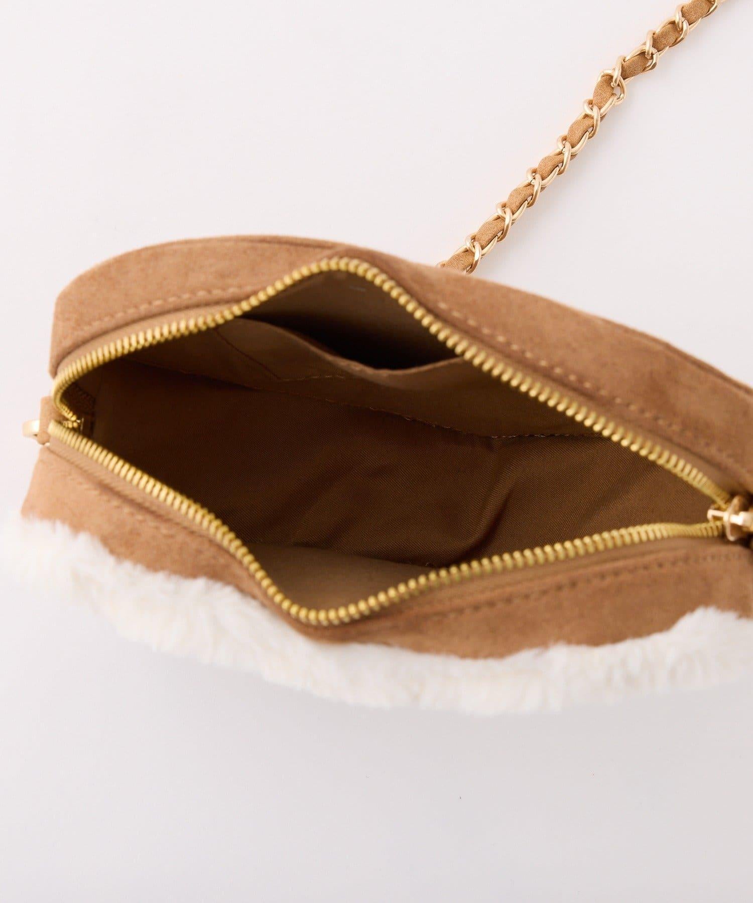 這是一款帥氣的心形雙肩包,採用蓬鬆的 Mouton 材質和毛皮層疊設計,具有很高的可視性。