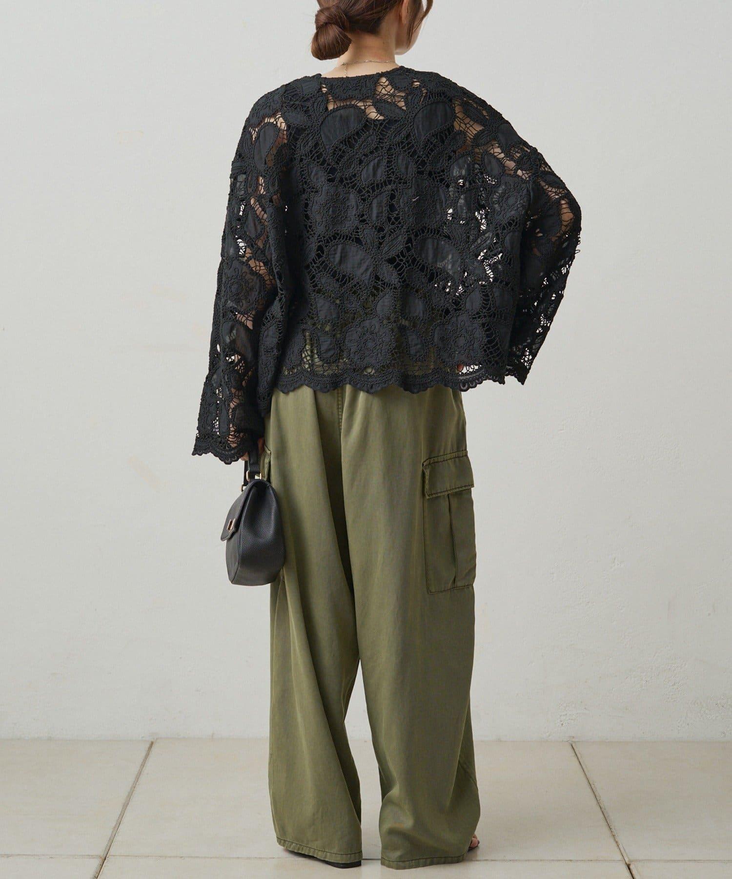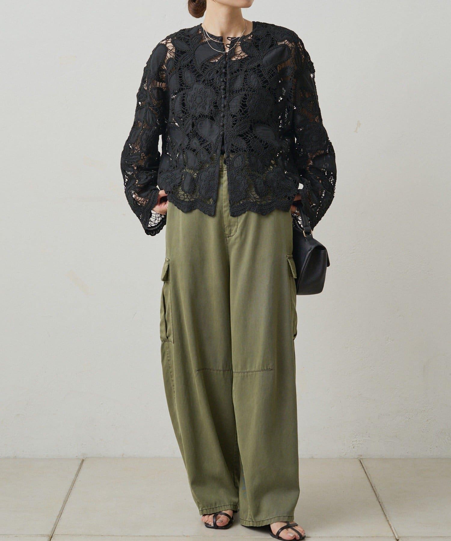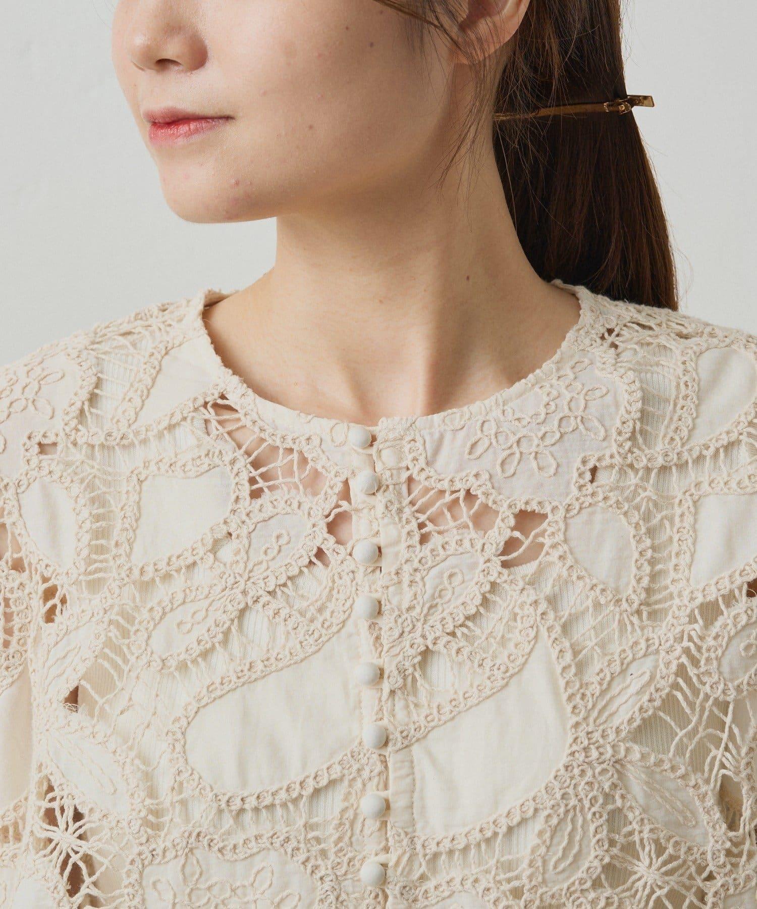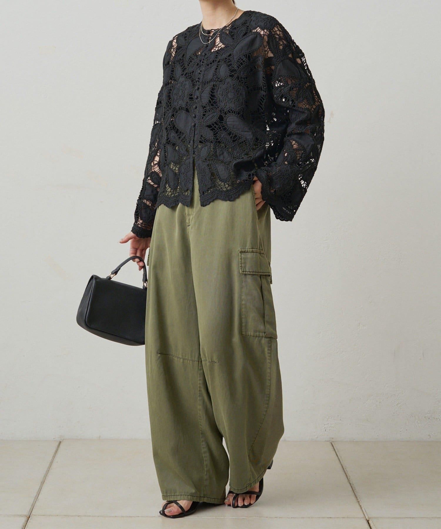 下襬和袖口也利用蕾絲的形狀,在細微處做了優雅的處理。