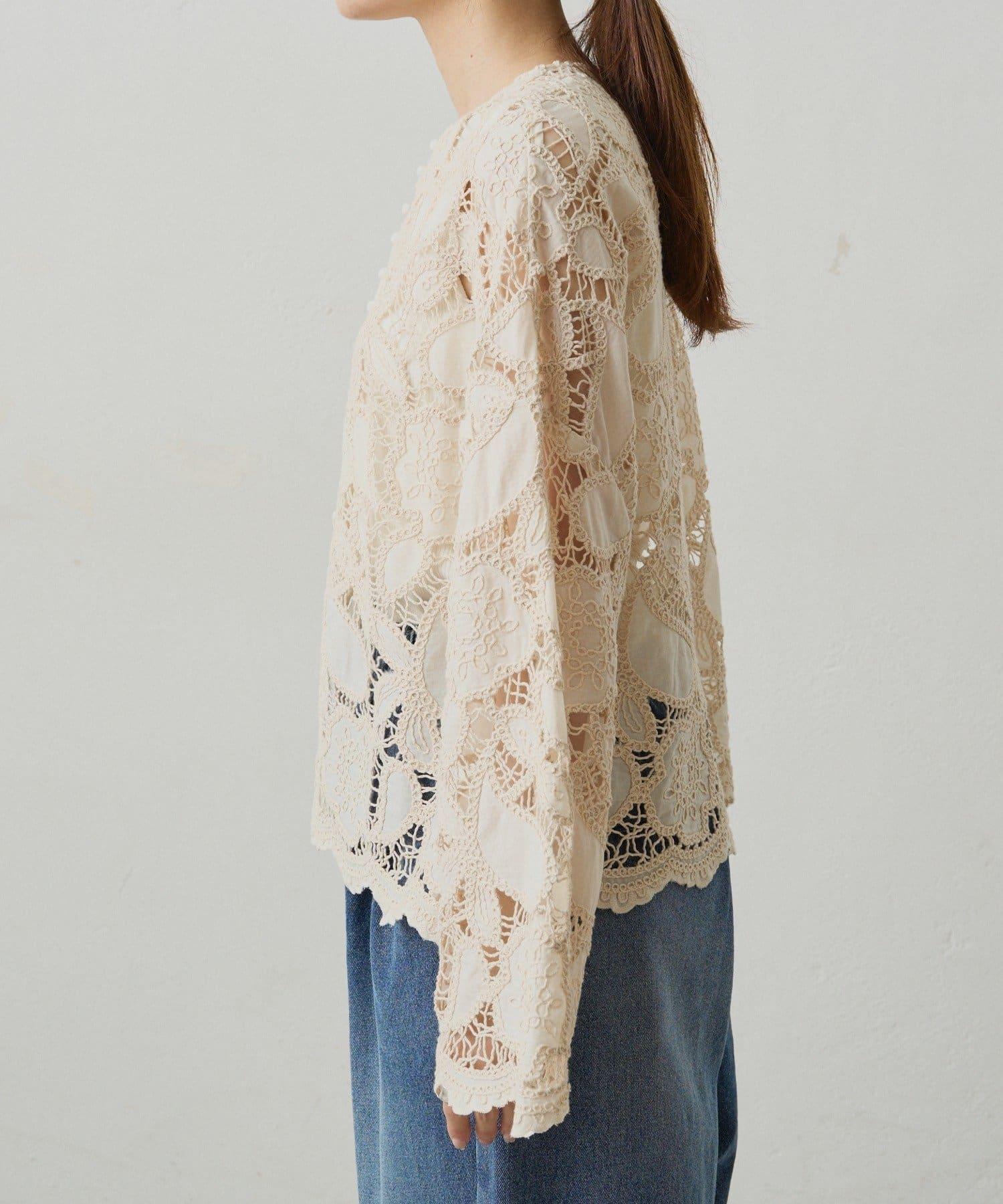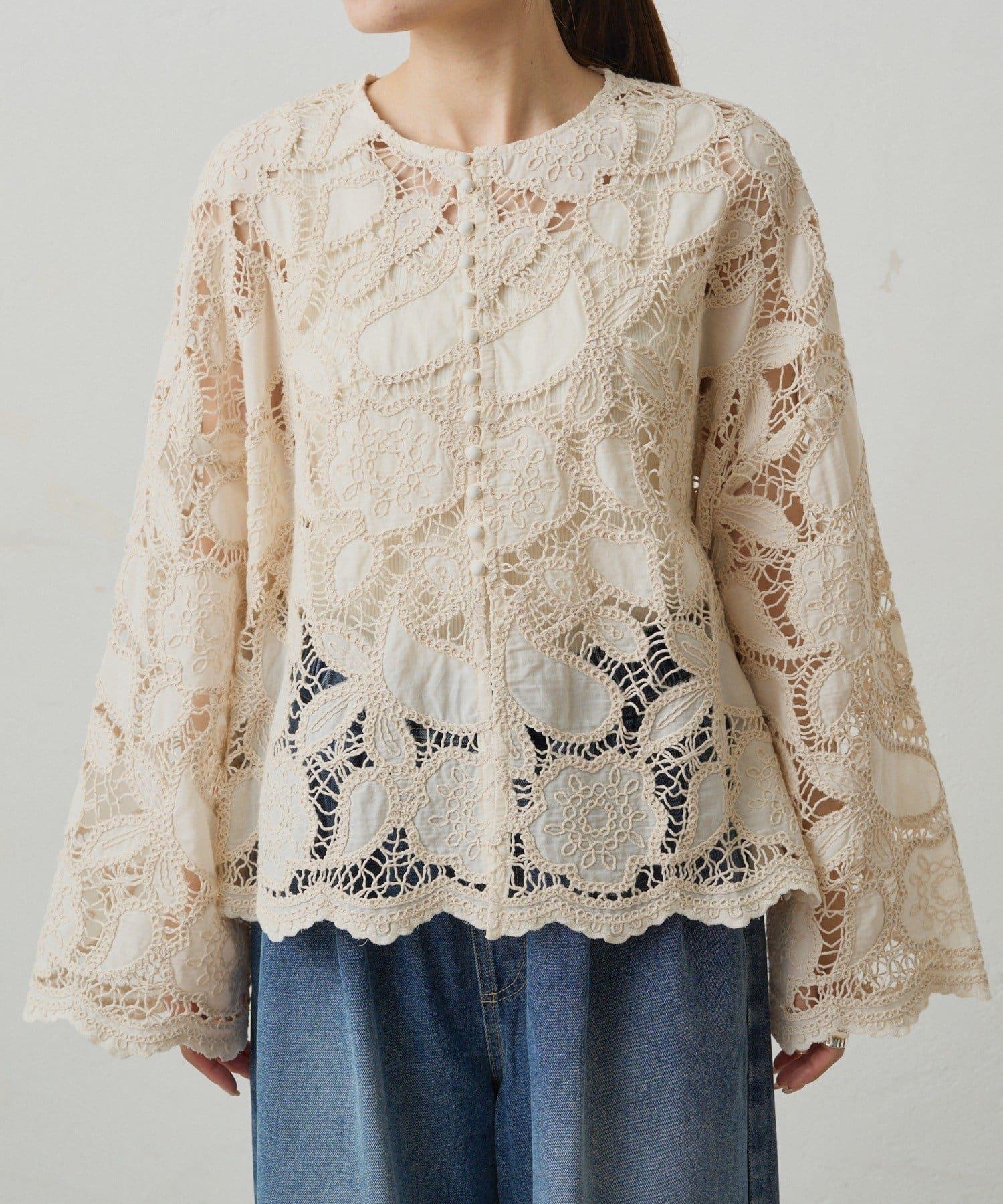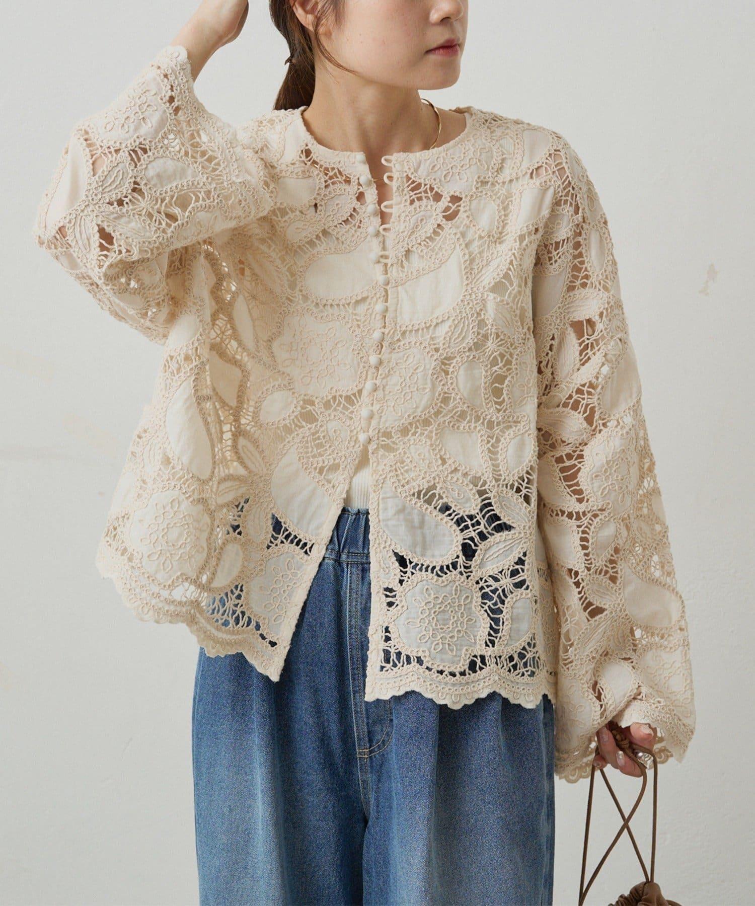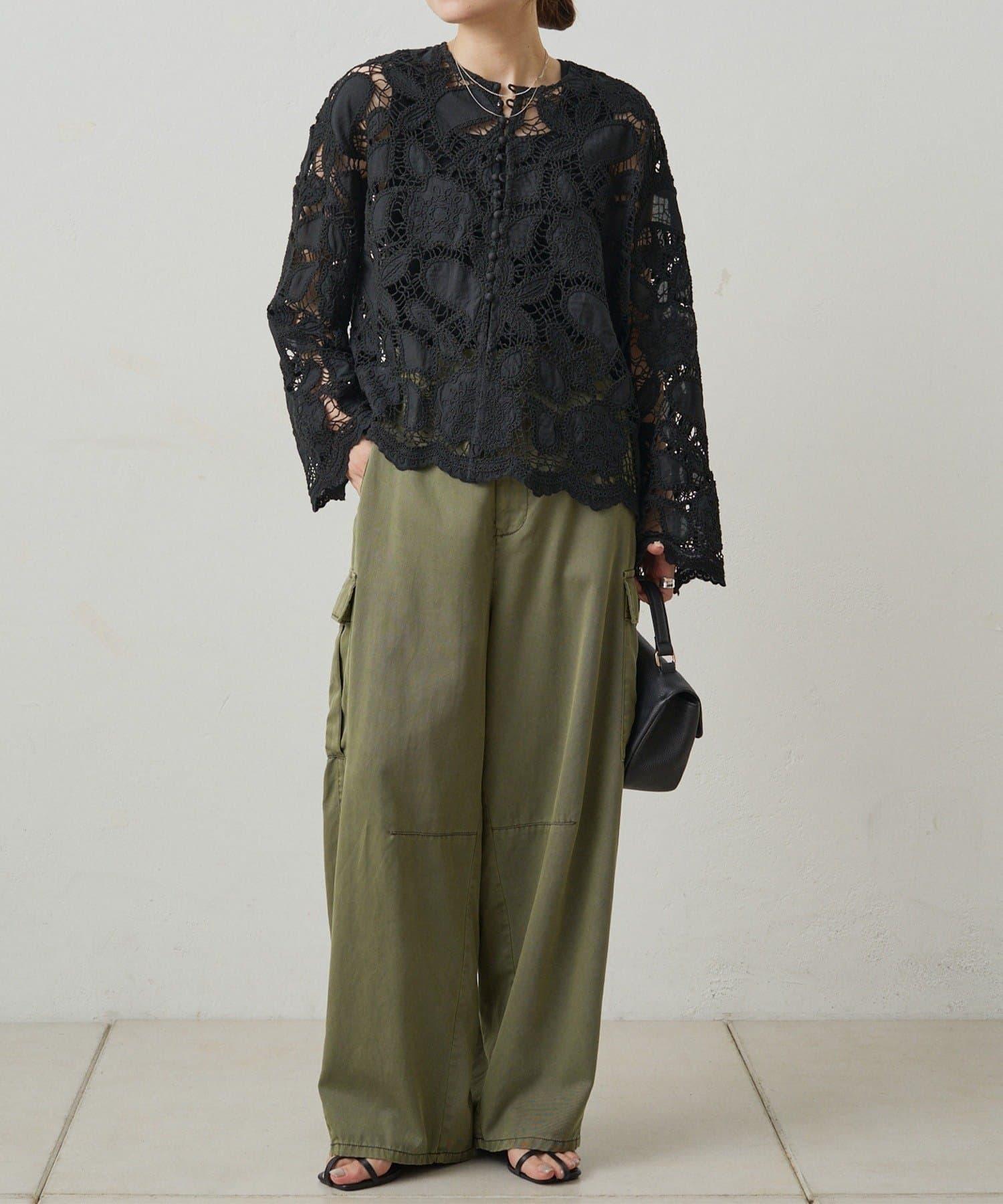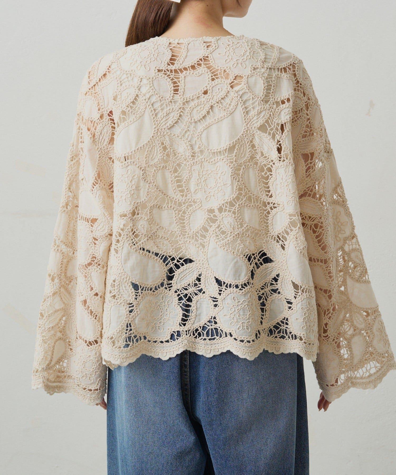 下襬和袖口也利用蕾絲的形狀,在細微處做了優雅的處理。
