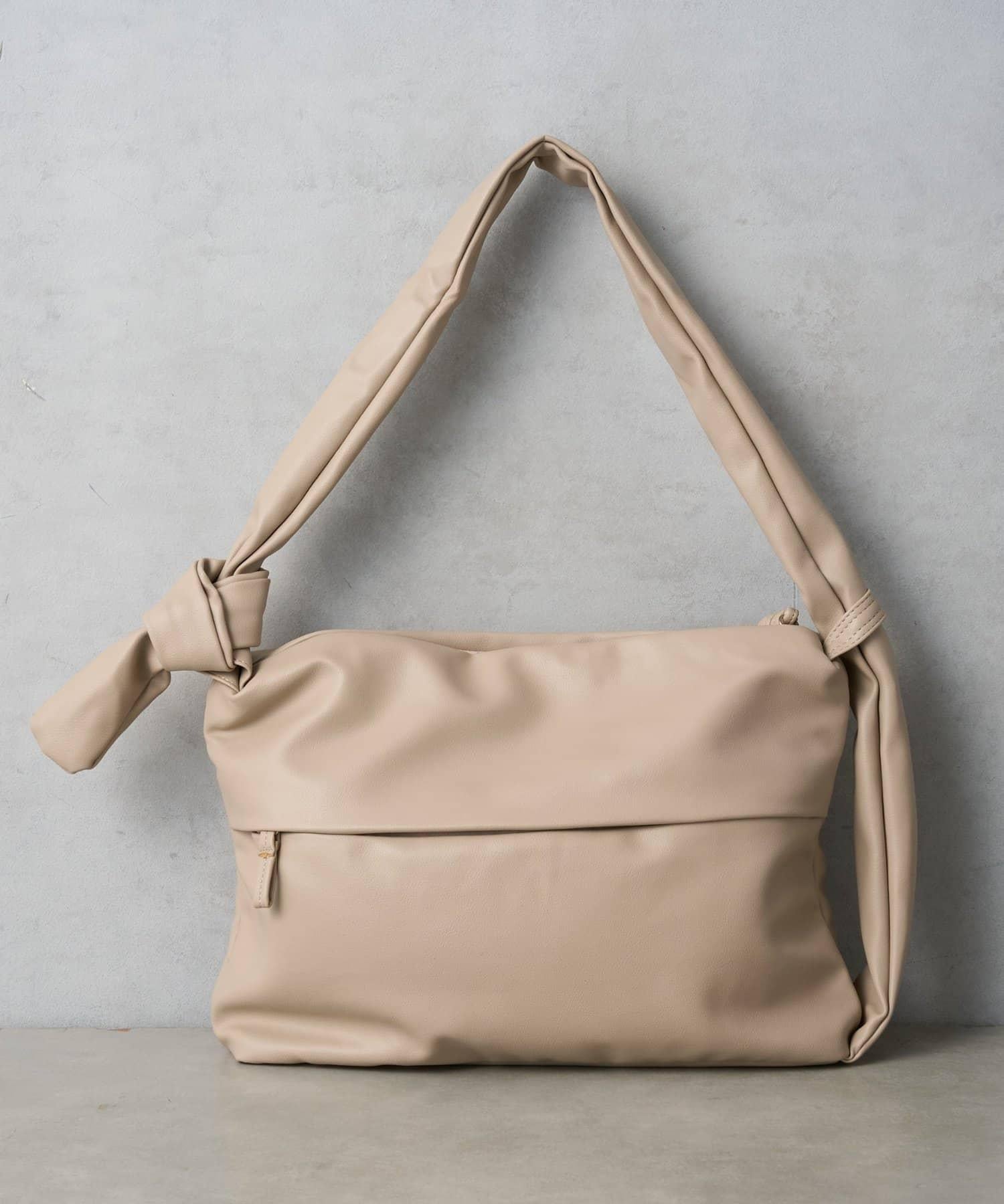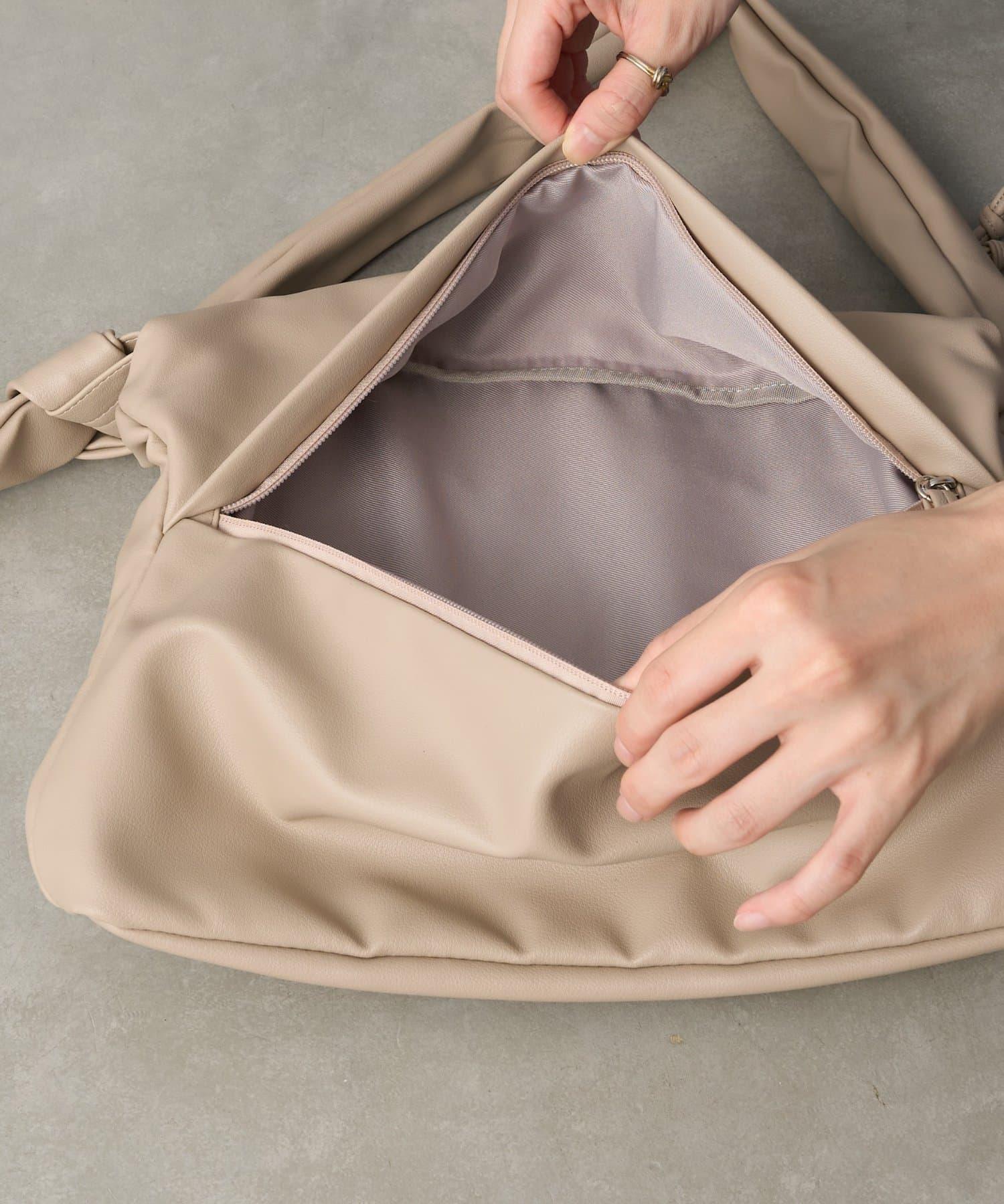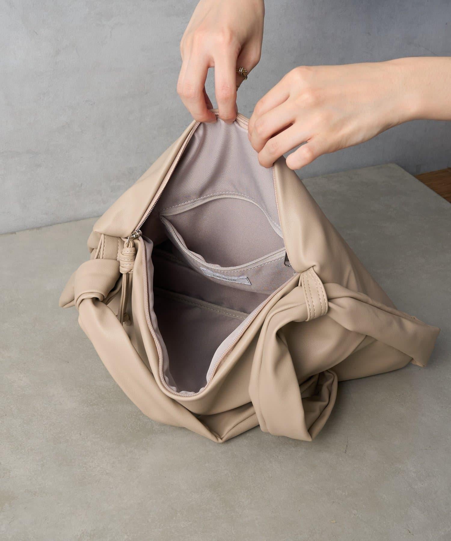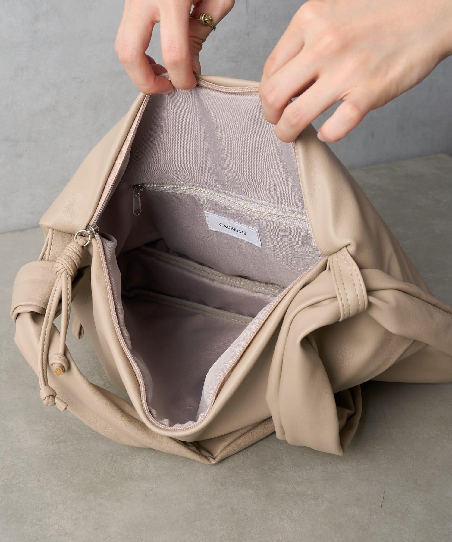 這款包還可以通過擠壓對側肩部將其垂直翻轉,使其看起來像個小揹包,類似於時下流行的抽繩揹包。