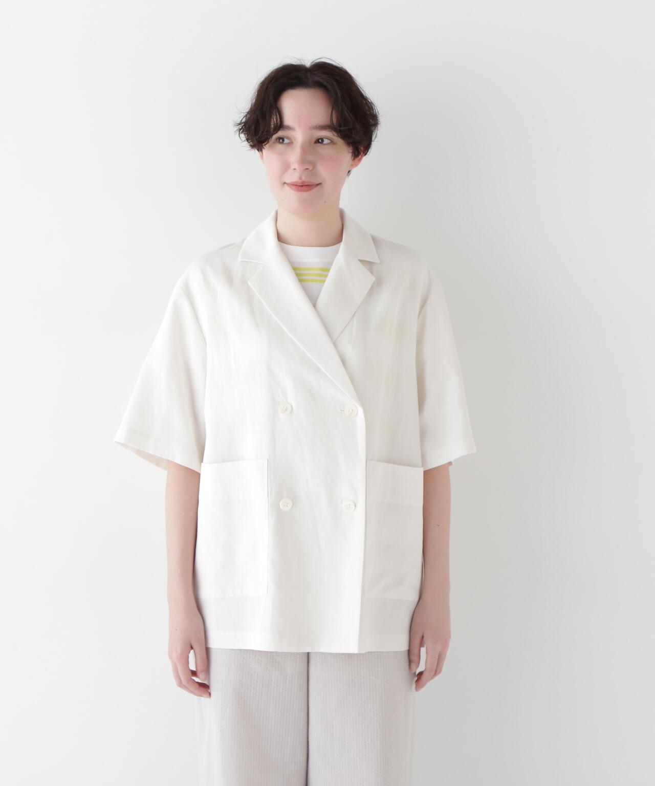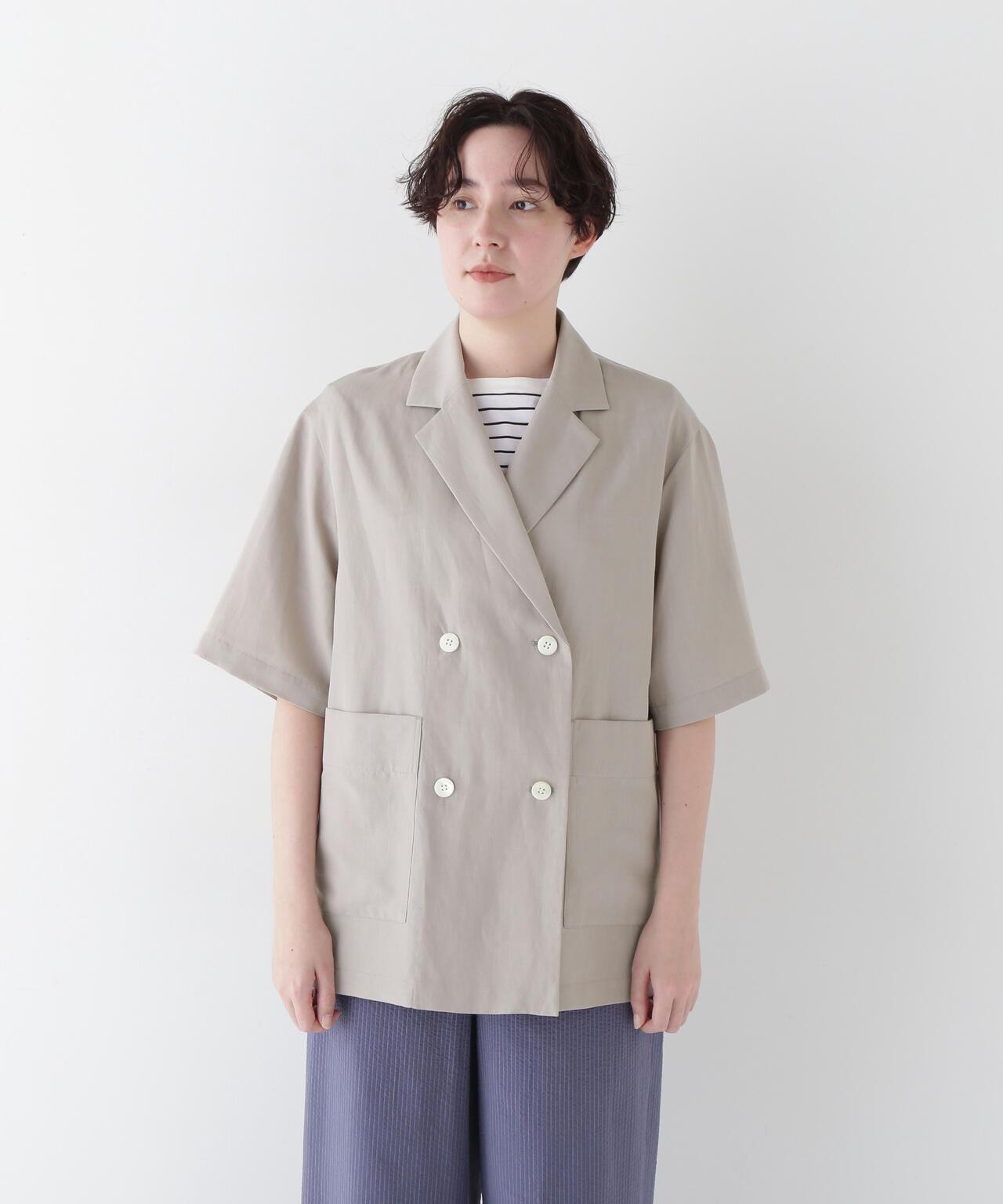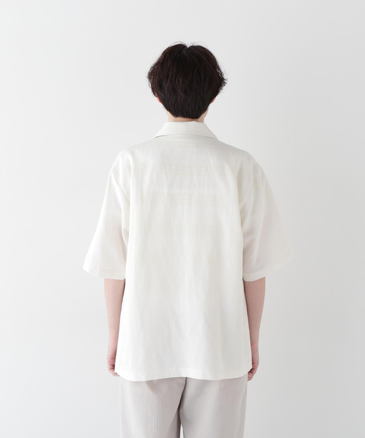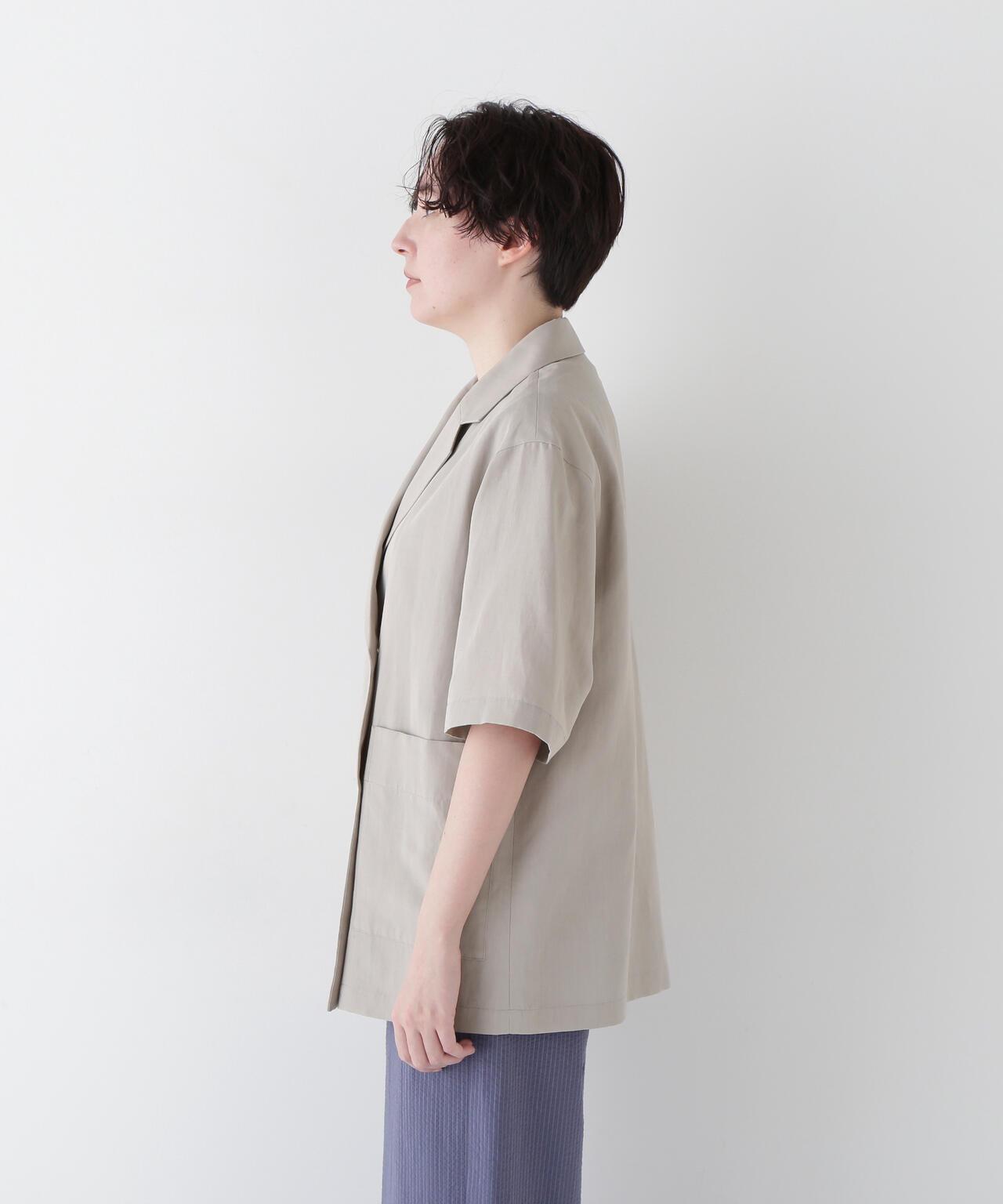 半袖夾克,只需穿上它就能做出各種造型 [設計要點] 這款雙紐扣短袖襯衫夾克外觀略顯整潔,非常適合春夏季節穿著。它的尺寸略大,質地輕盈。長短袖的設計讓它看起來不那麼幼稚。這款夾克採用混織面料製成,經過滾揉加工,在亞麻的鬆軟感上增添了自然的皺褶紋理。夾克的長度稍長,便於搭配各種下裝。它既可以搭配邊飾單品和徽標 T 衫,打造成人休閒造型,也可以搭配漂亮的下裝,打造辦公室場景。