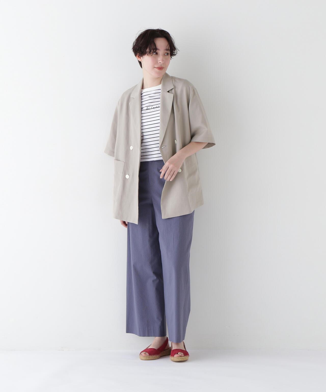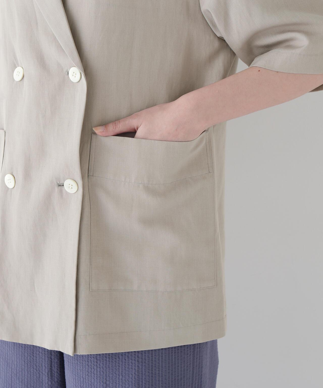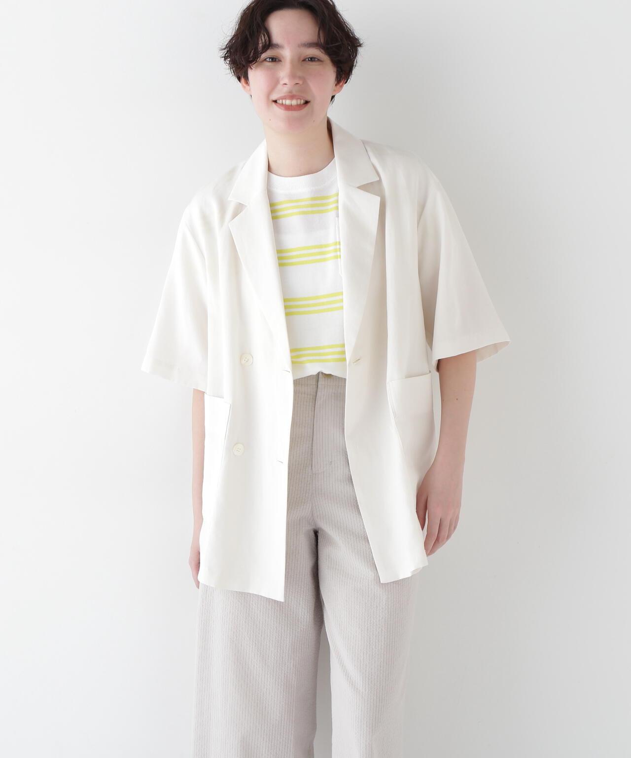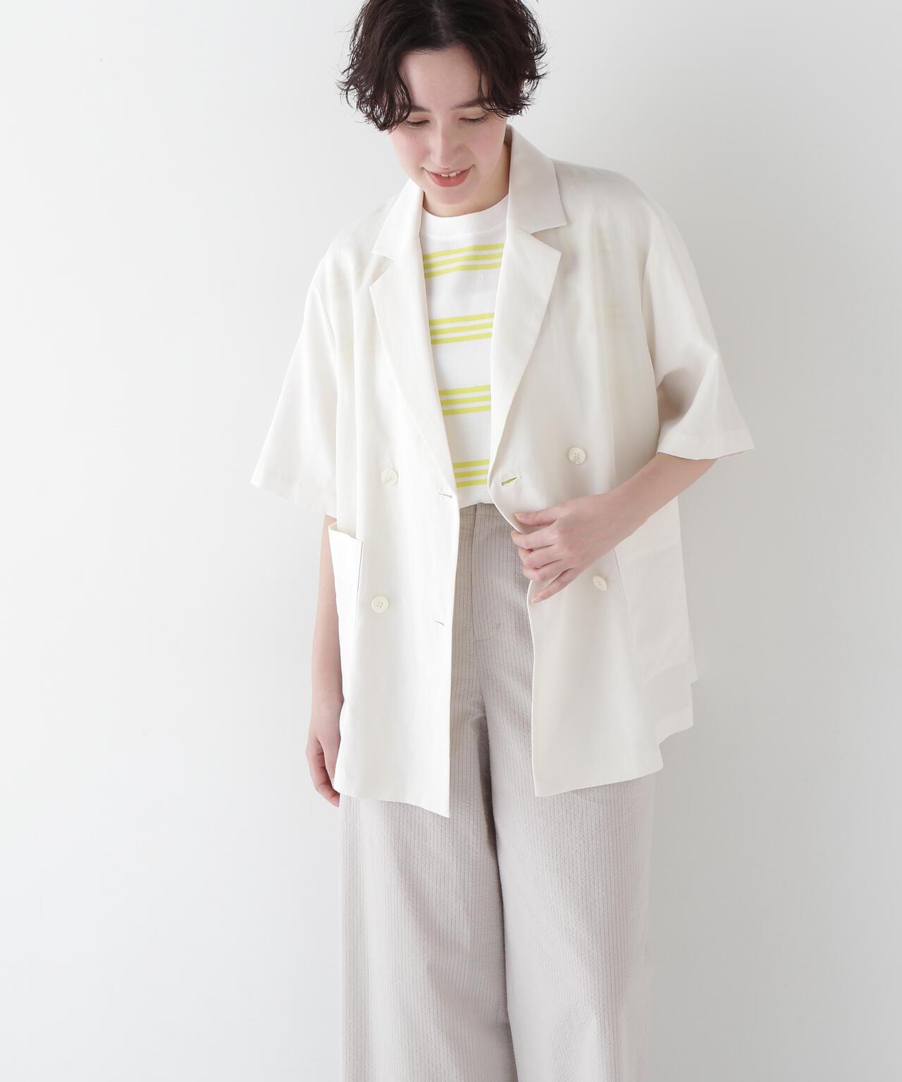 半袖夾克,只需穿上它就能做出各種造型 [設計要點] 這款雙紐扣短袖襯衫夾克外觀略顯整潔,非常適合春夏季節穿著。它的尺寸略大,質地輕盈。長短袖的設計讓它看起來不那麼幼稚。這款夾克採用混織面料製成,經過滾揉加工,在亞麻的鬆軟感上增添了自然的皺褶紋理。夾克的長度稍長,便於搭配各種下裝。它既可以搭配邊飾單品和徽標 T 衫,打造成人休閒造型,也可以搭配漂亮的下裝,打造辦公室場景。