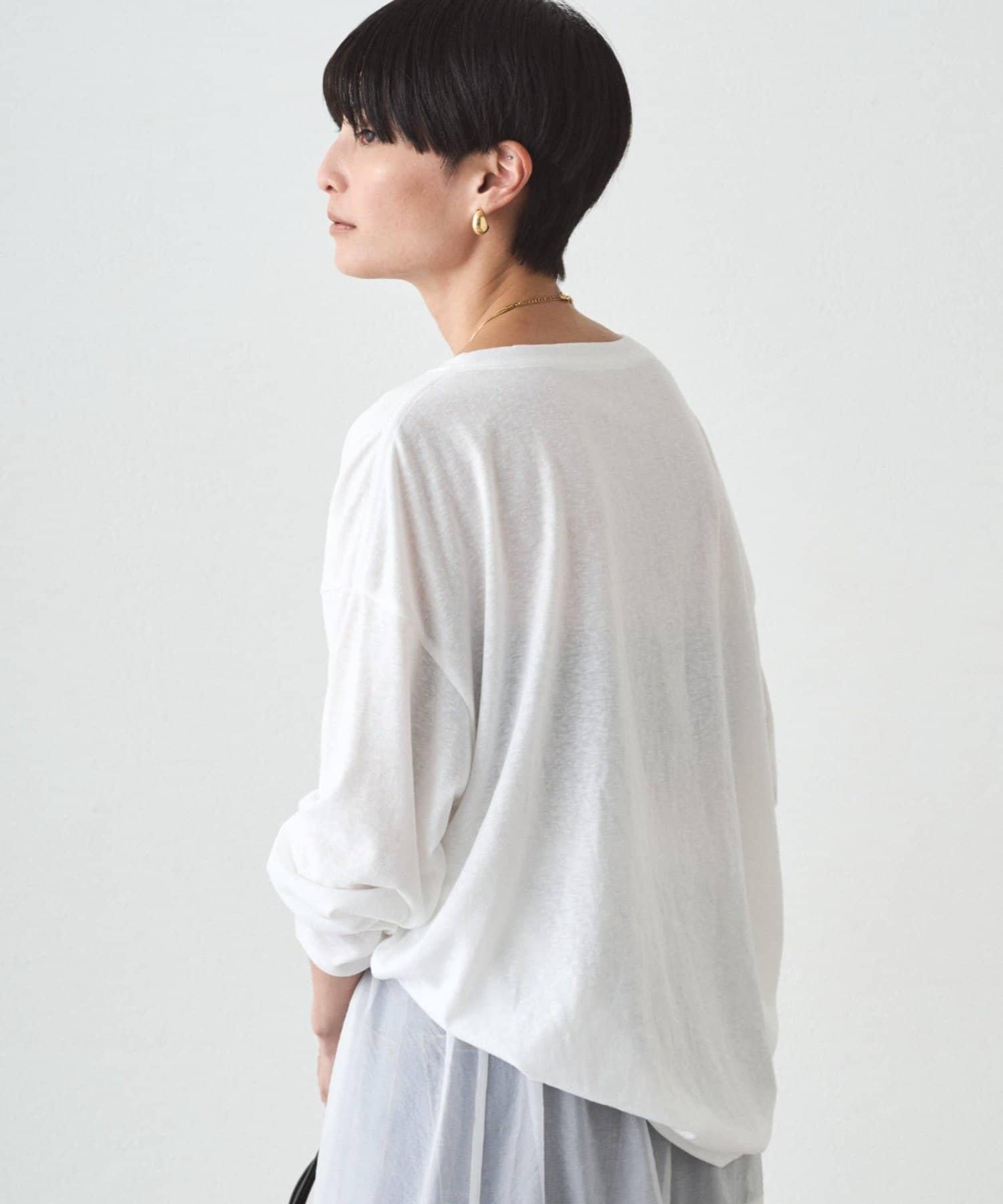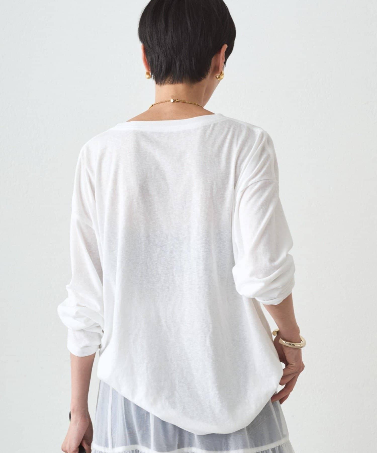 長袖設計營造出寬鬆的版型,給人一種悠閒的感覺,而適度的透明度則增強了女性的柔美氣質。