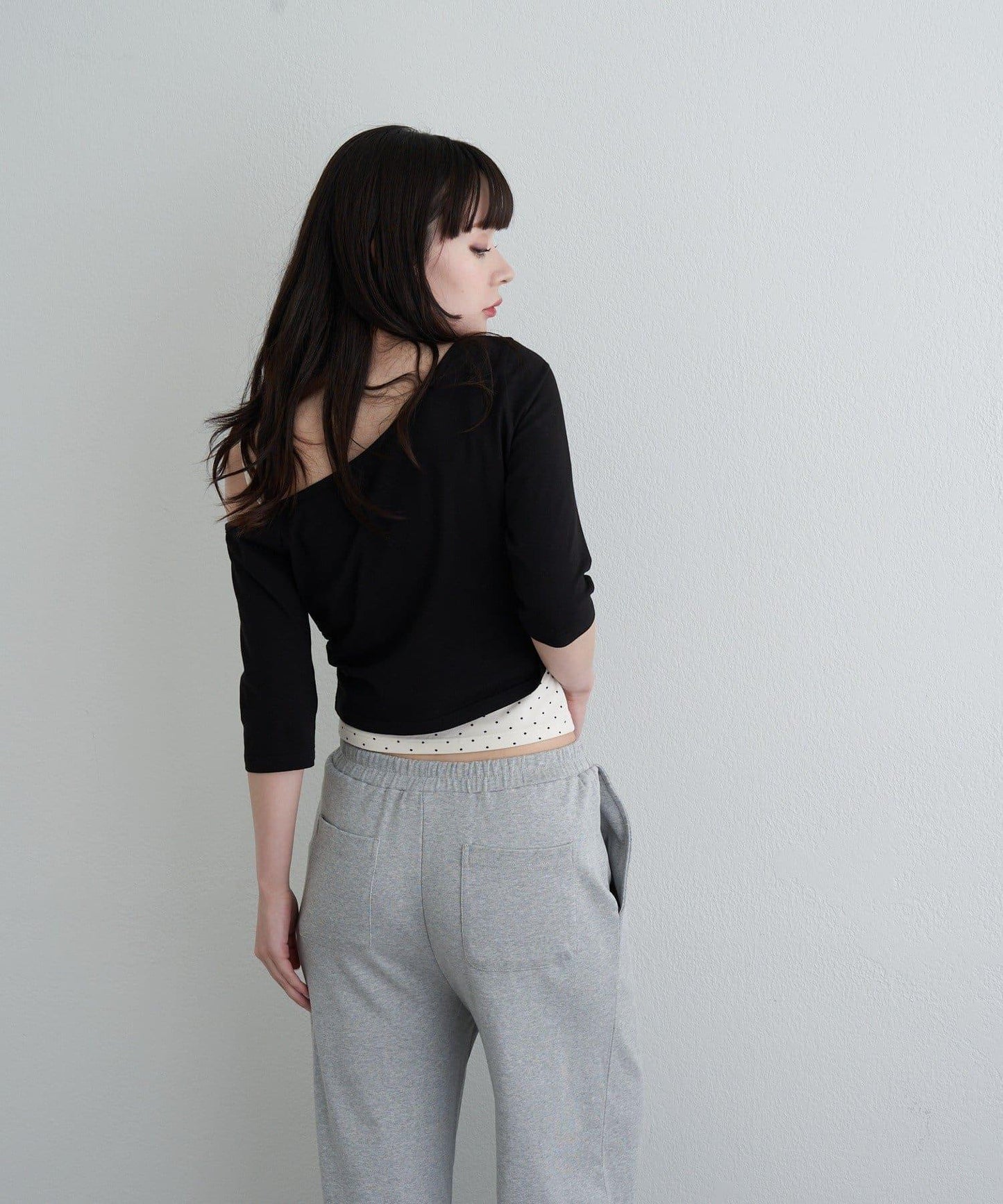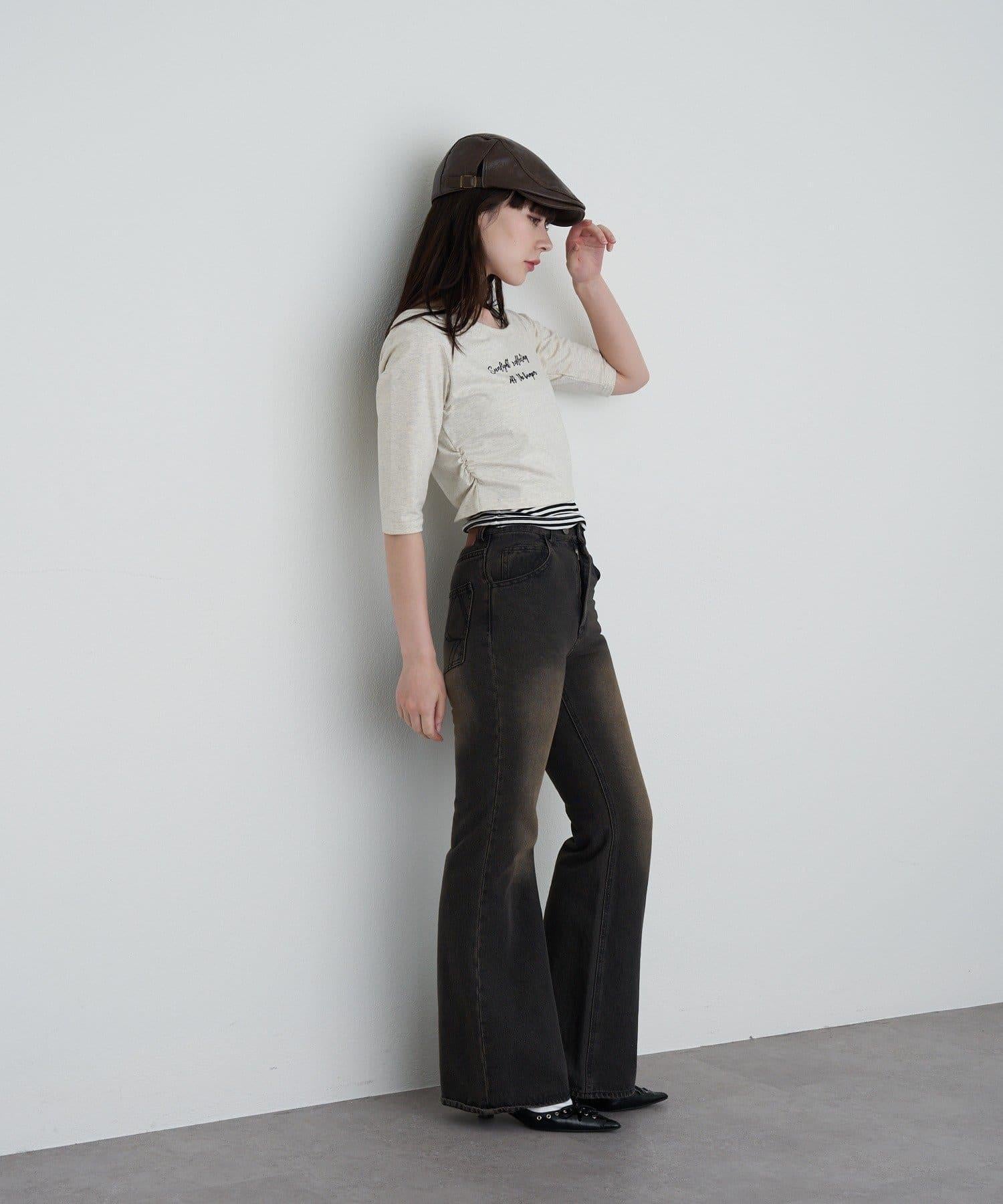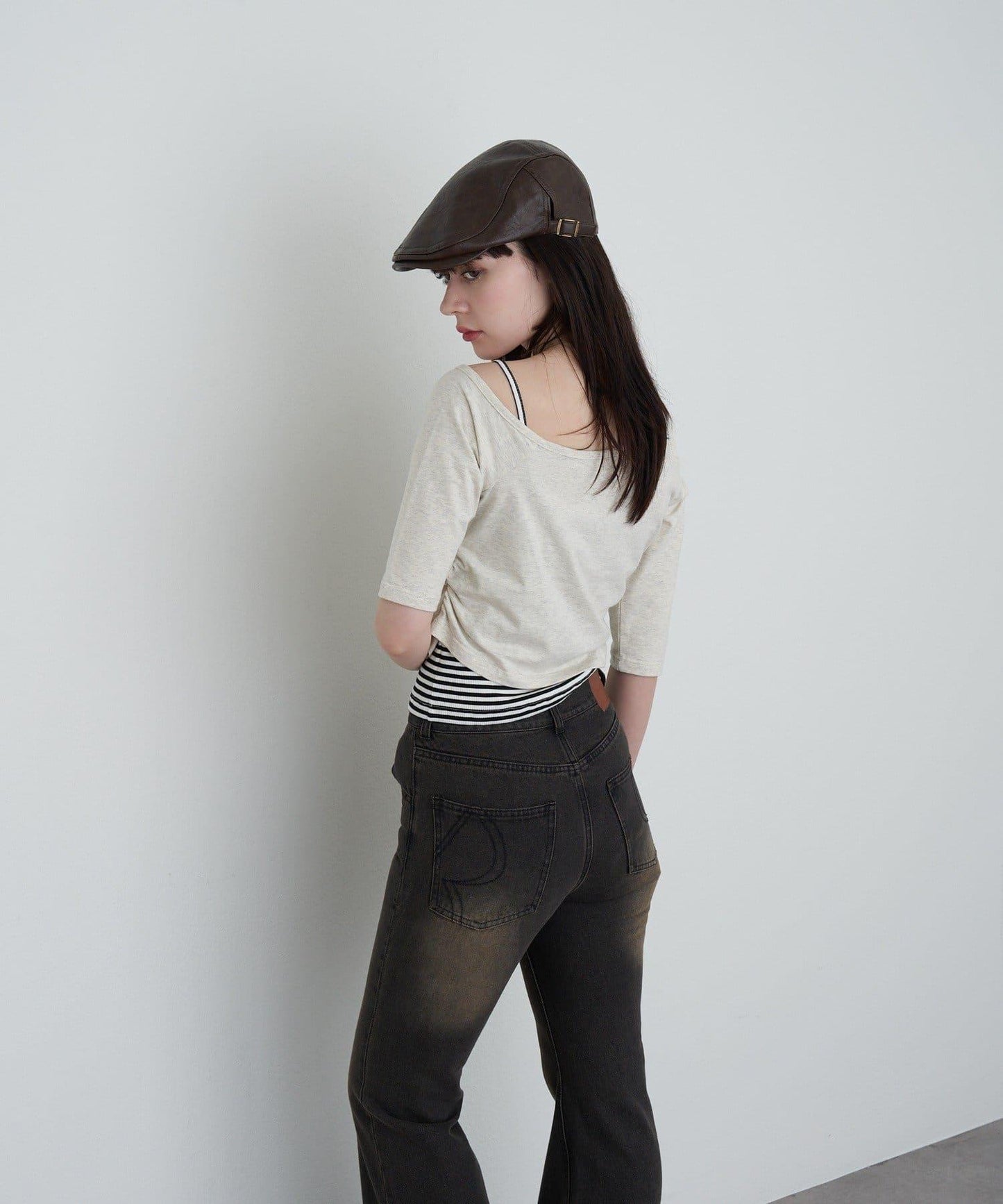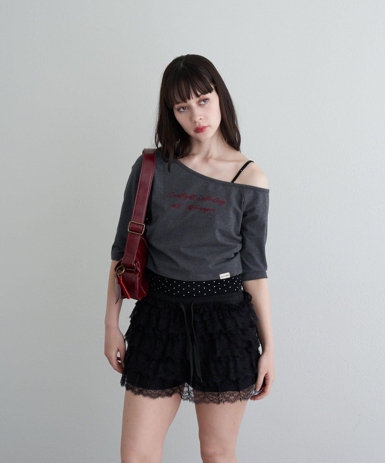 【RAY CASSIN】フロッキーロゴワンショルレイヤードTシャツ