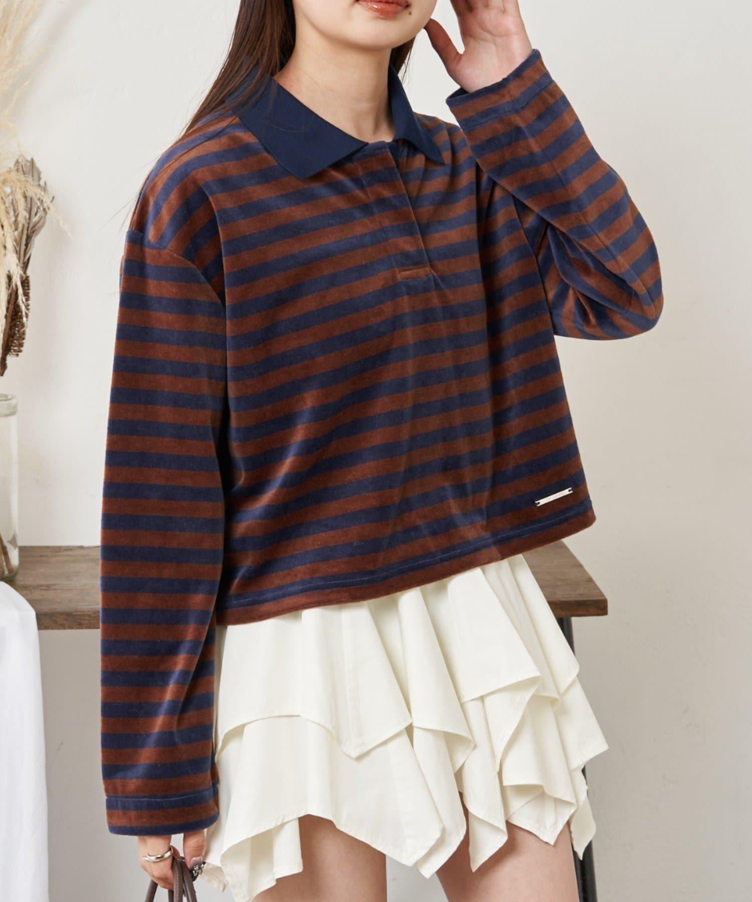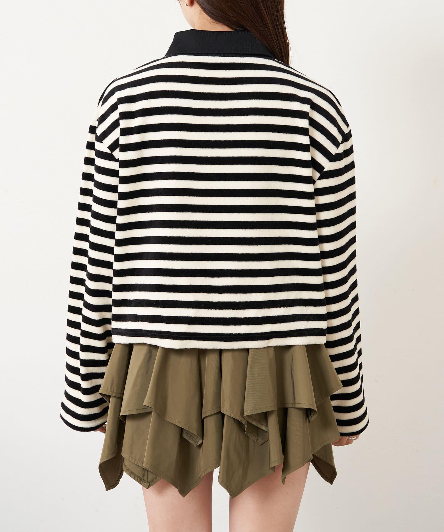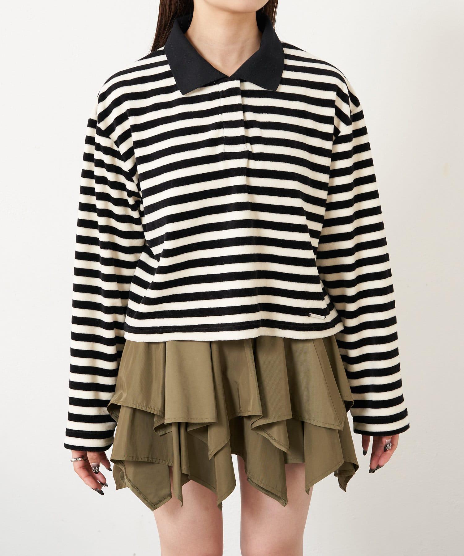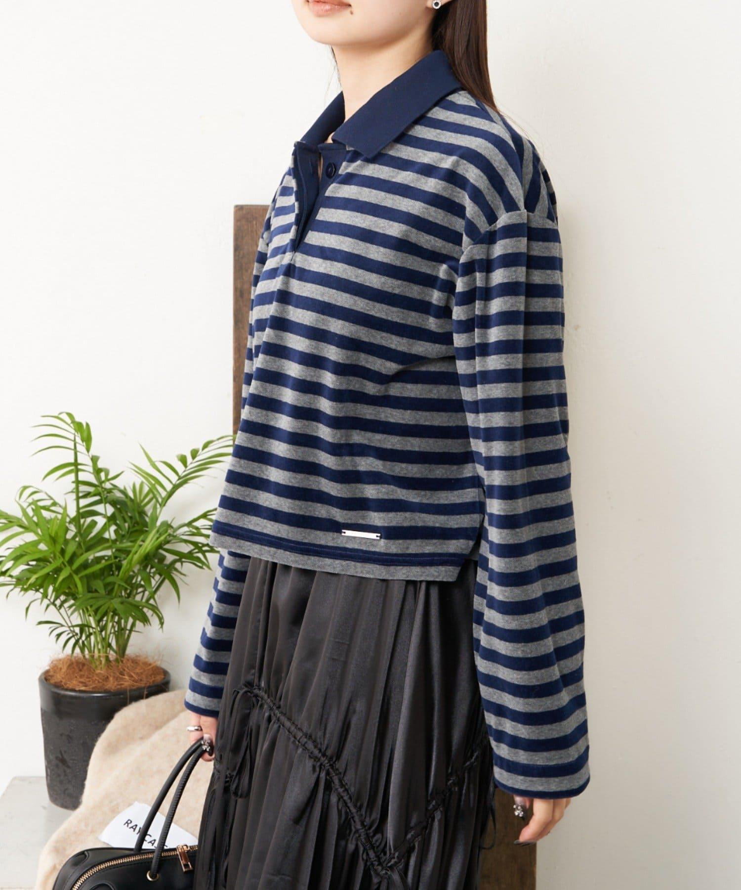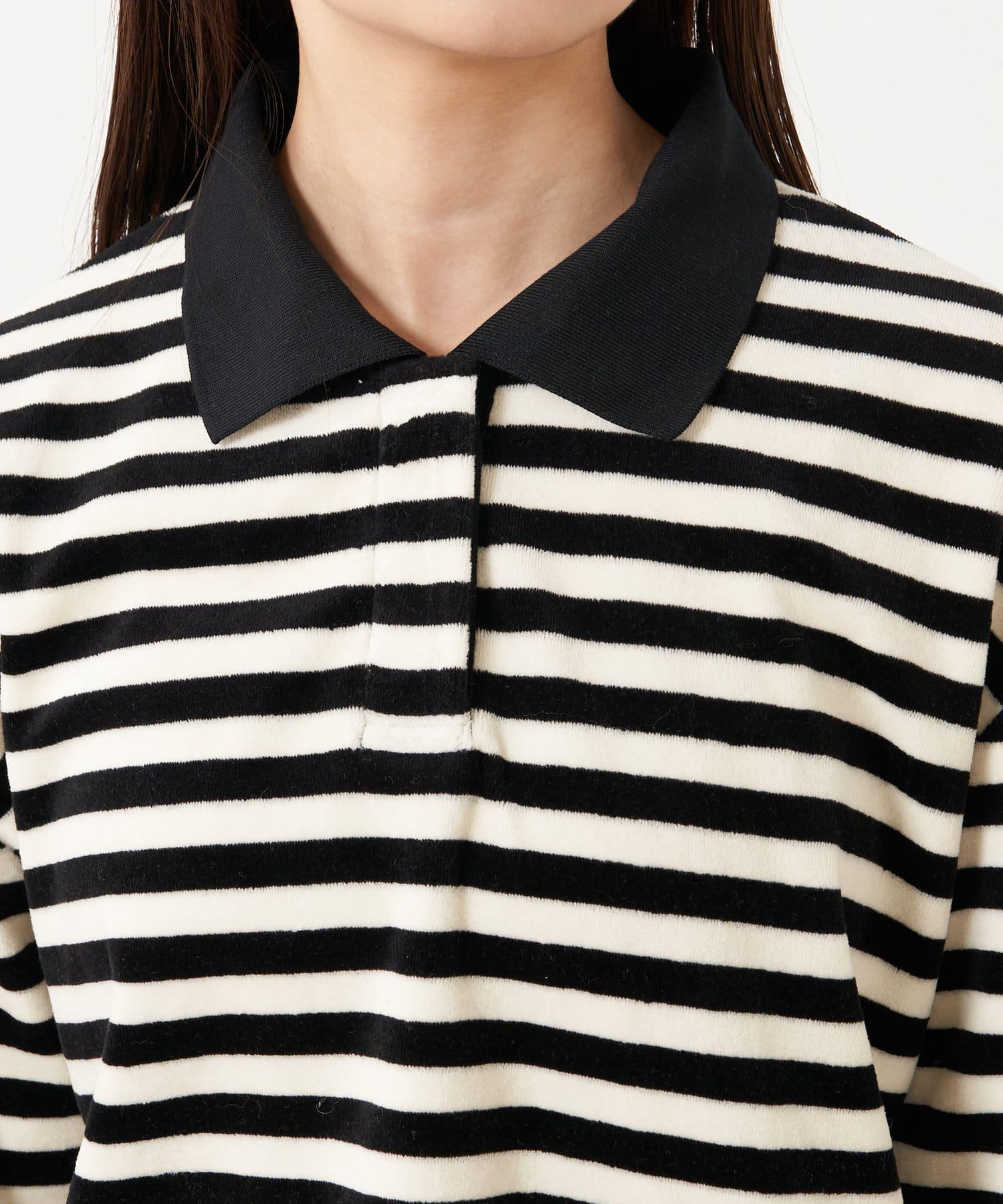 【RAY CASSIN】天鵝絨條紋寬鬆翻領T恤