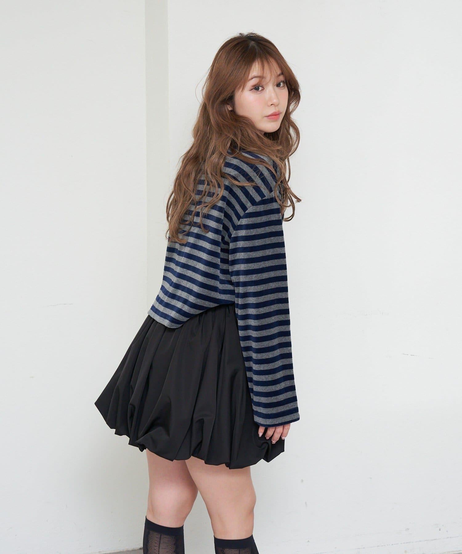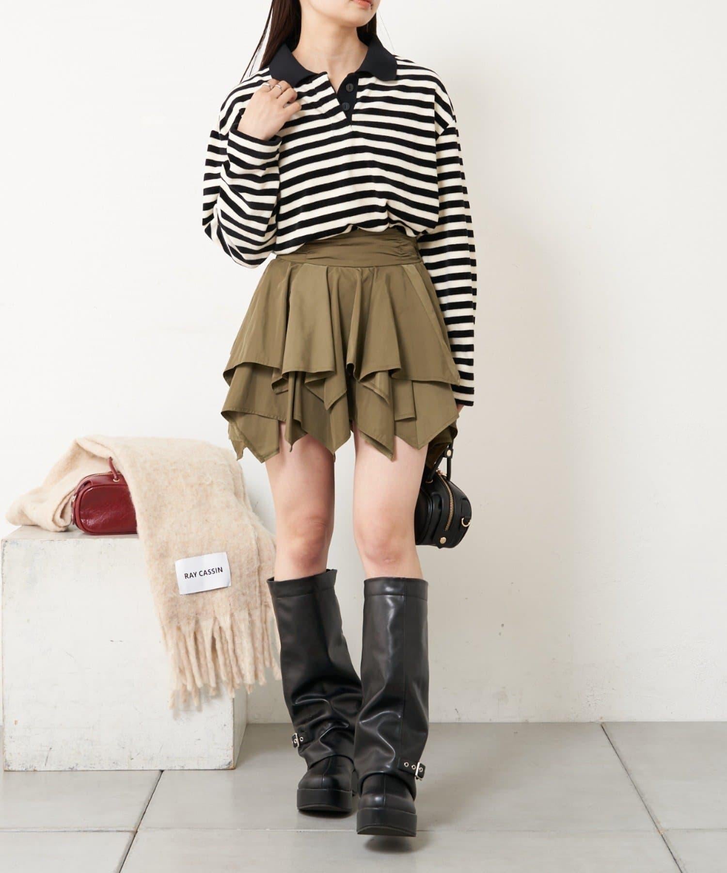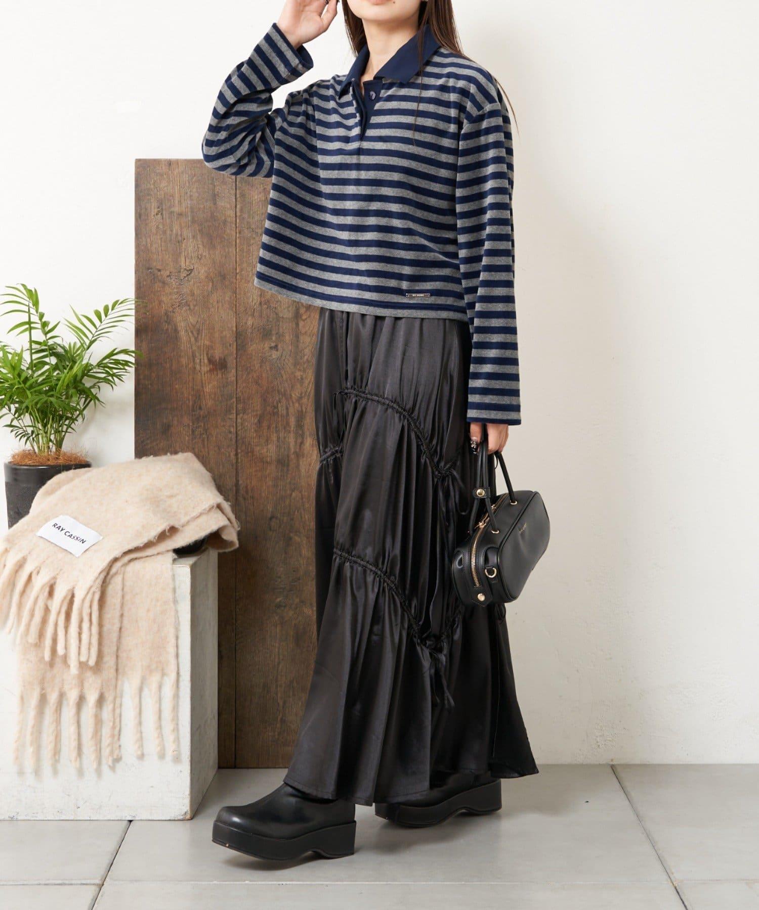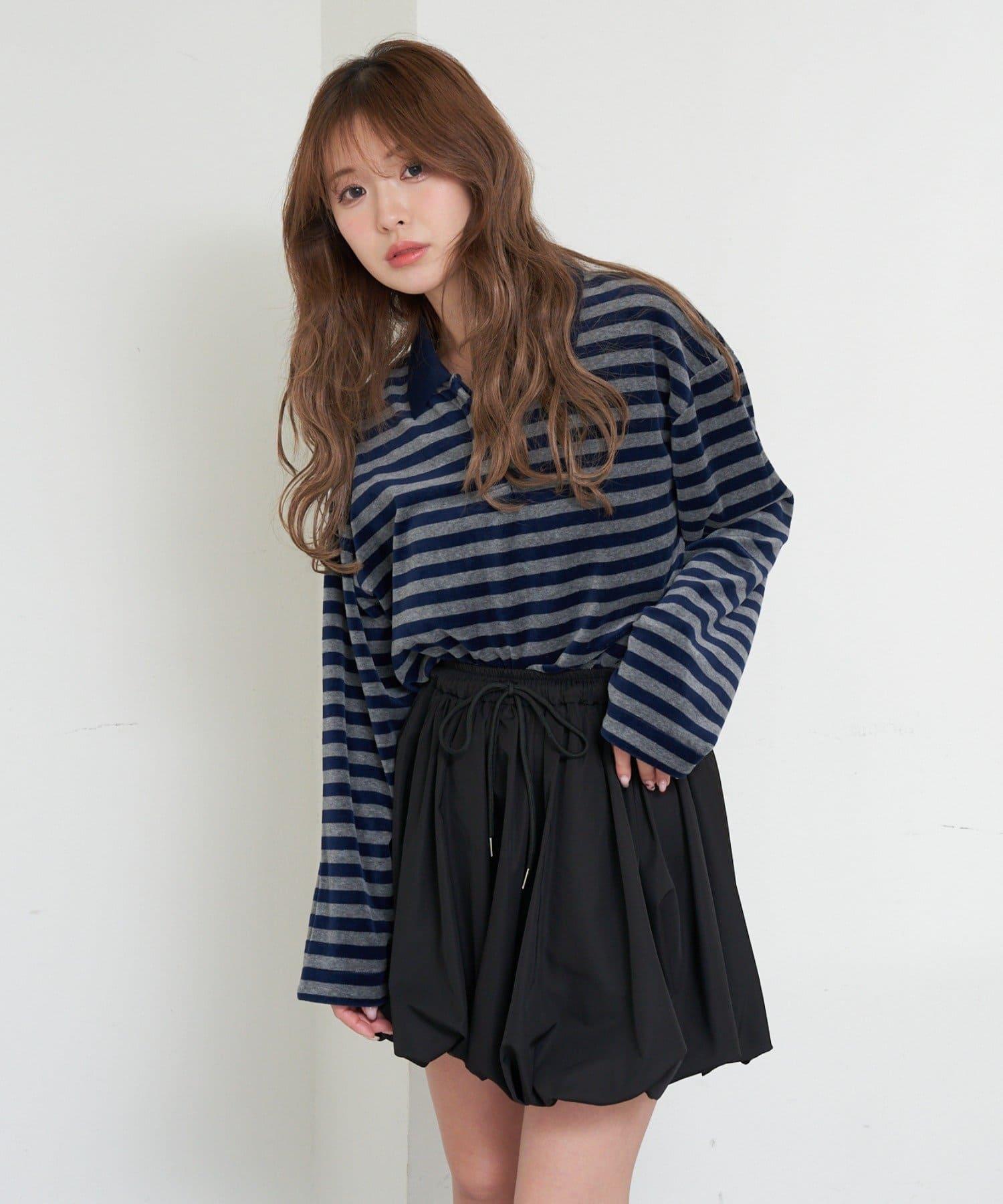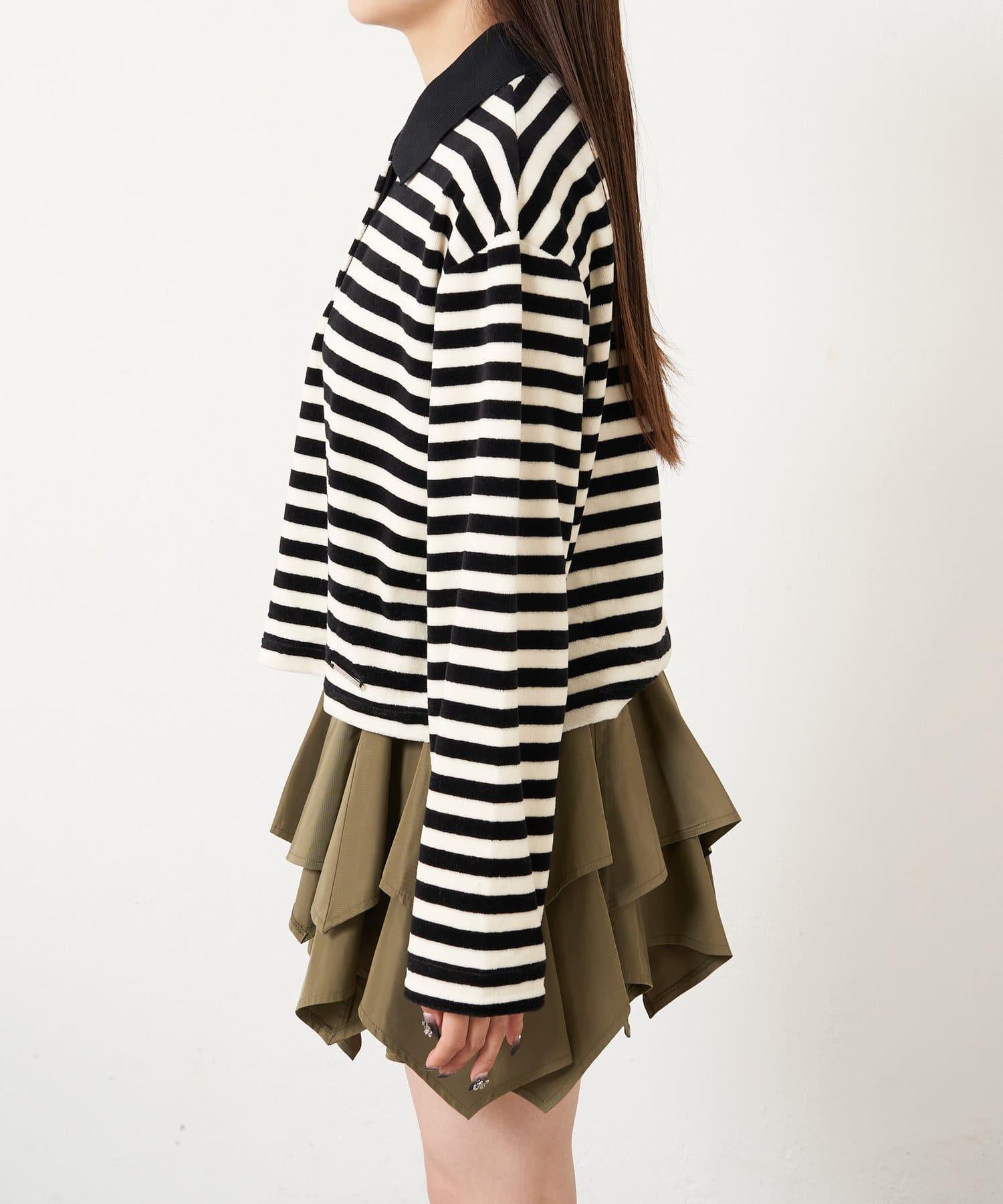【RAY CASSIN】天鵝絨條紋寬鬆翻領T恤