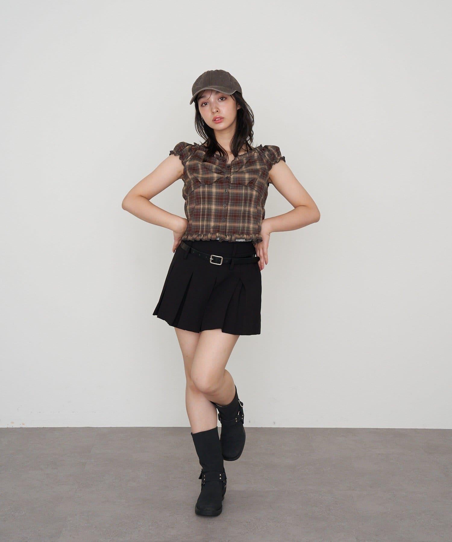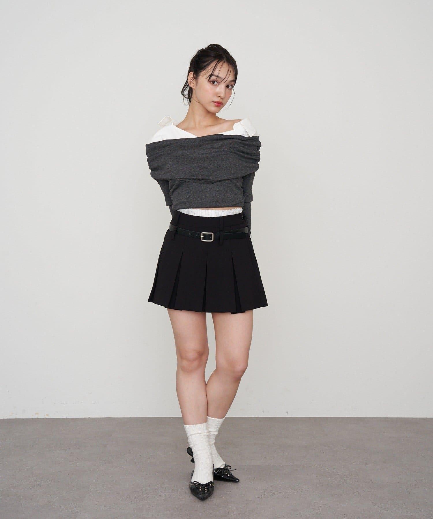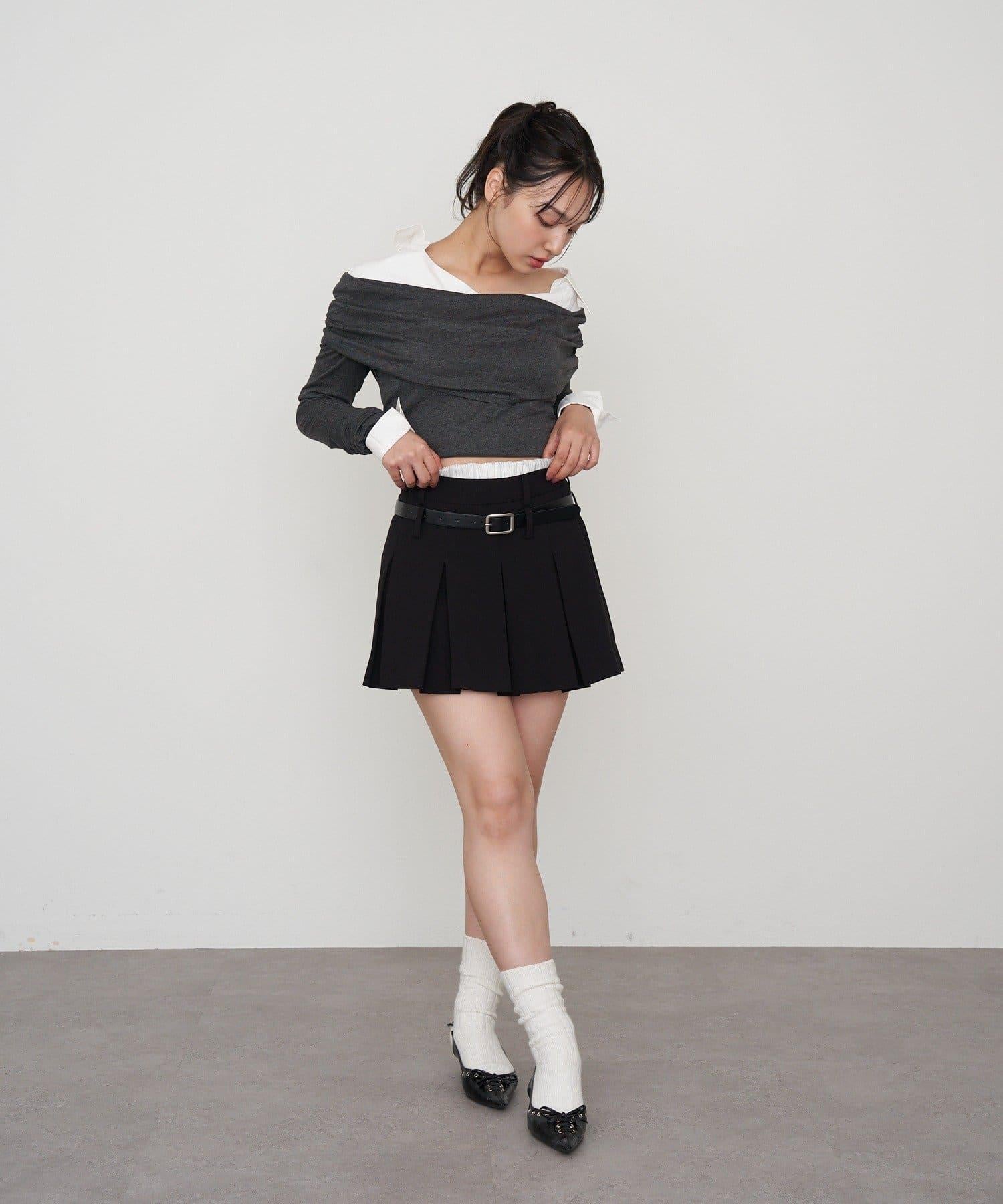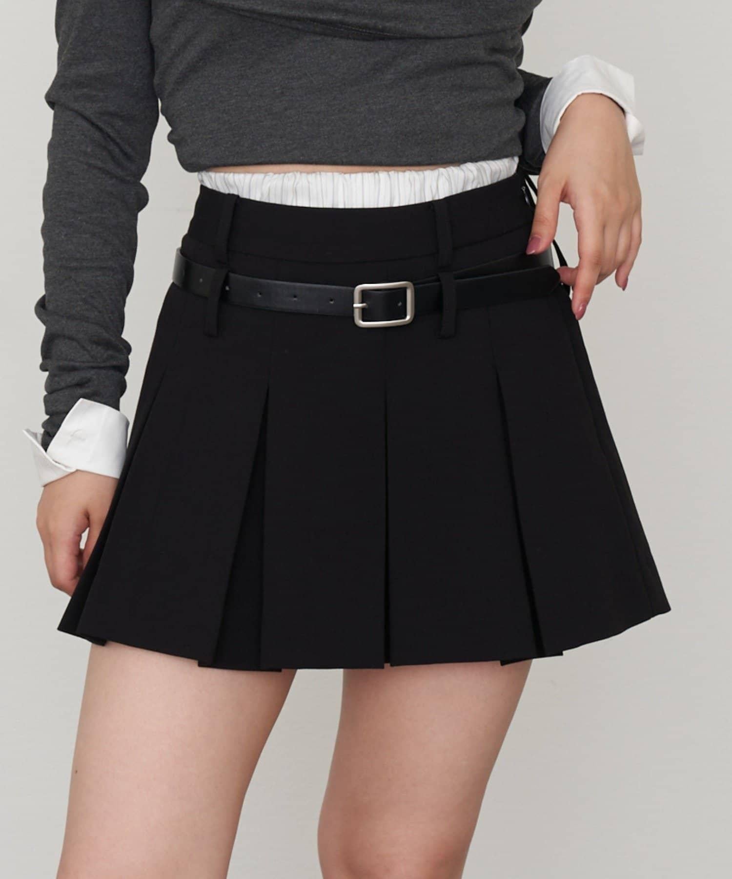 【RAY CASSIN】帶腰帶層疊百褶裙褲