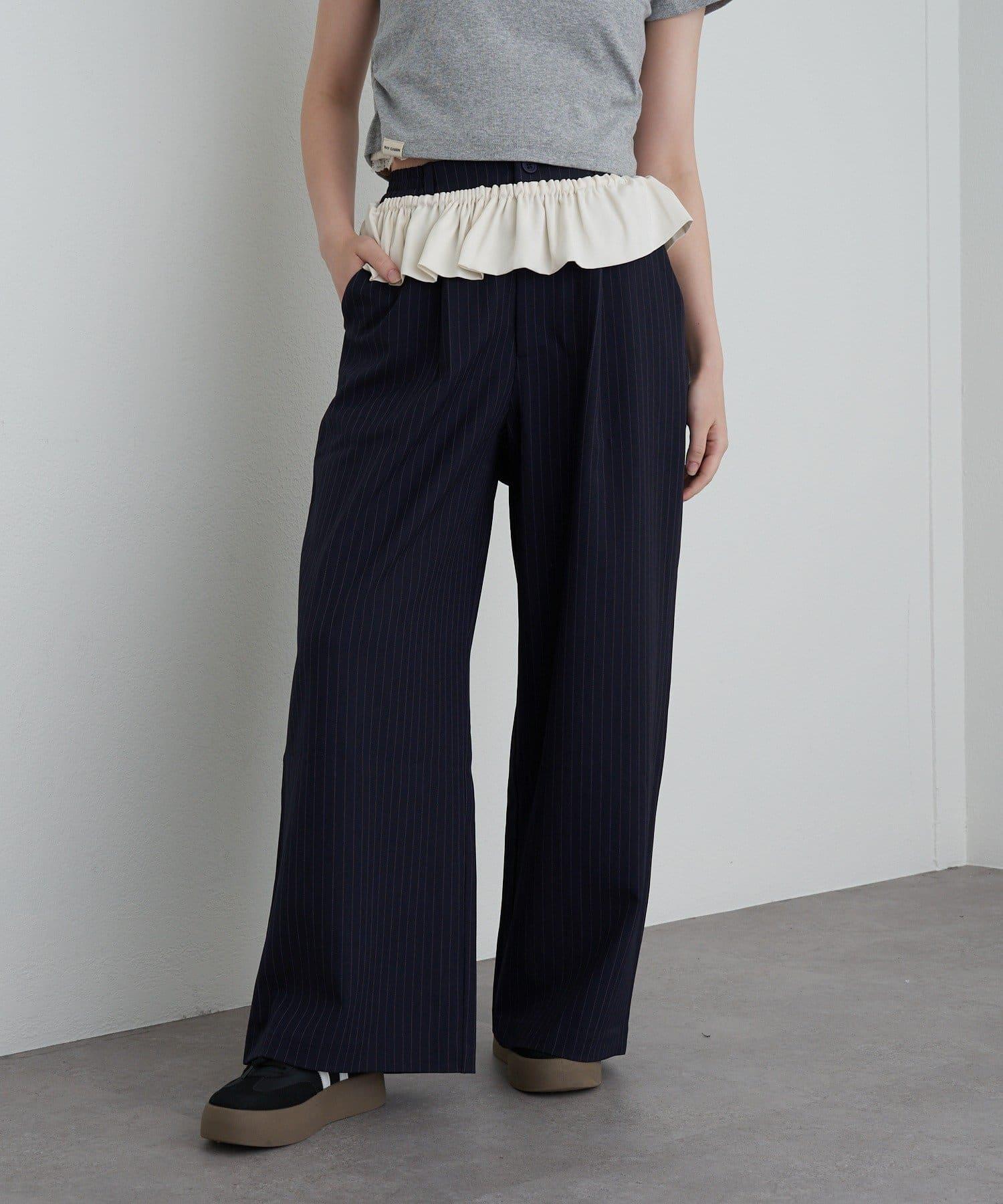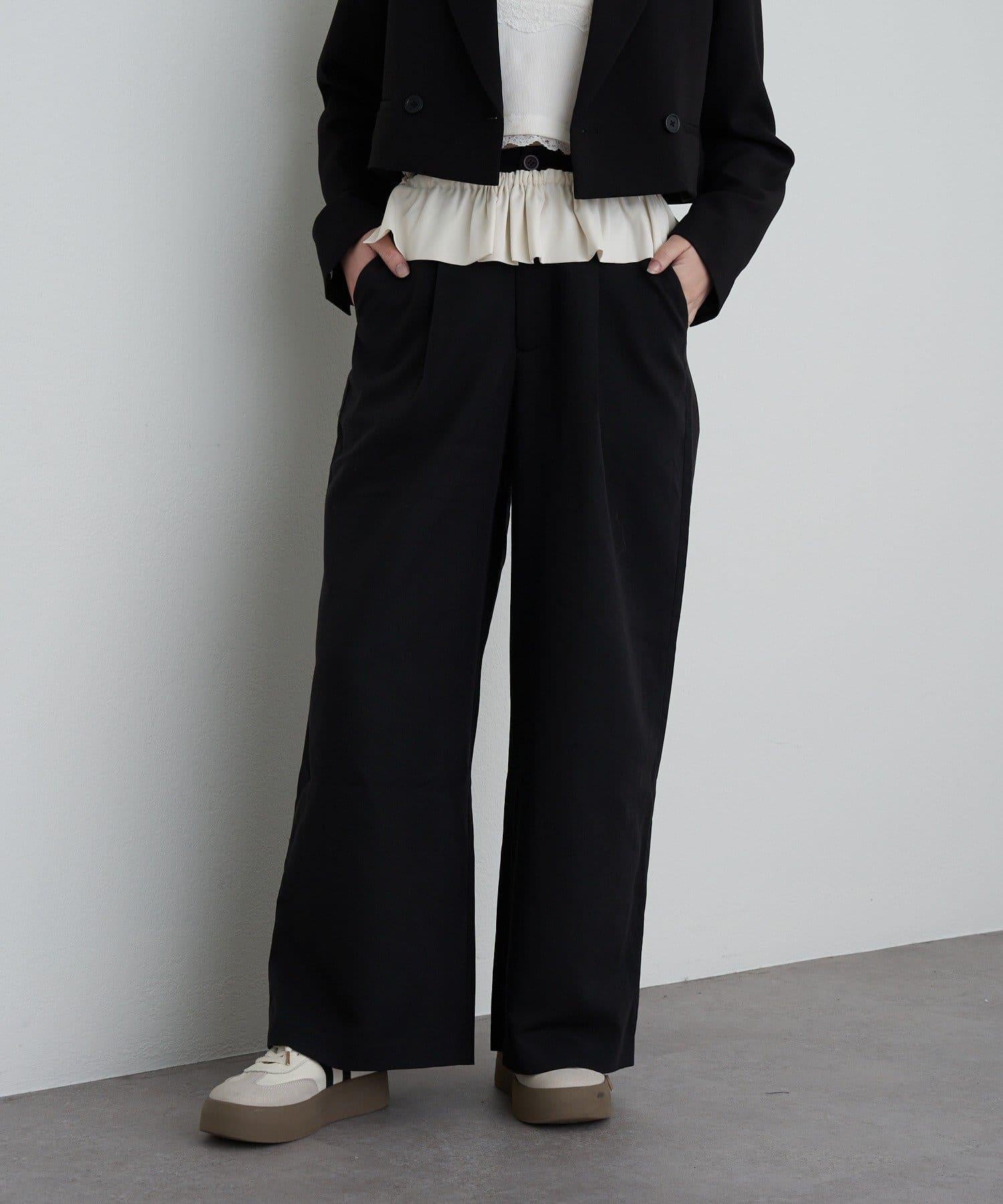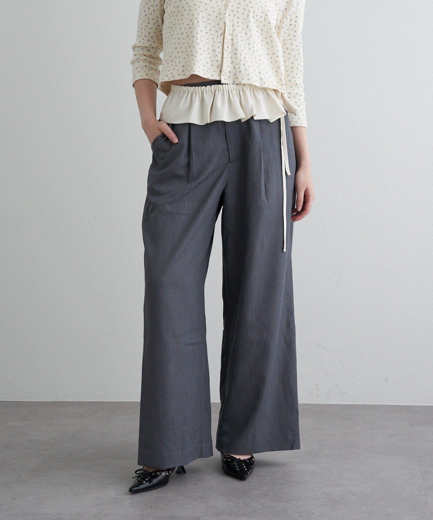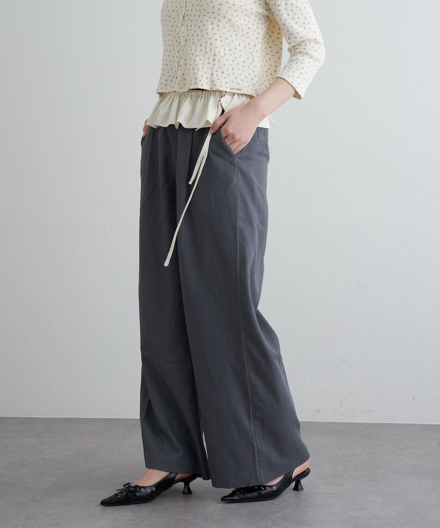 【RAY CASSIN】帶荷葉邊腰帶寬鬆休閒長褲
