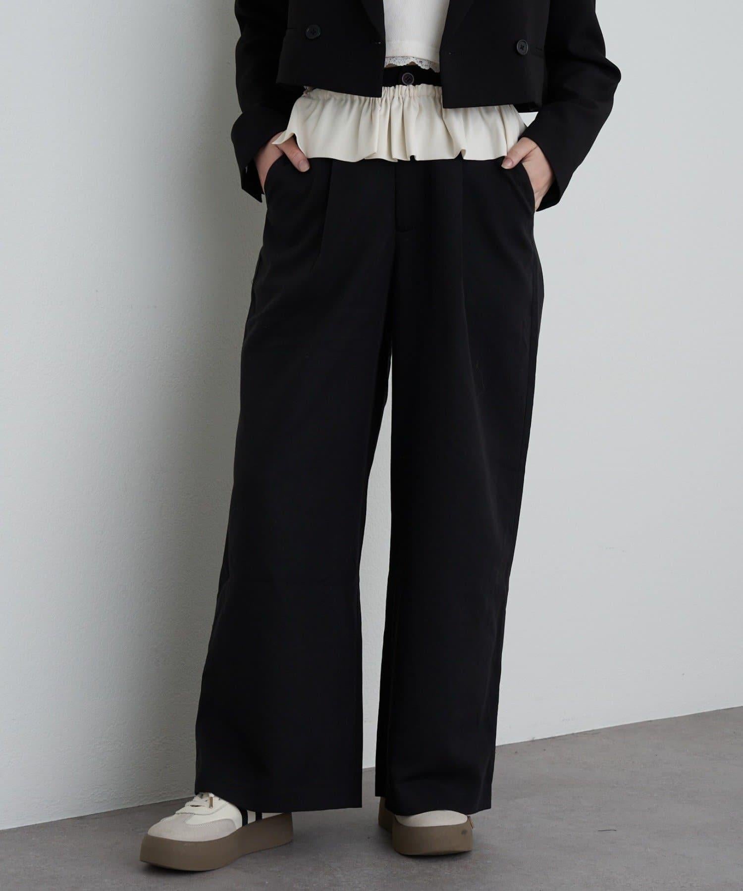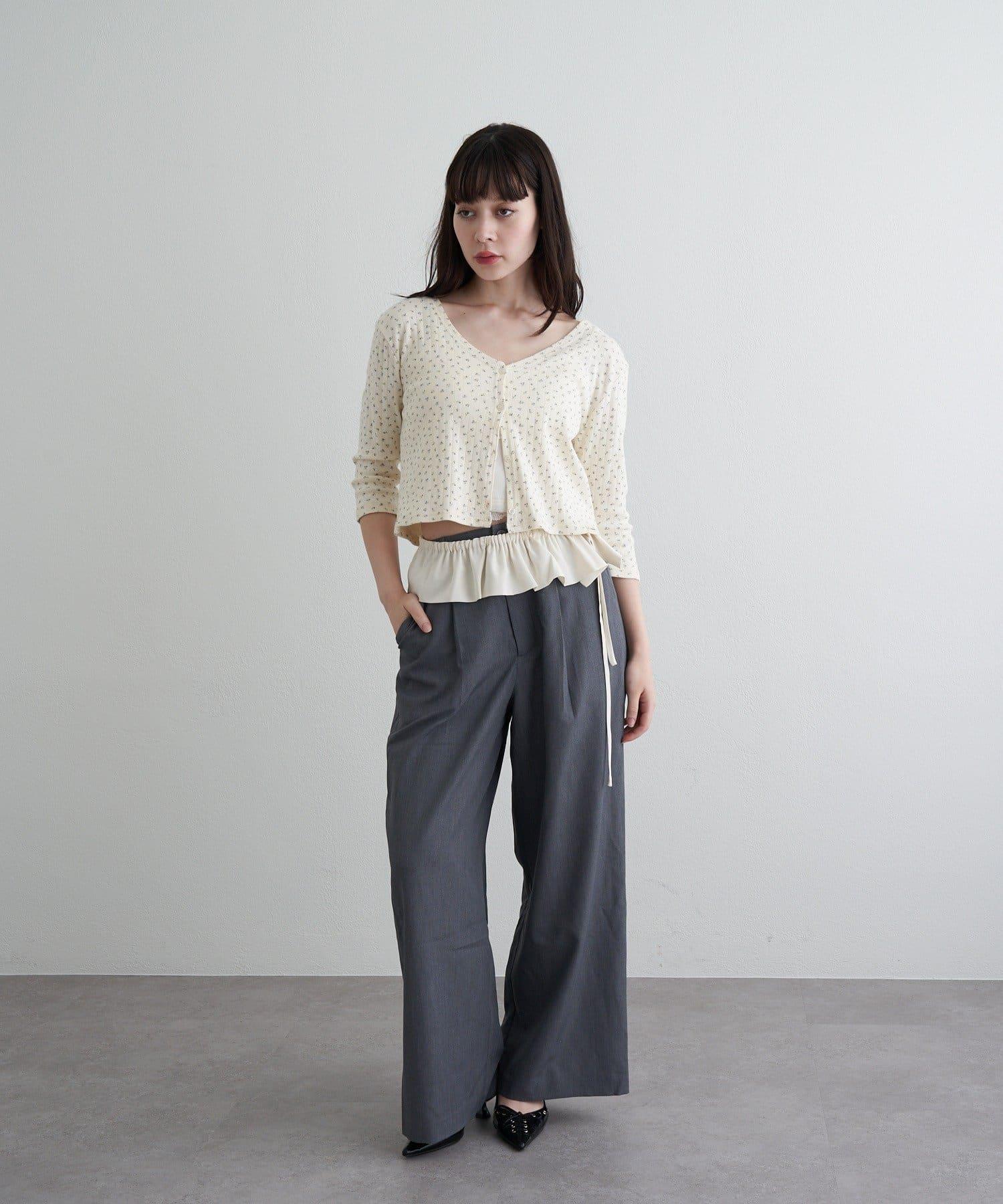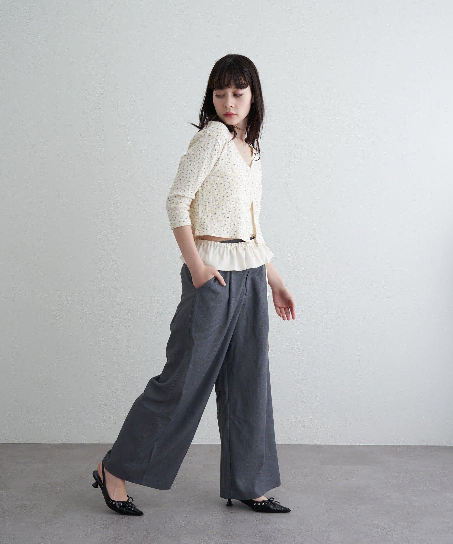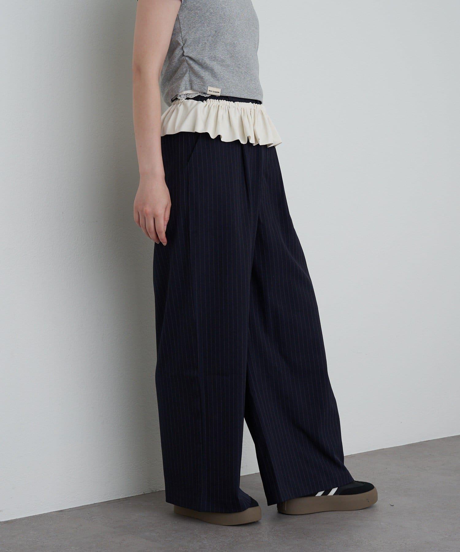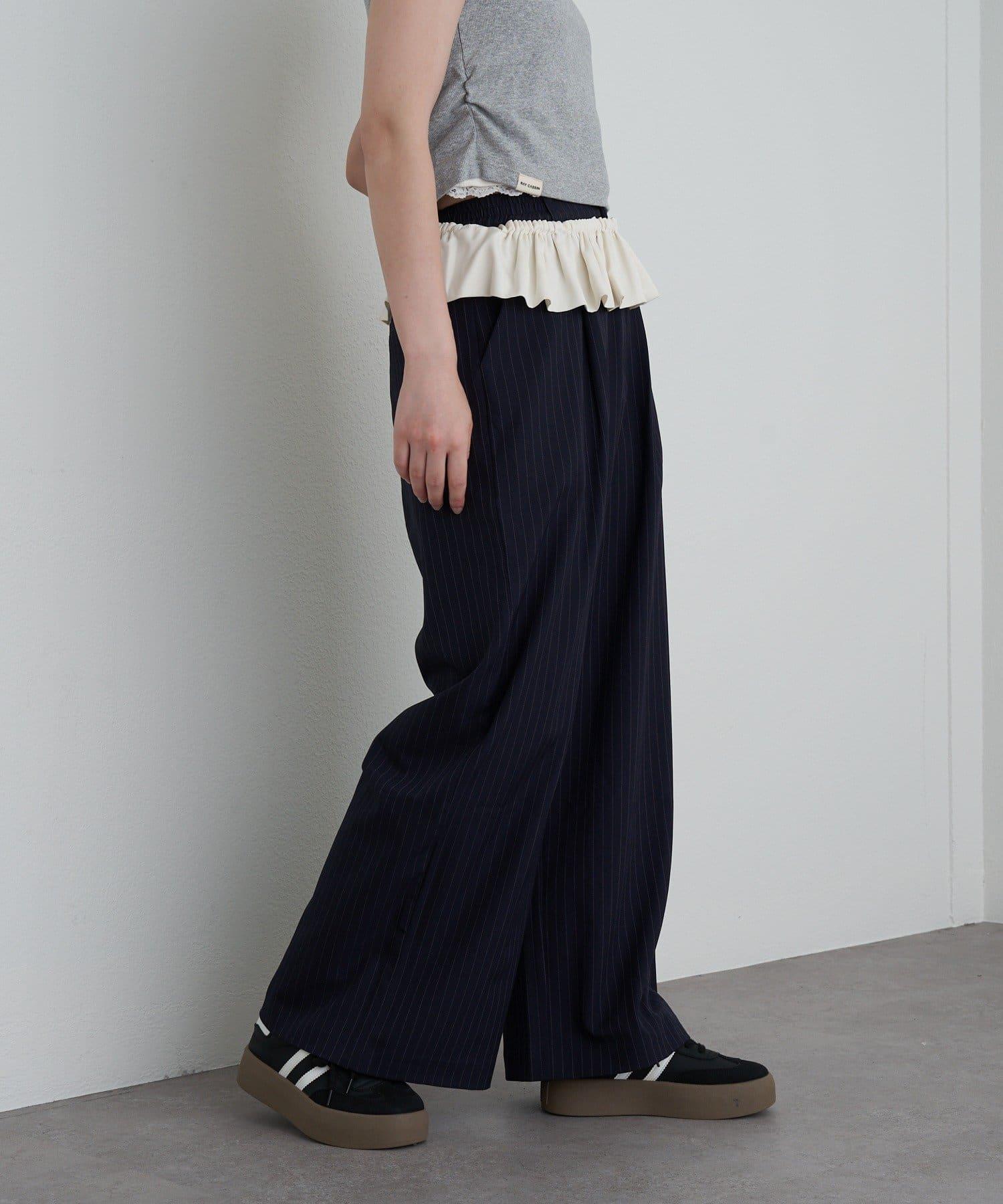【RAY CASSIN】帶荷葉邊腰帶寬鬆休閒長褲
