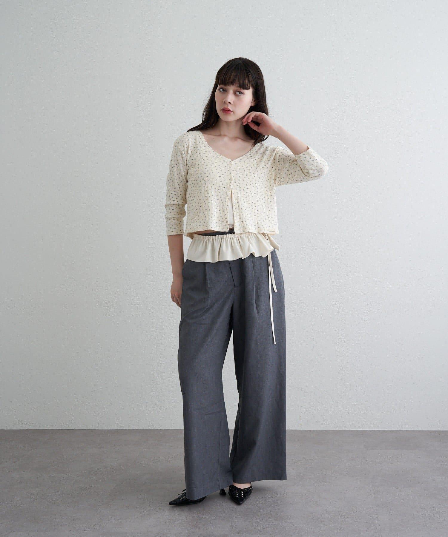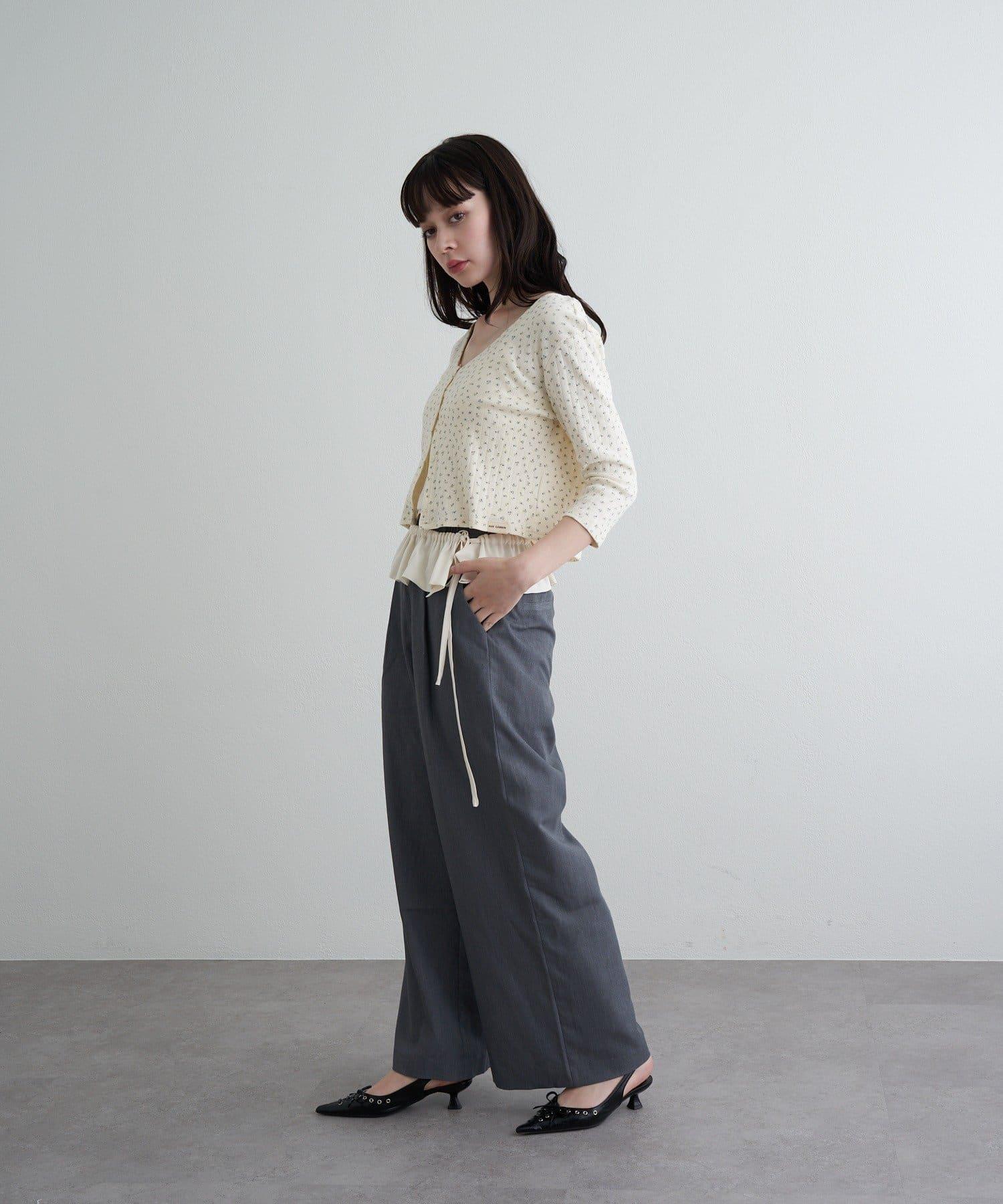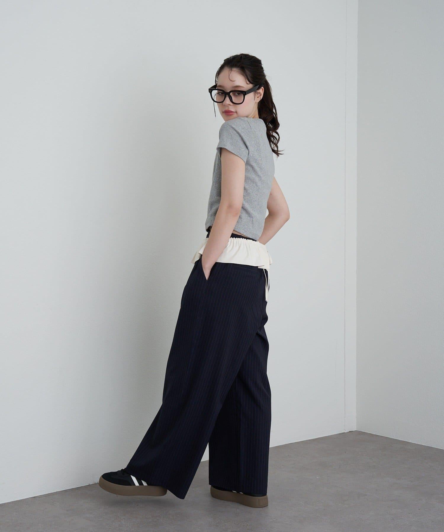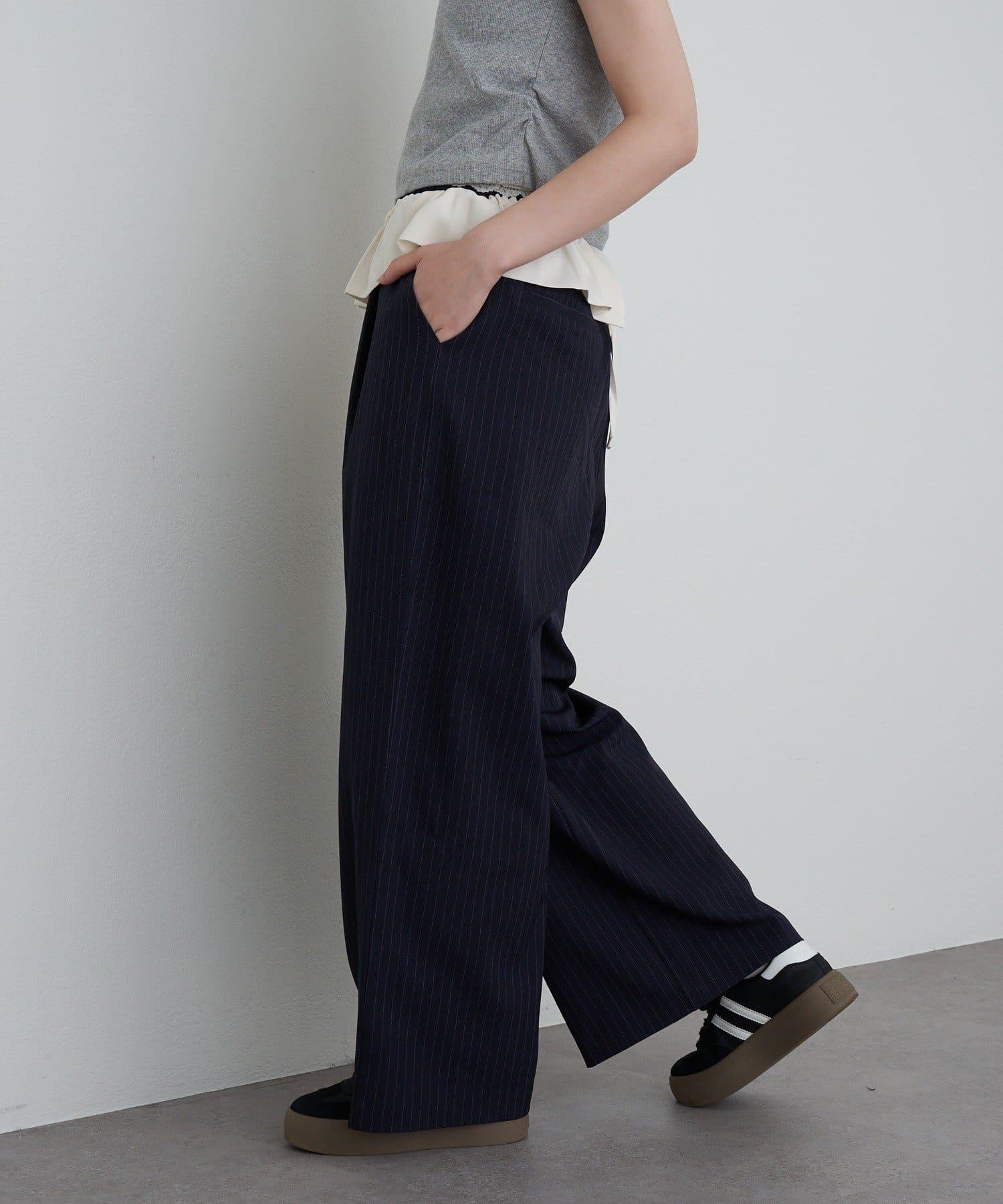 【RAY CASSIN】帶荷葉邊腰帶寬鬆休閒長褲