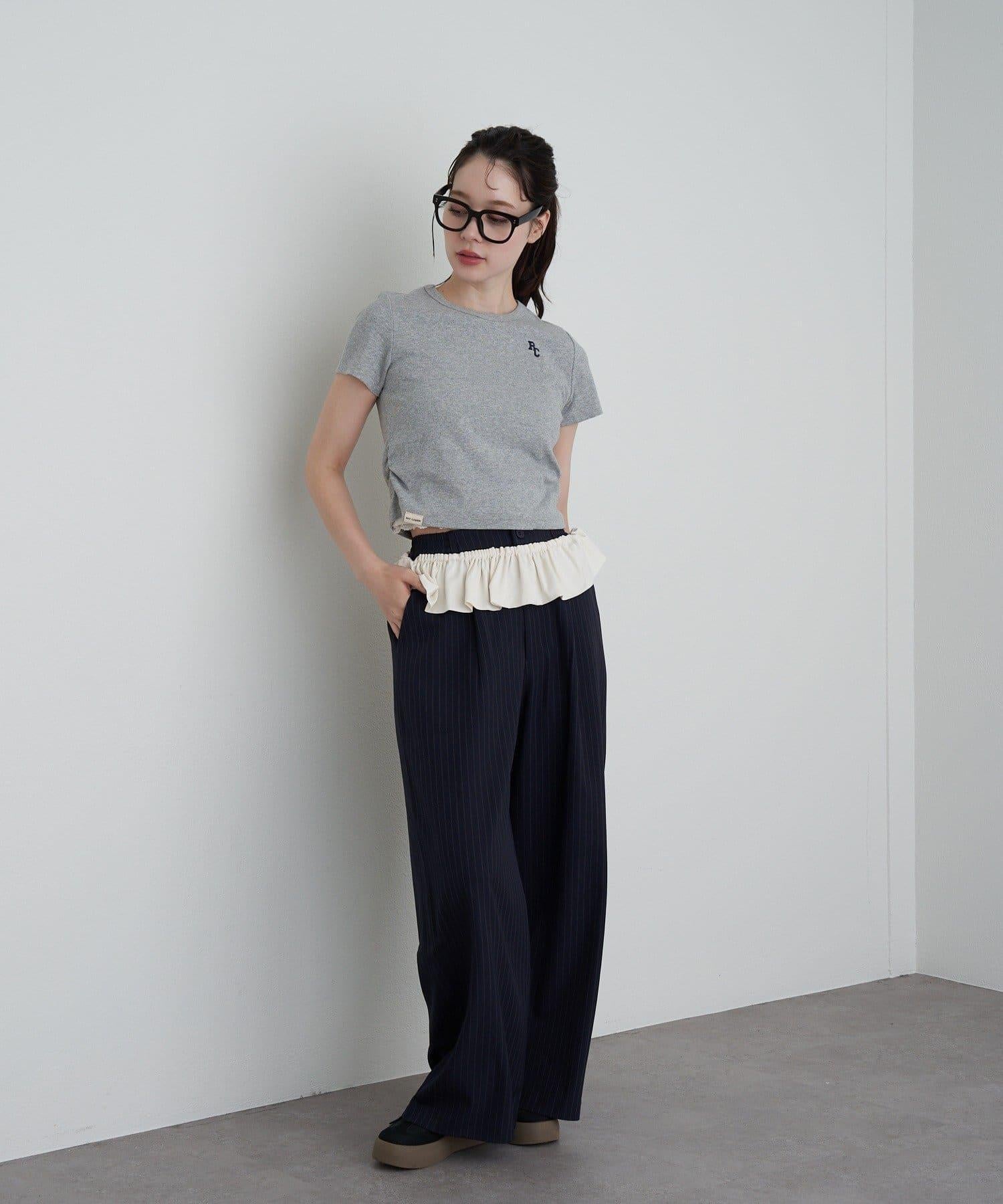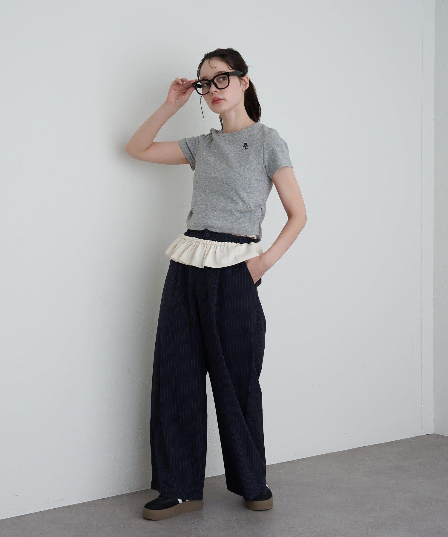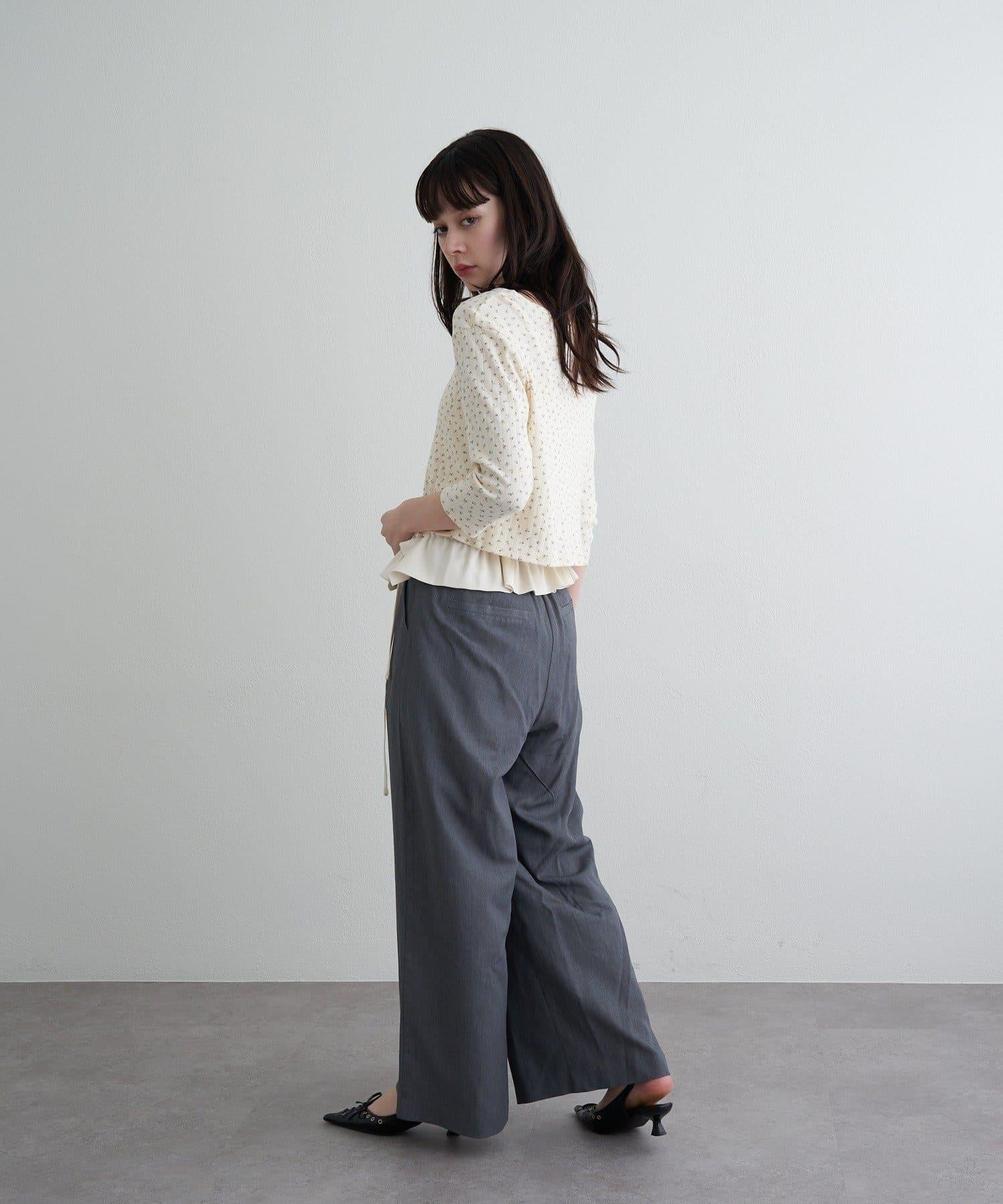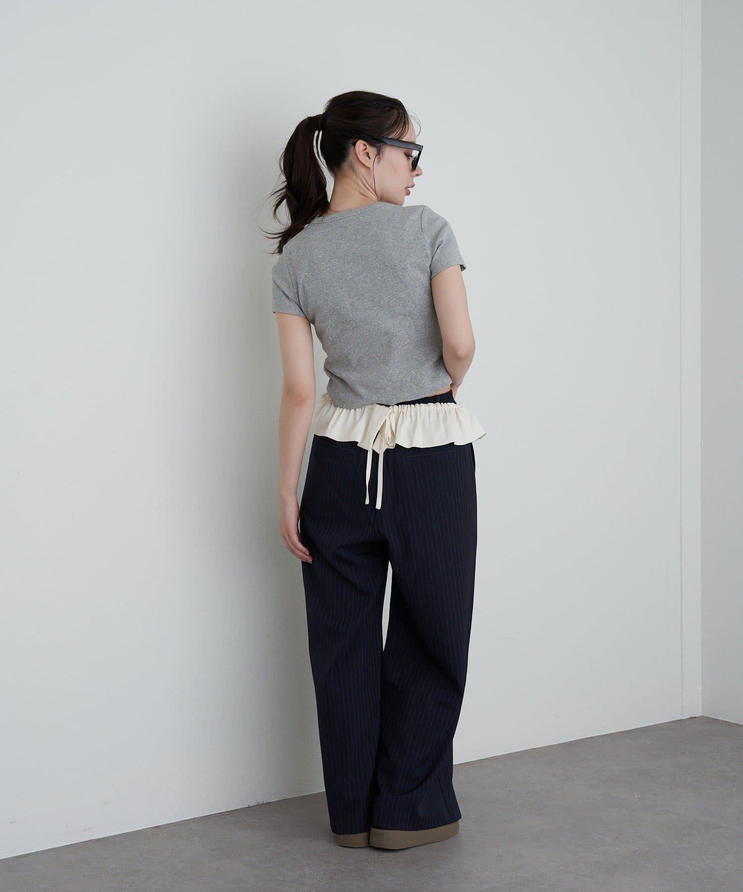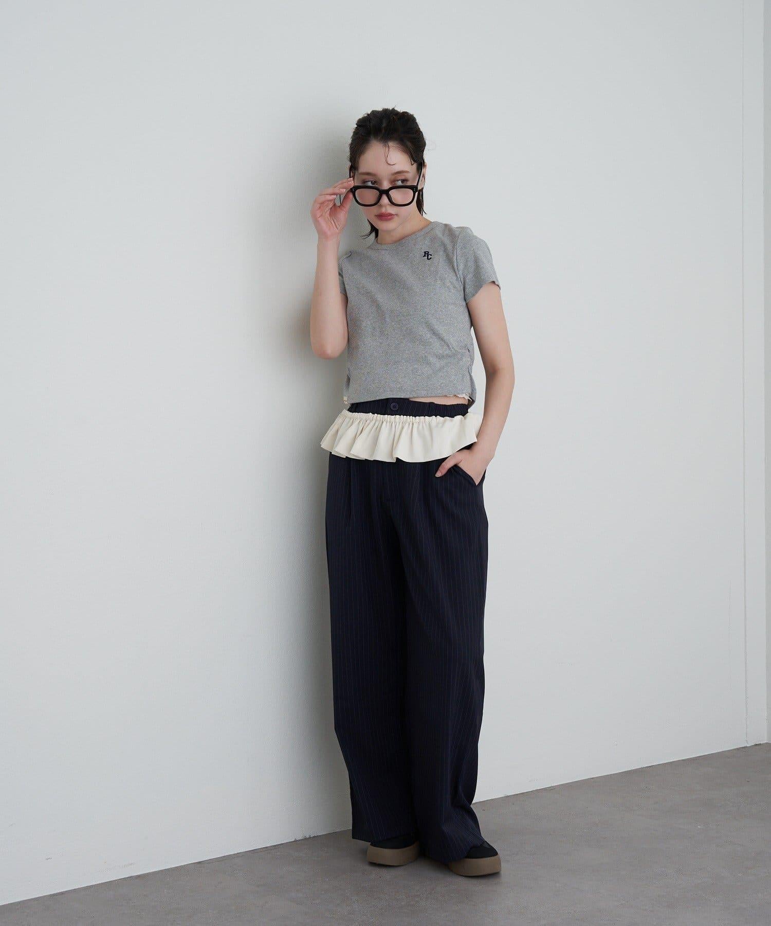 【RAY CASSIN】帶荷葉邊腰帶寬鬆休閒長褲