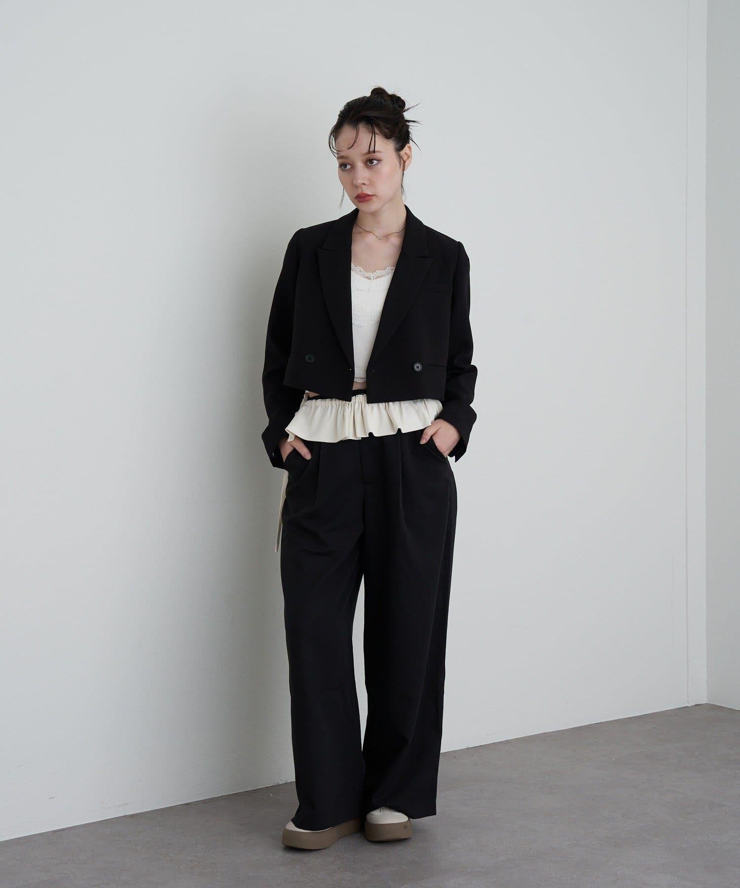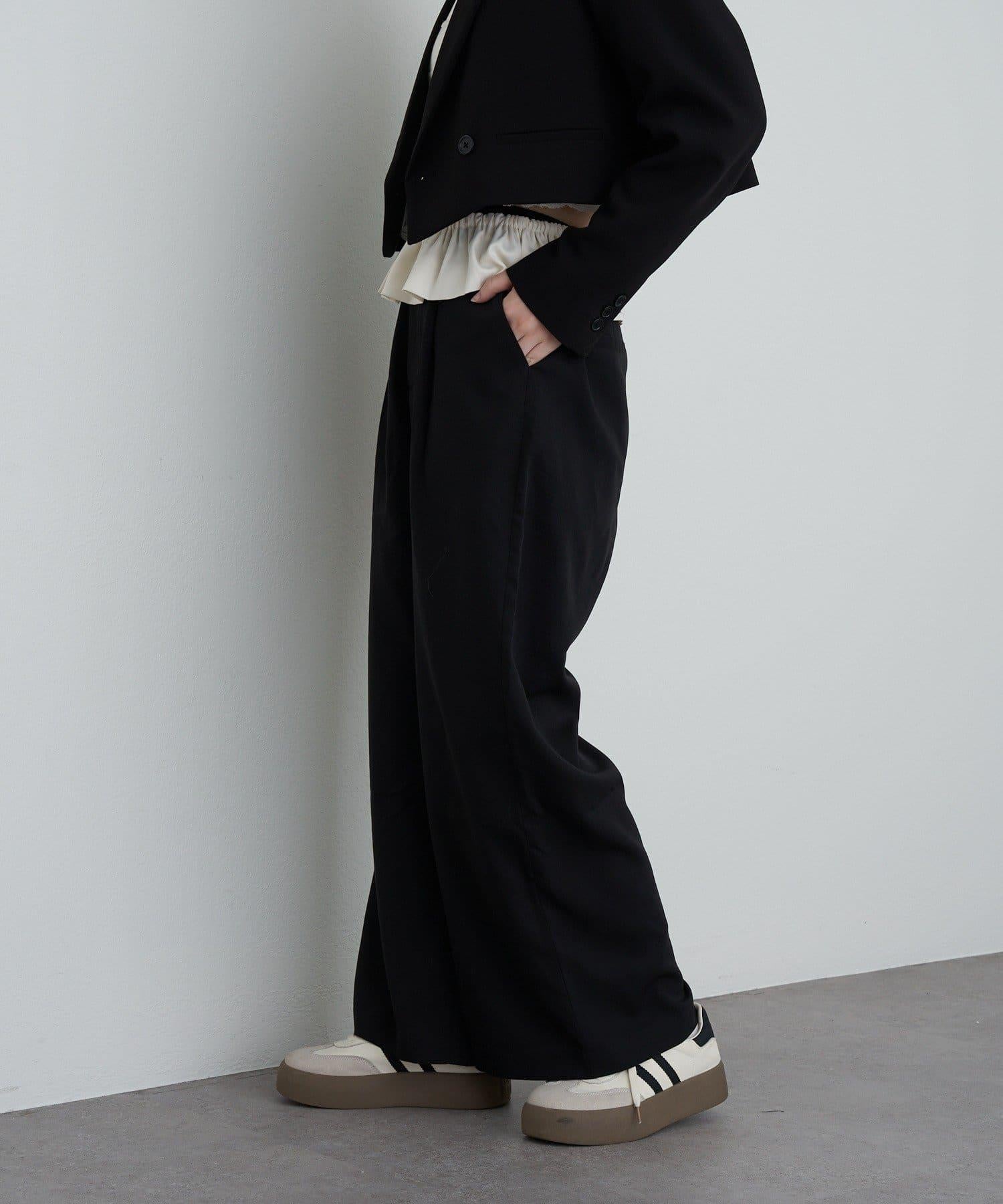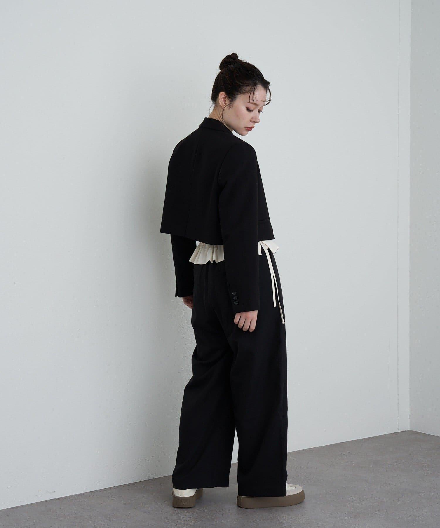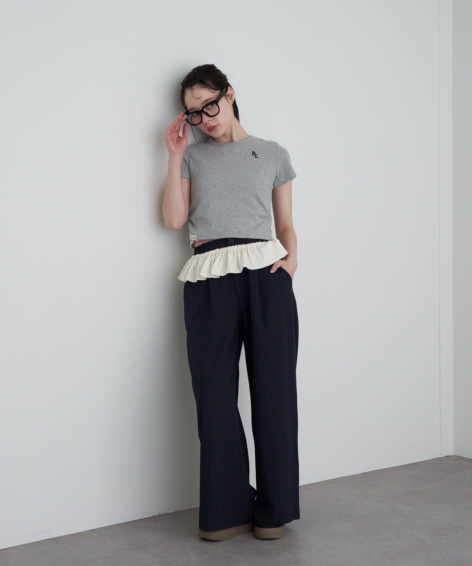【RAY CASSIN】帶荷葉邊腰帶寬鬆休閒長褲