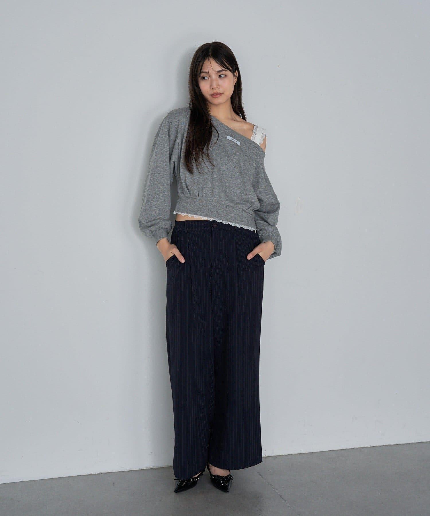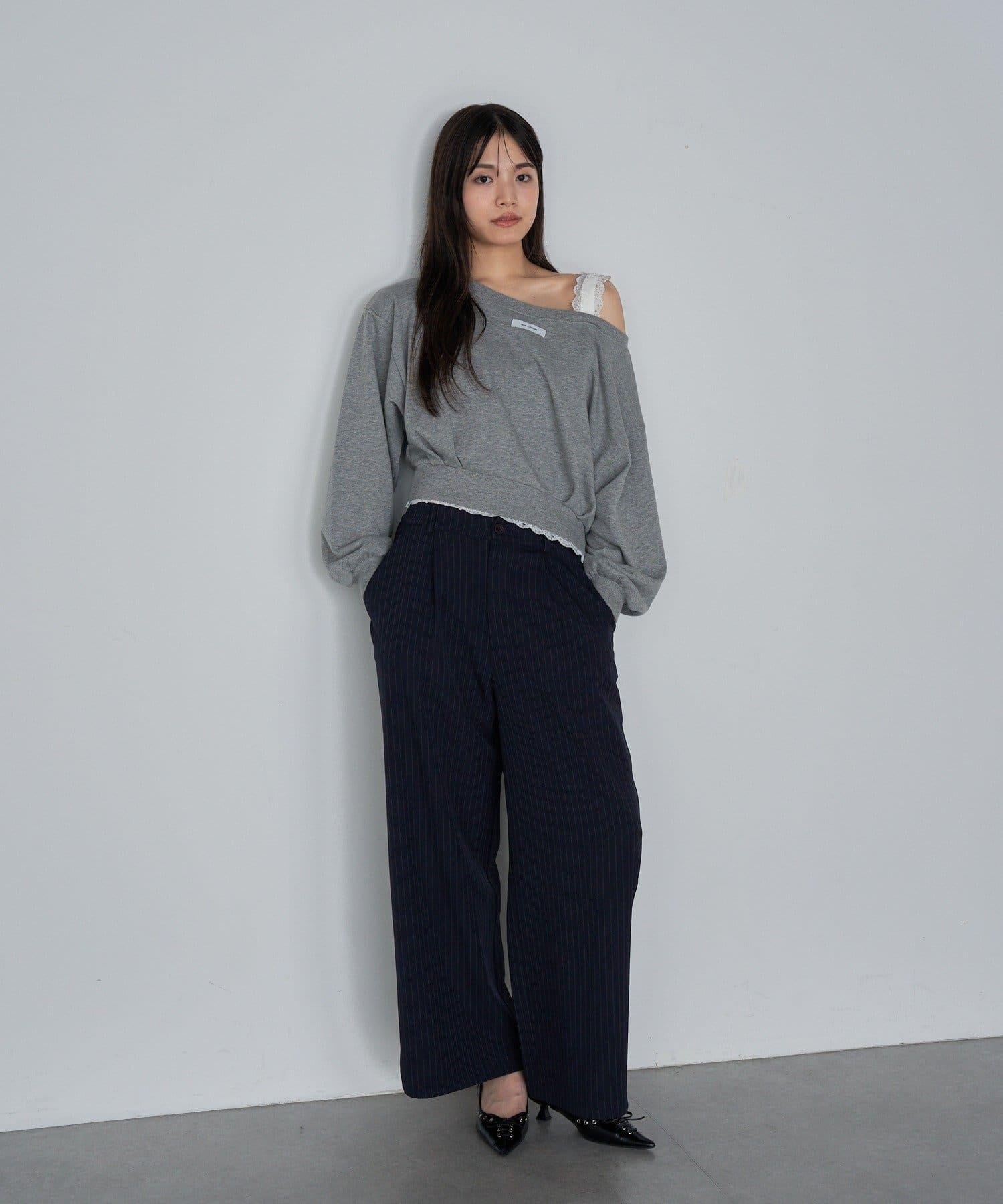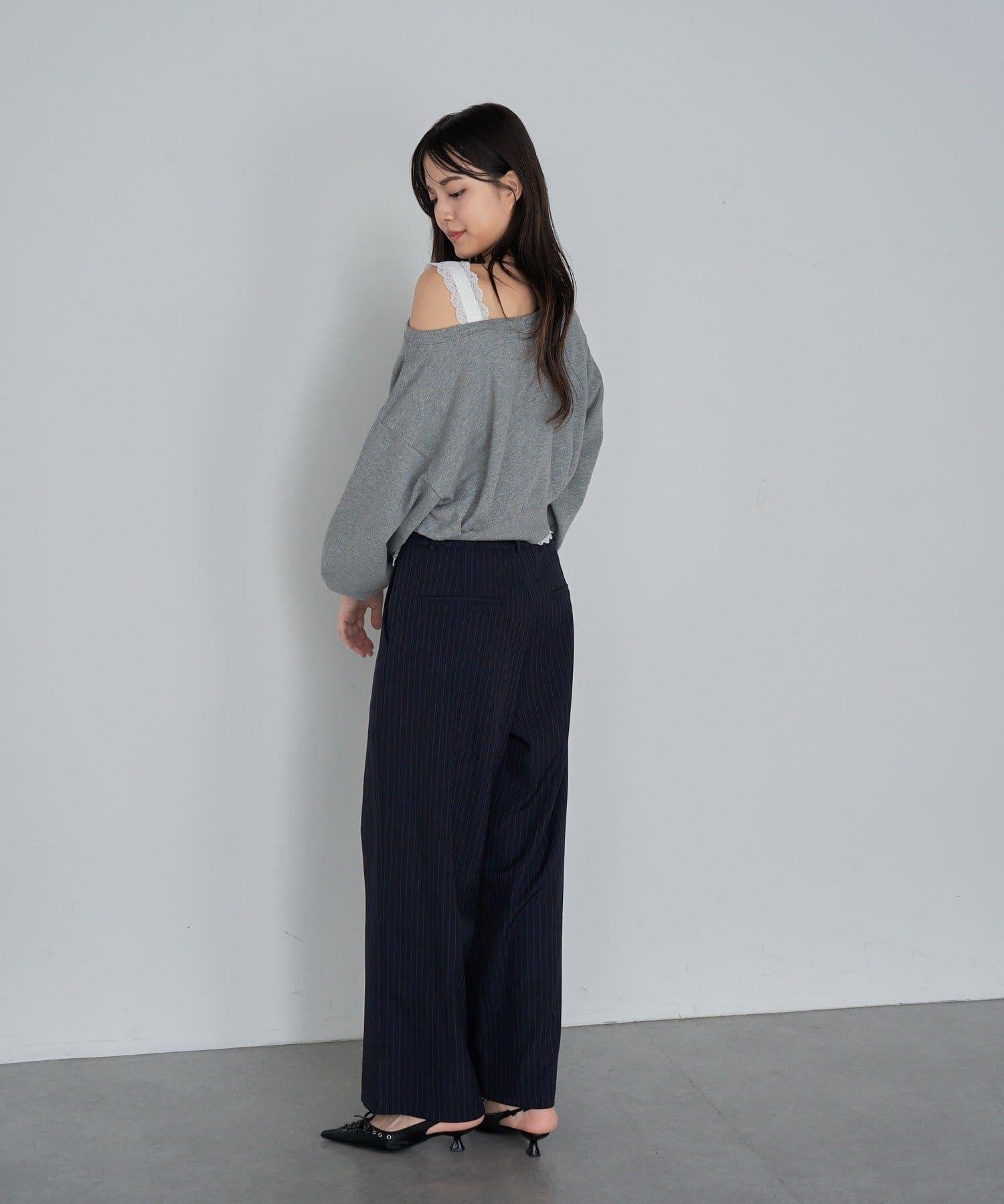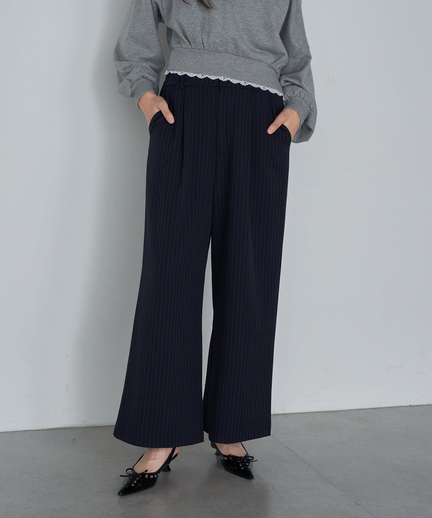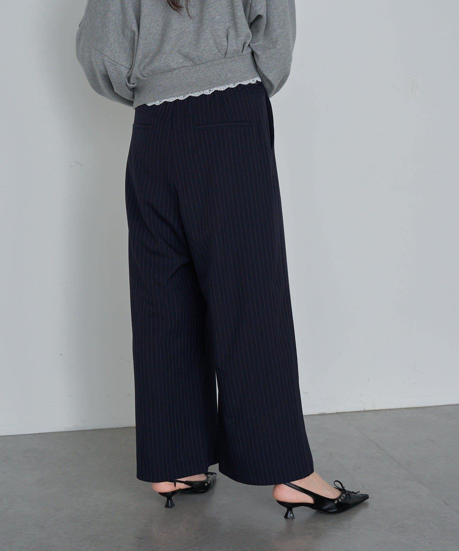 【RAY CASSIN】帶荷葉邊腰帶寬鬆休閒長褲