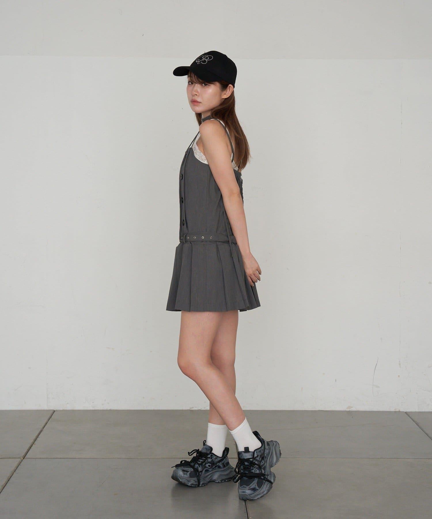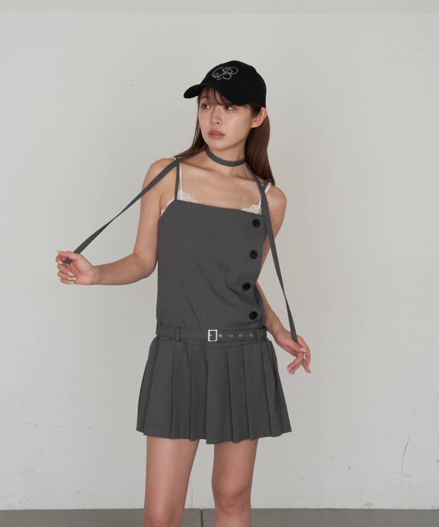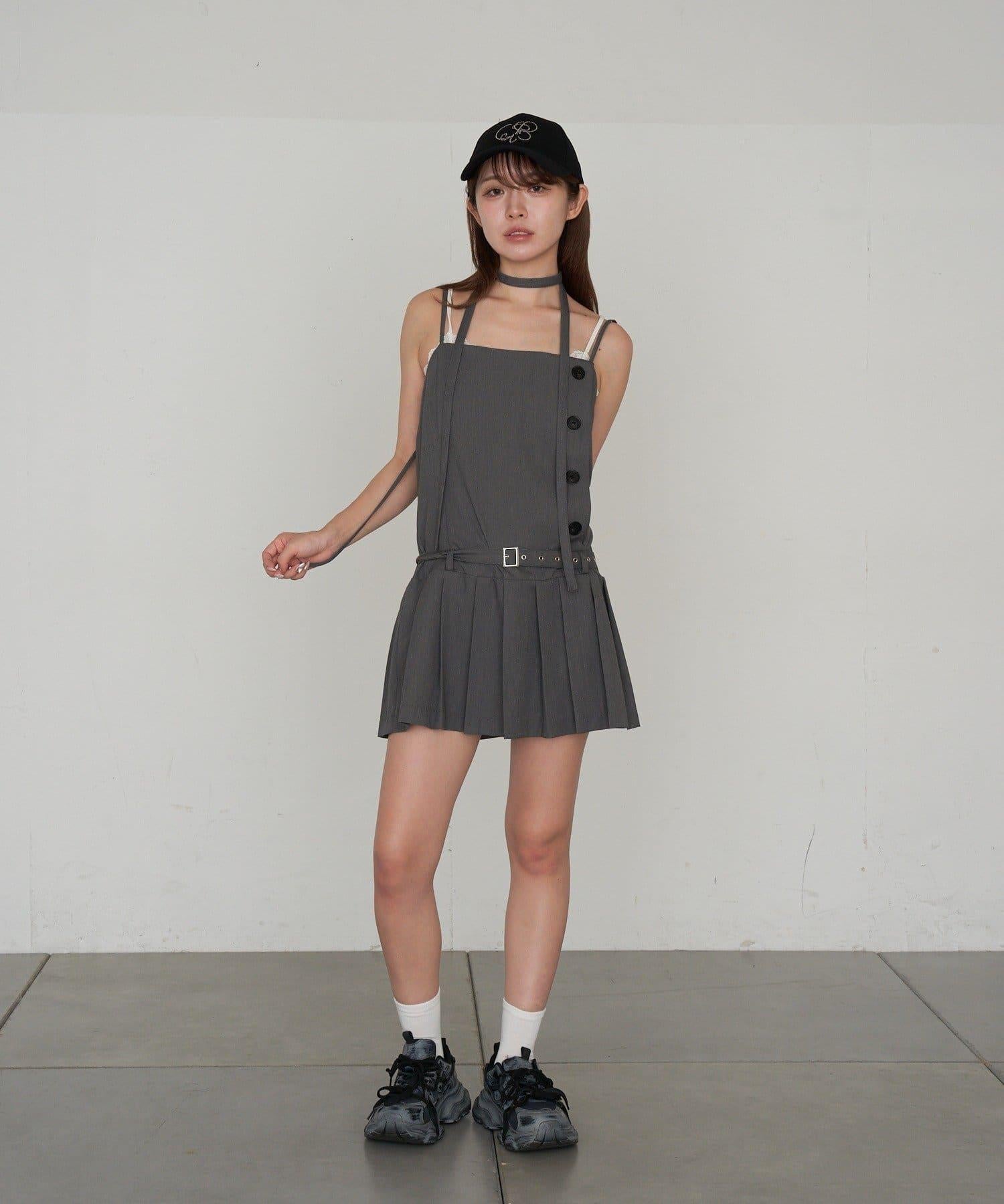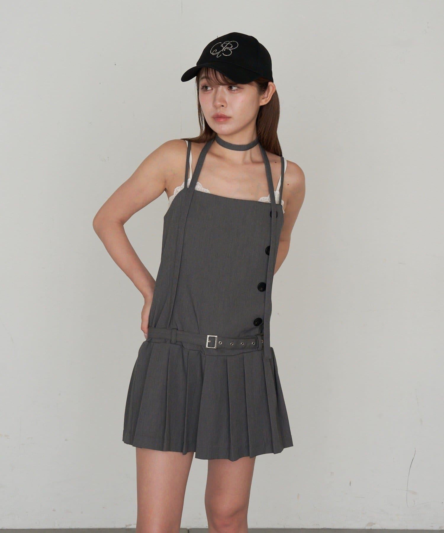 RAY CASSIN 按扣設計 百褶 吊帶迷你連衣裙