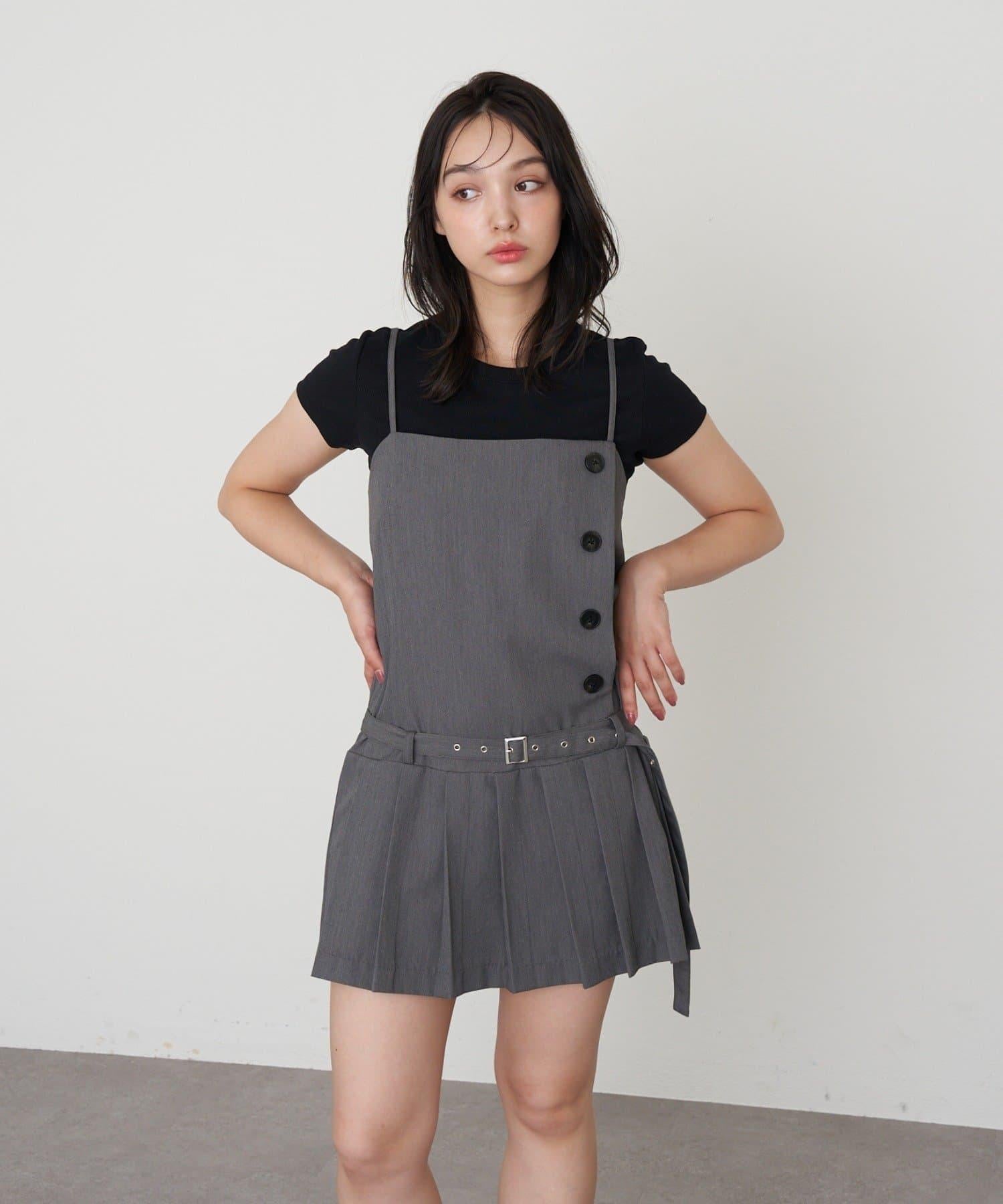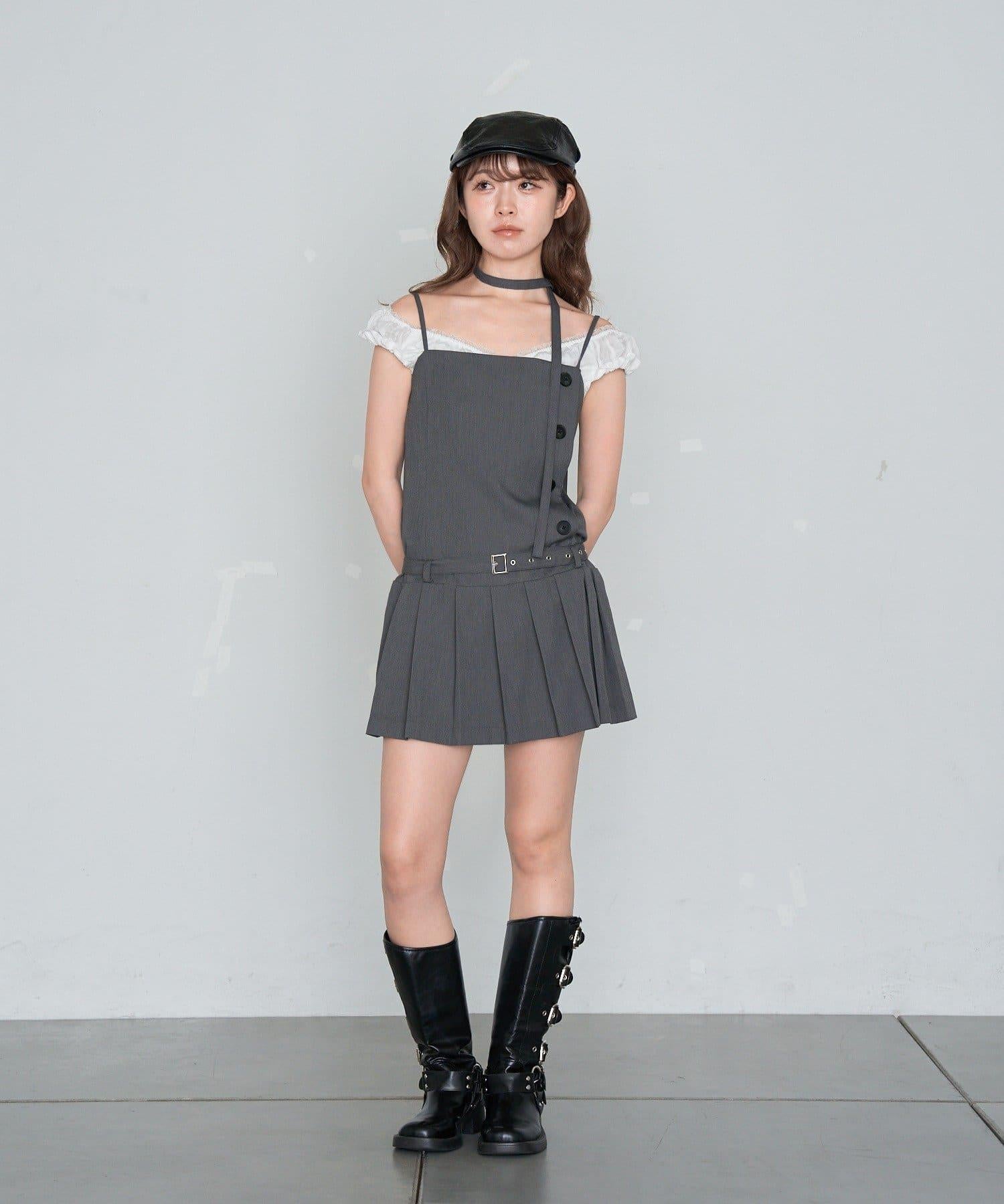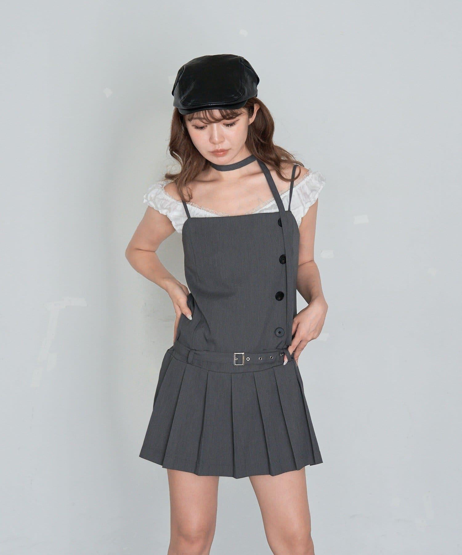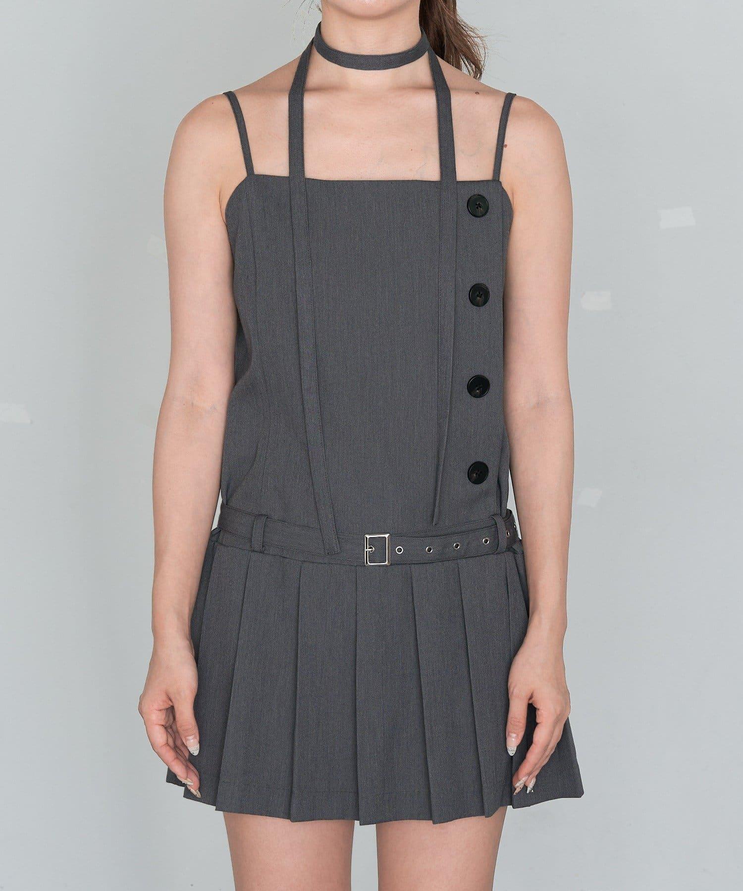RAY CASSIN 按扣設計 百褶 吊帶迷你連衣裙