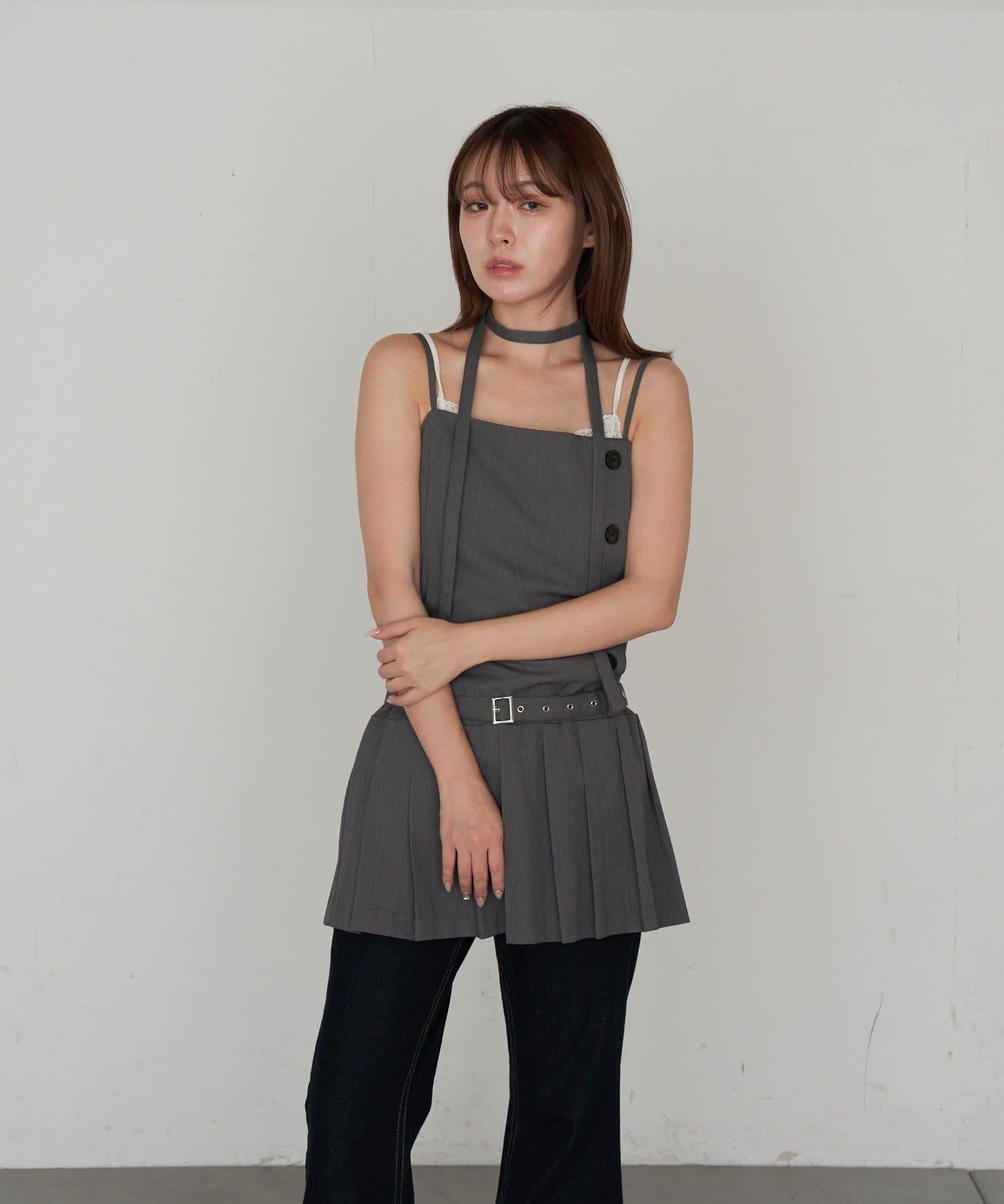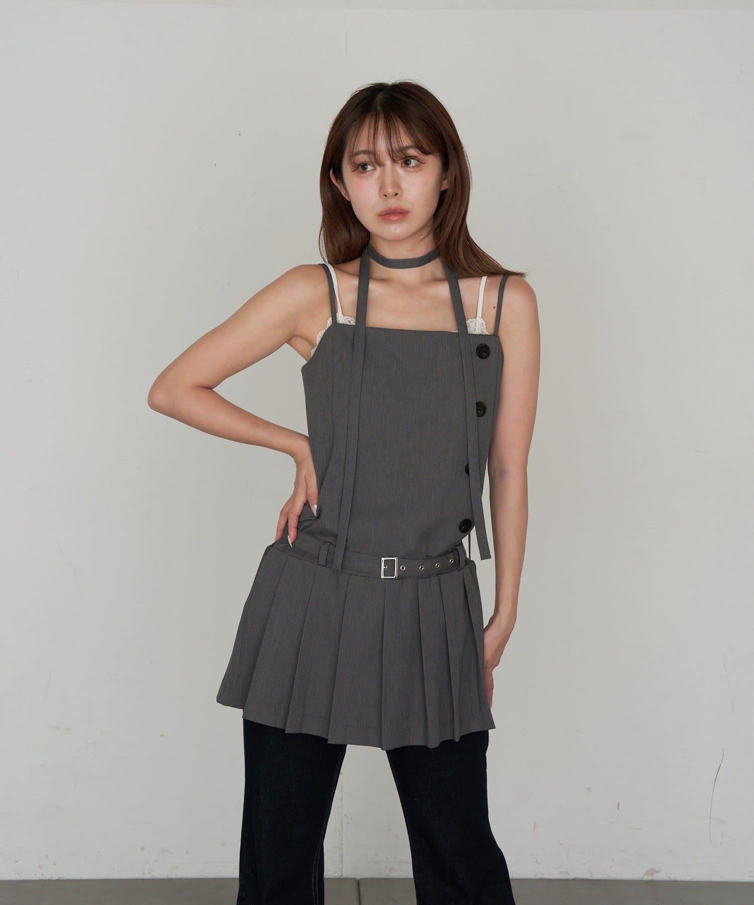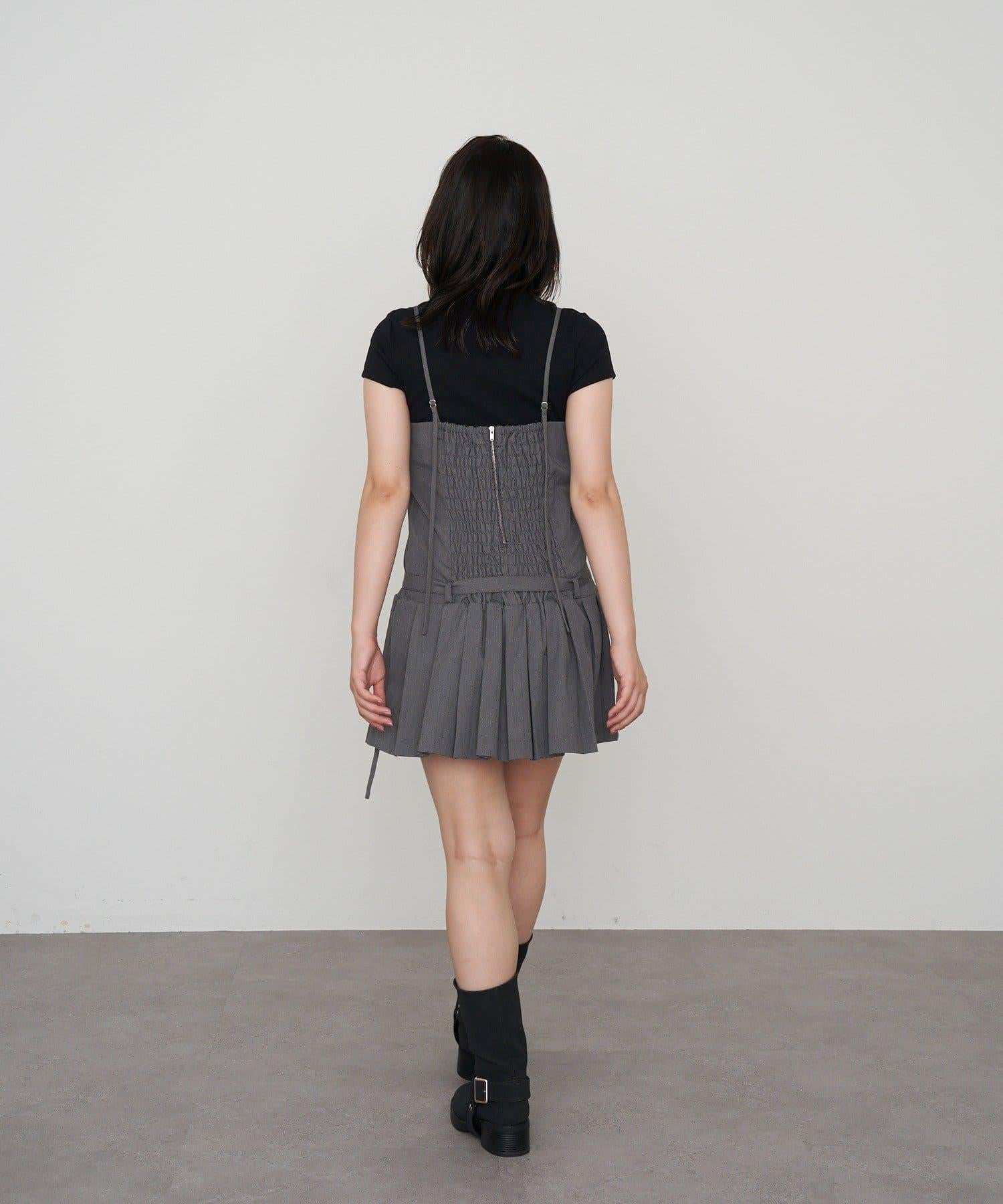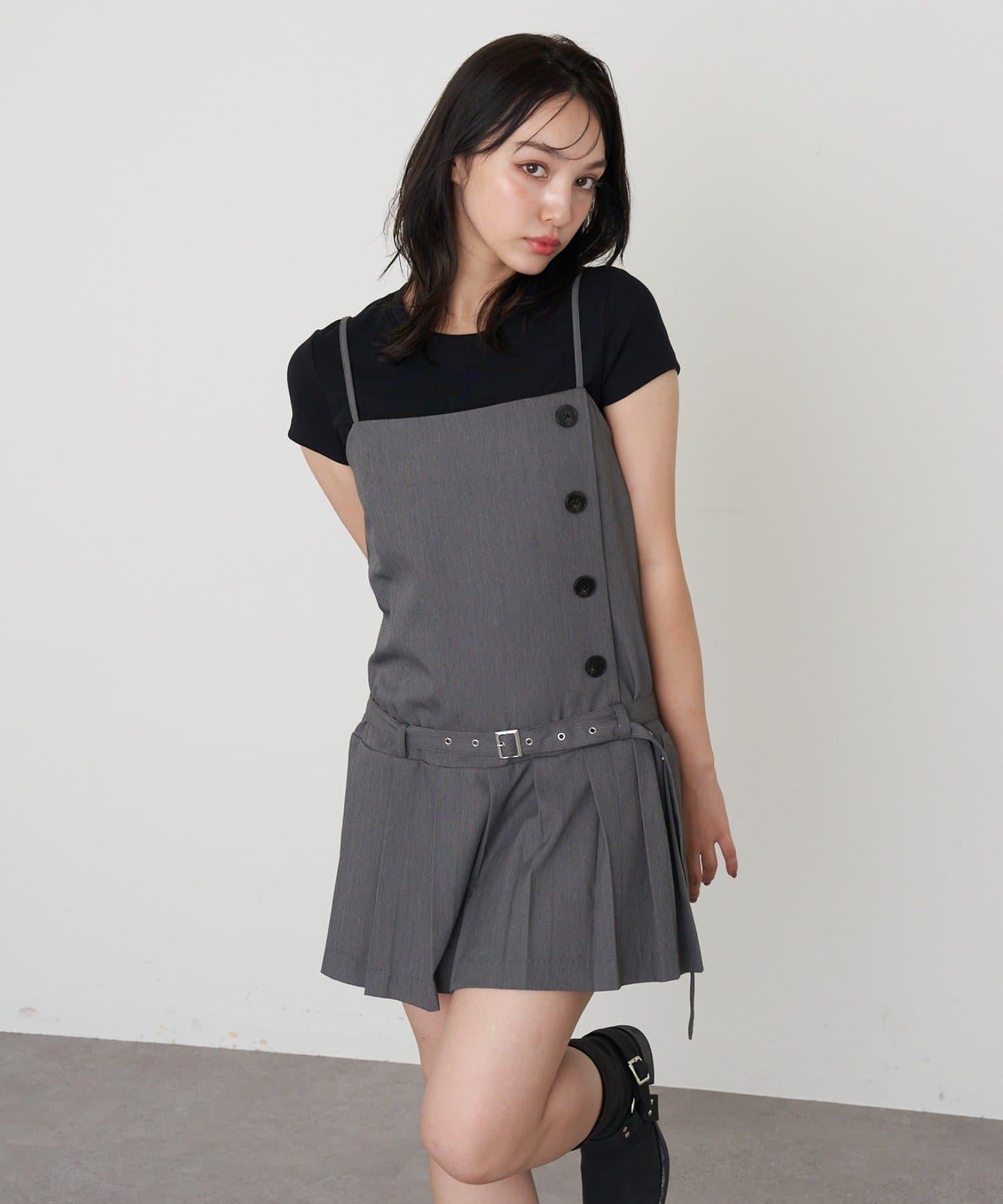 RAY CASSIN 按扣設計 百褶 吊帶迷你連衣裙