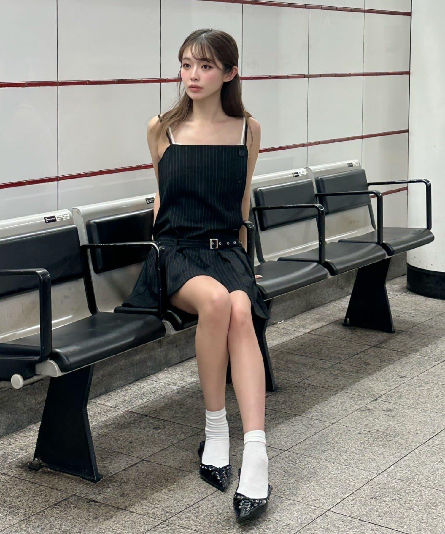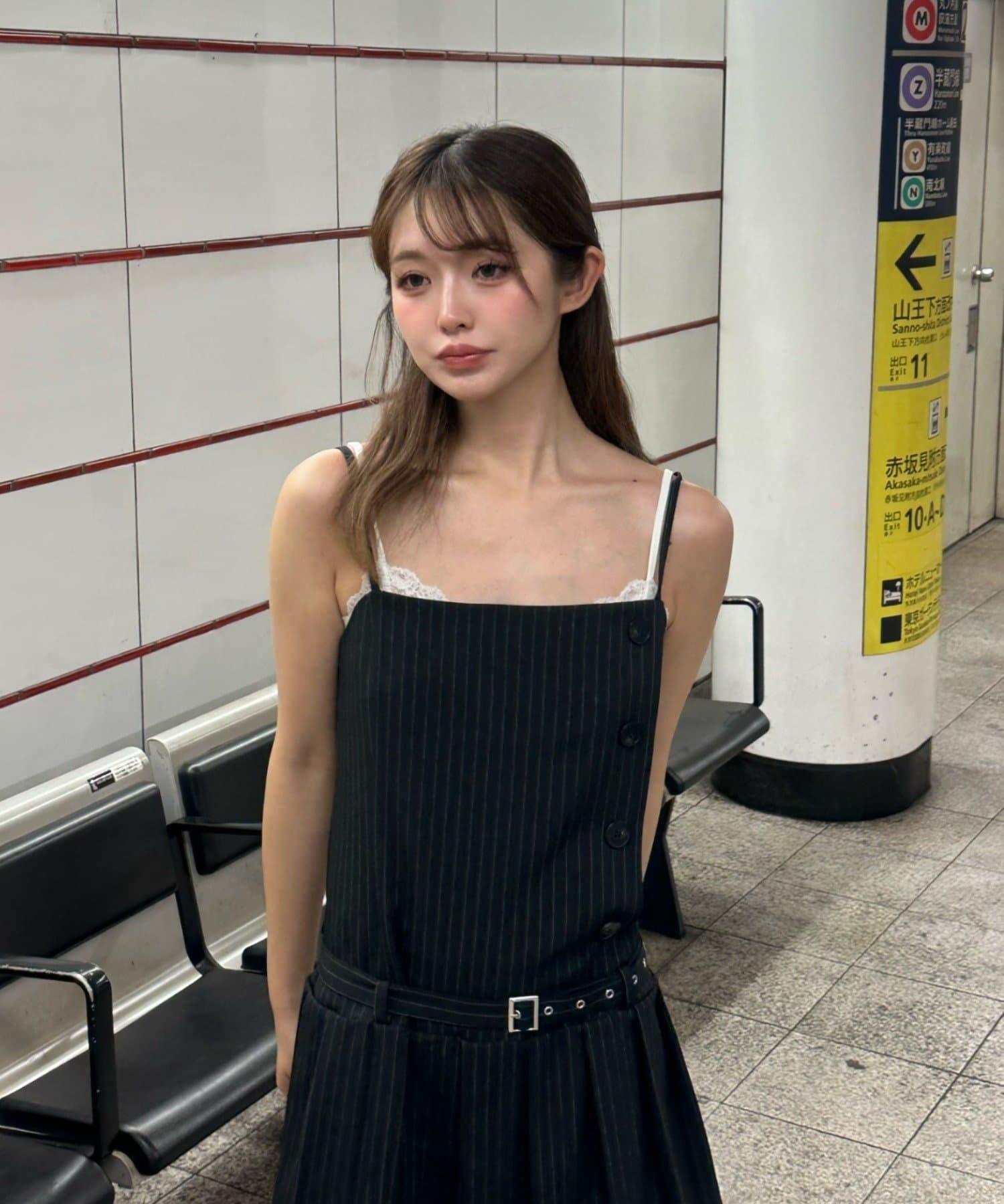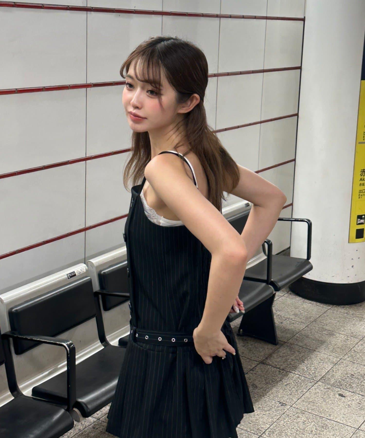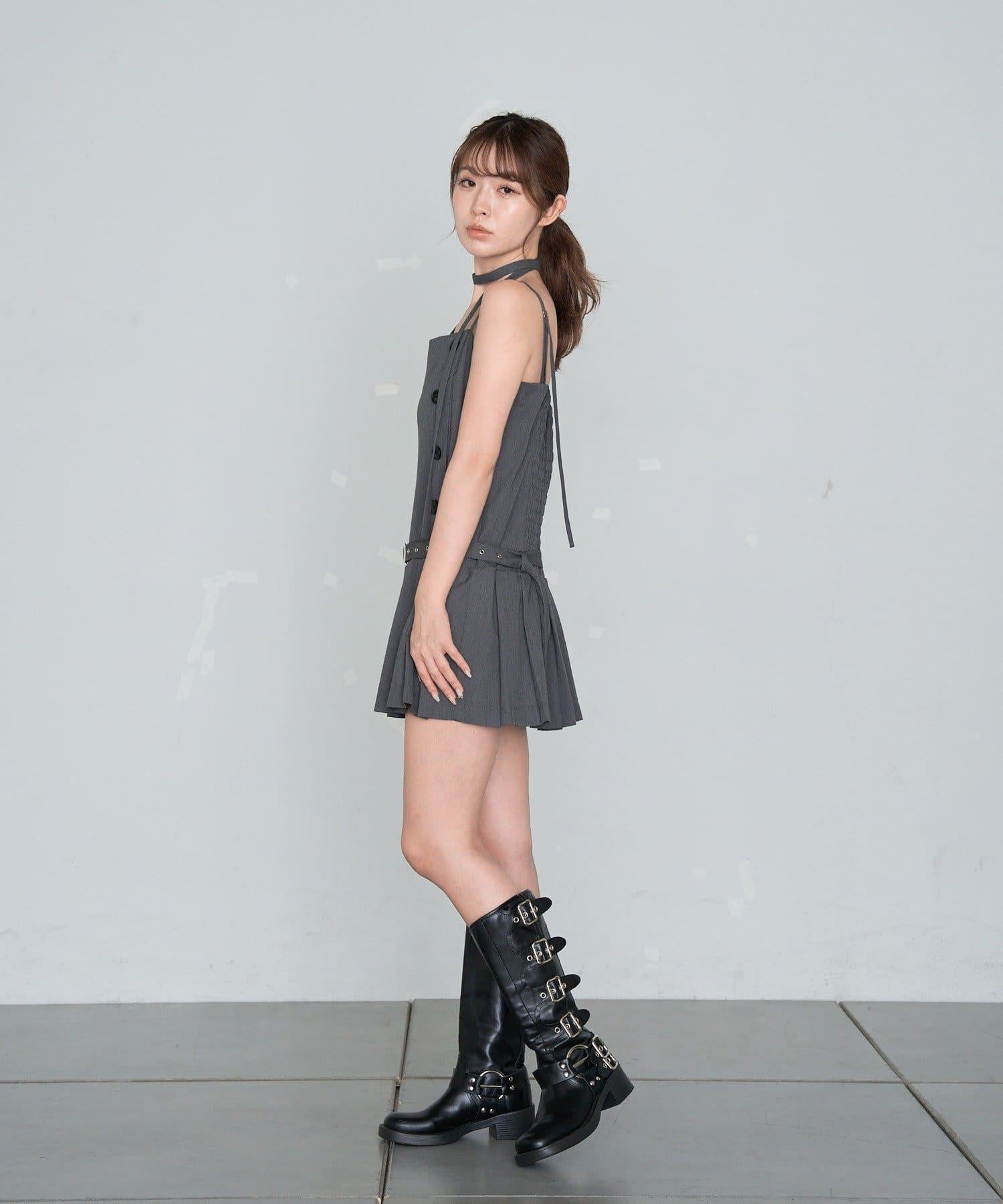 RAY CASSIN 按扣設計 百褶 吊帶迷你連衣裙