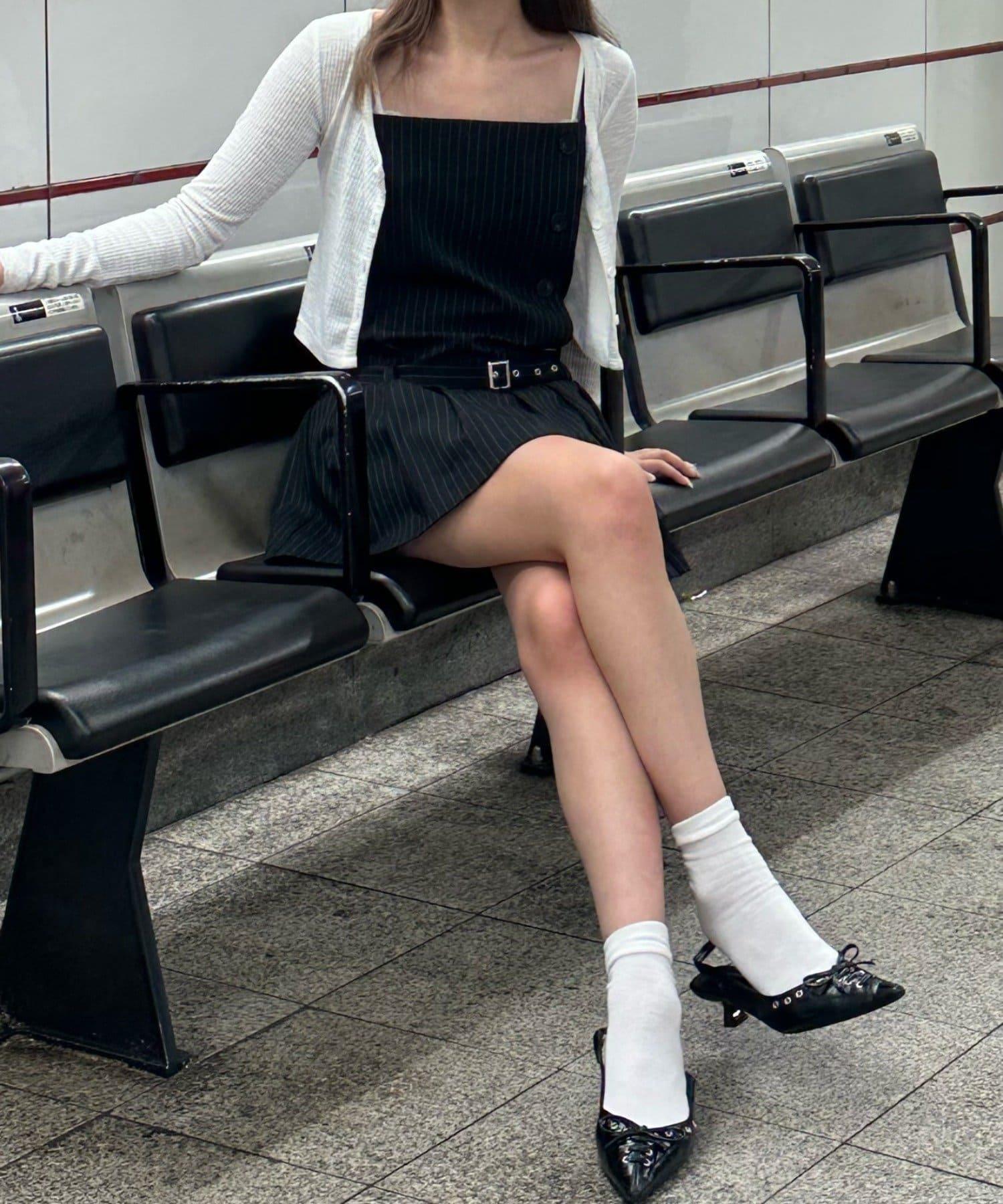 紐扣 / 迷你裙 / 韓版 / 條紋