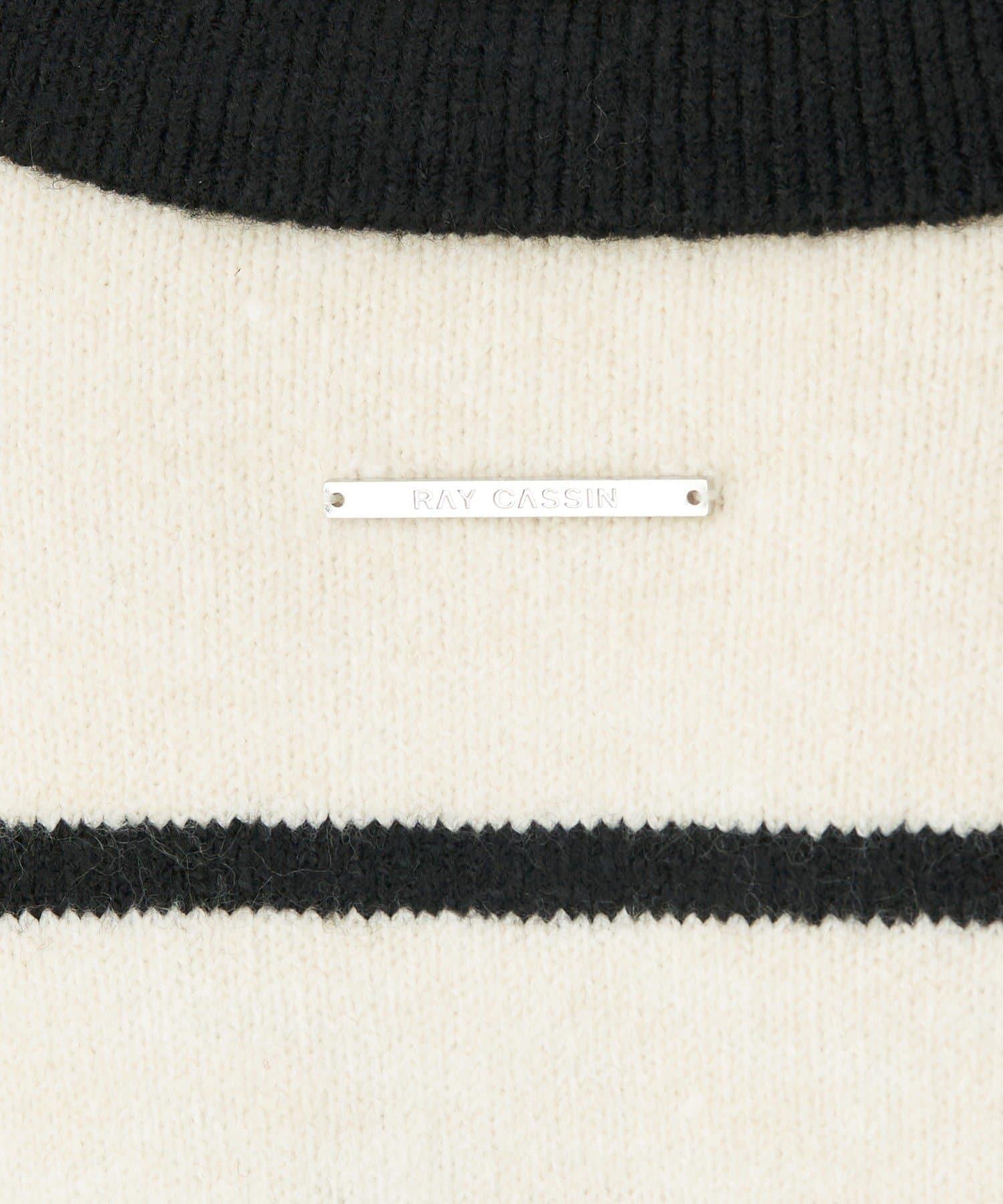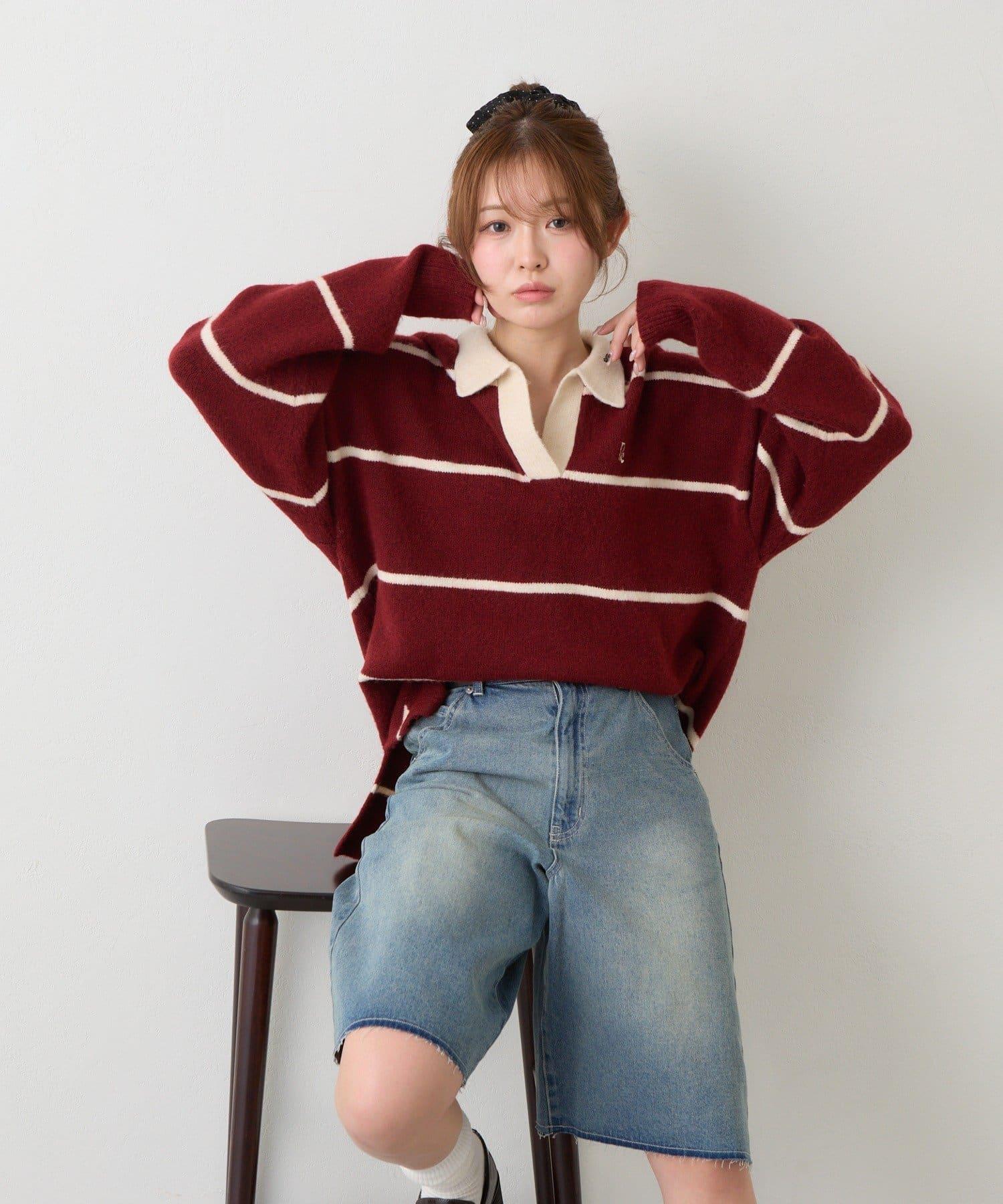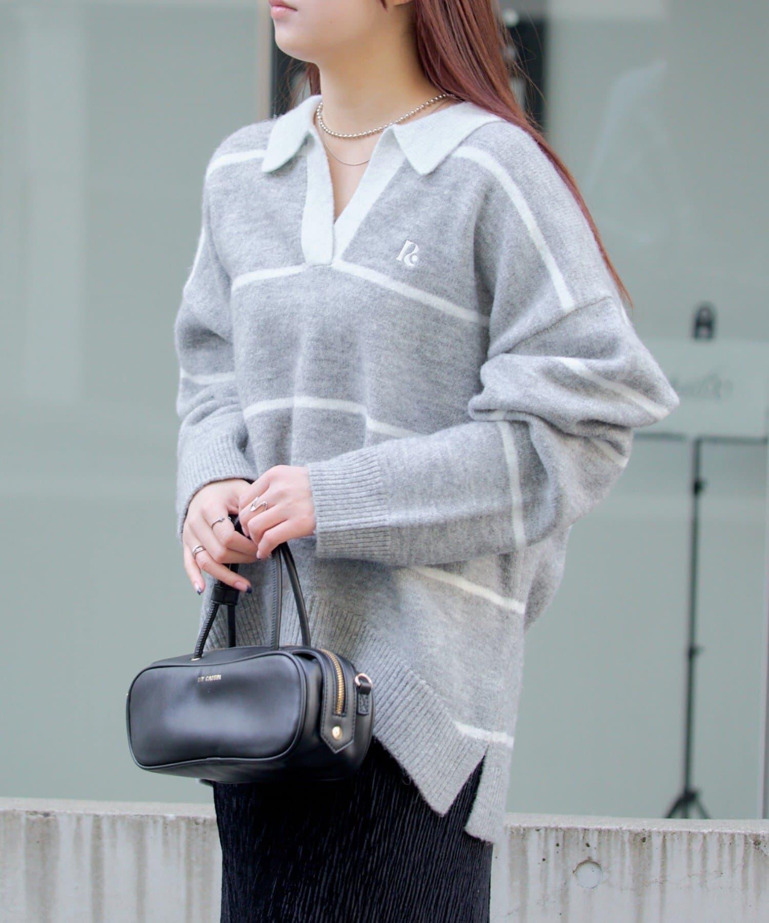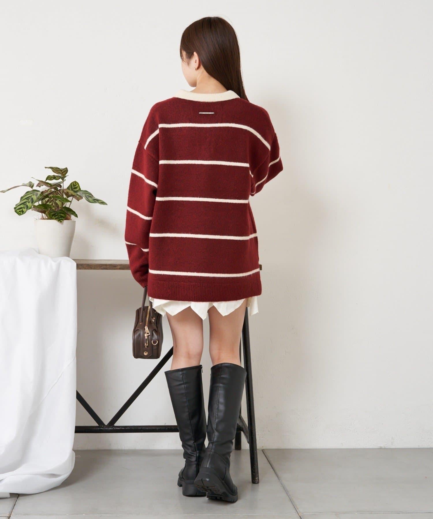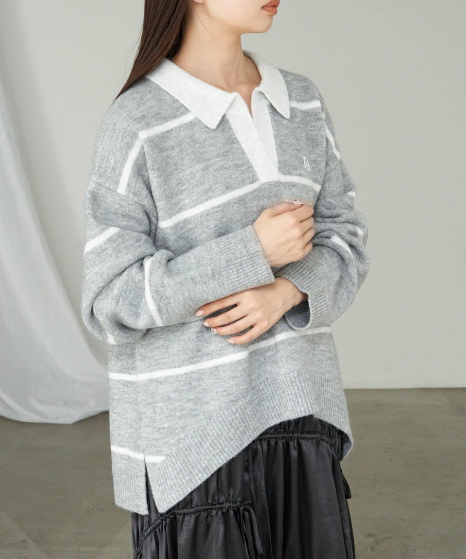 【RAY CASSIN】條紋V領POLO刺繡針織衫 / 翻領針織衫