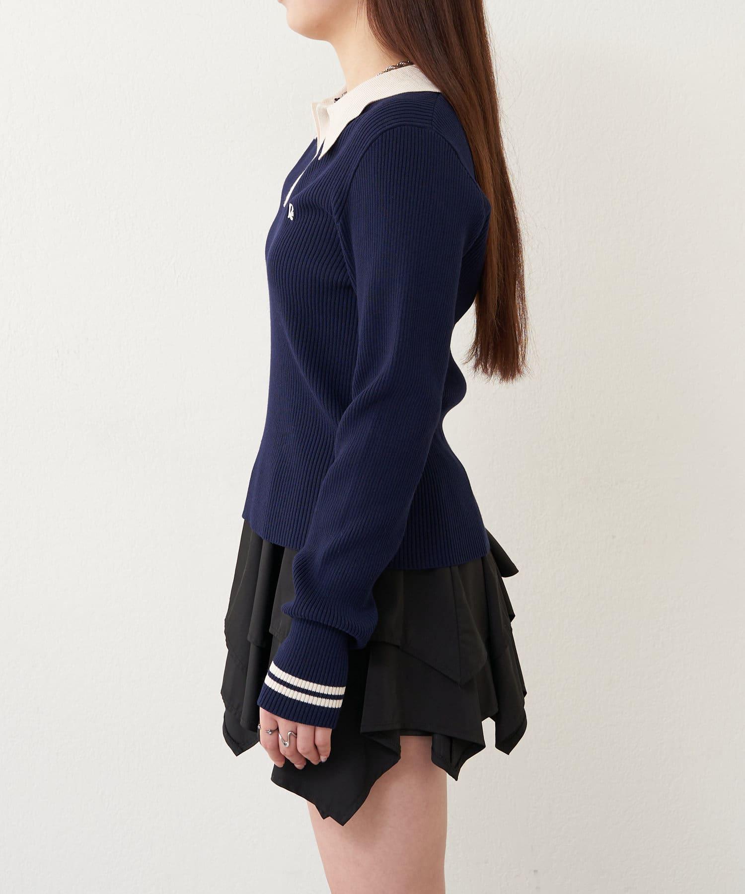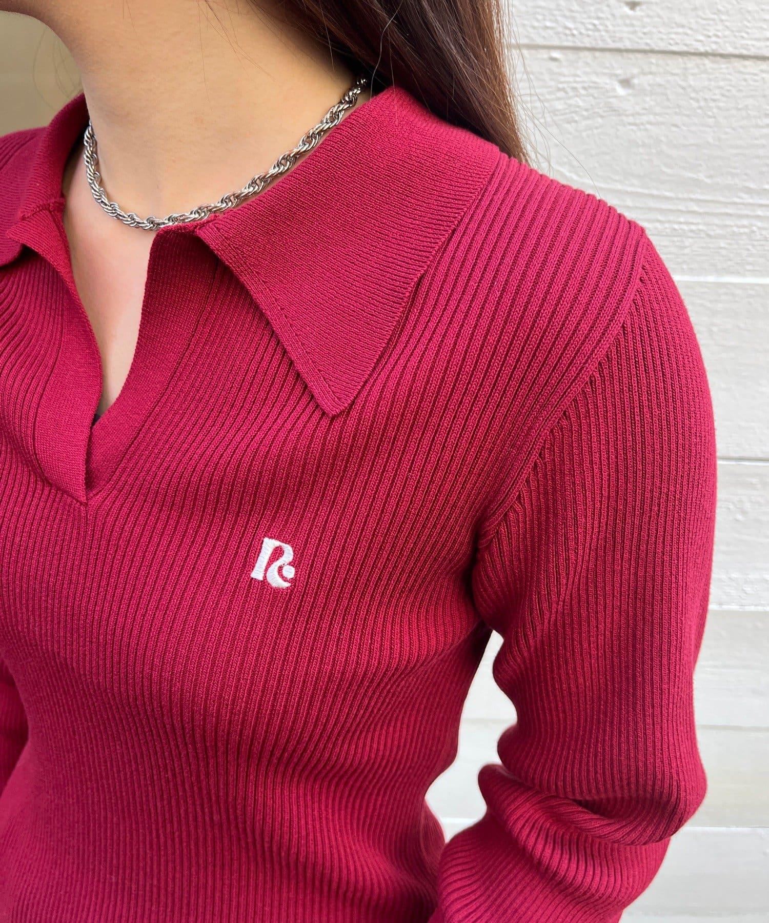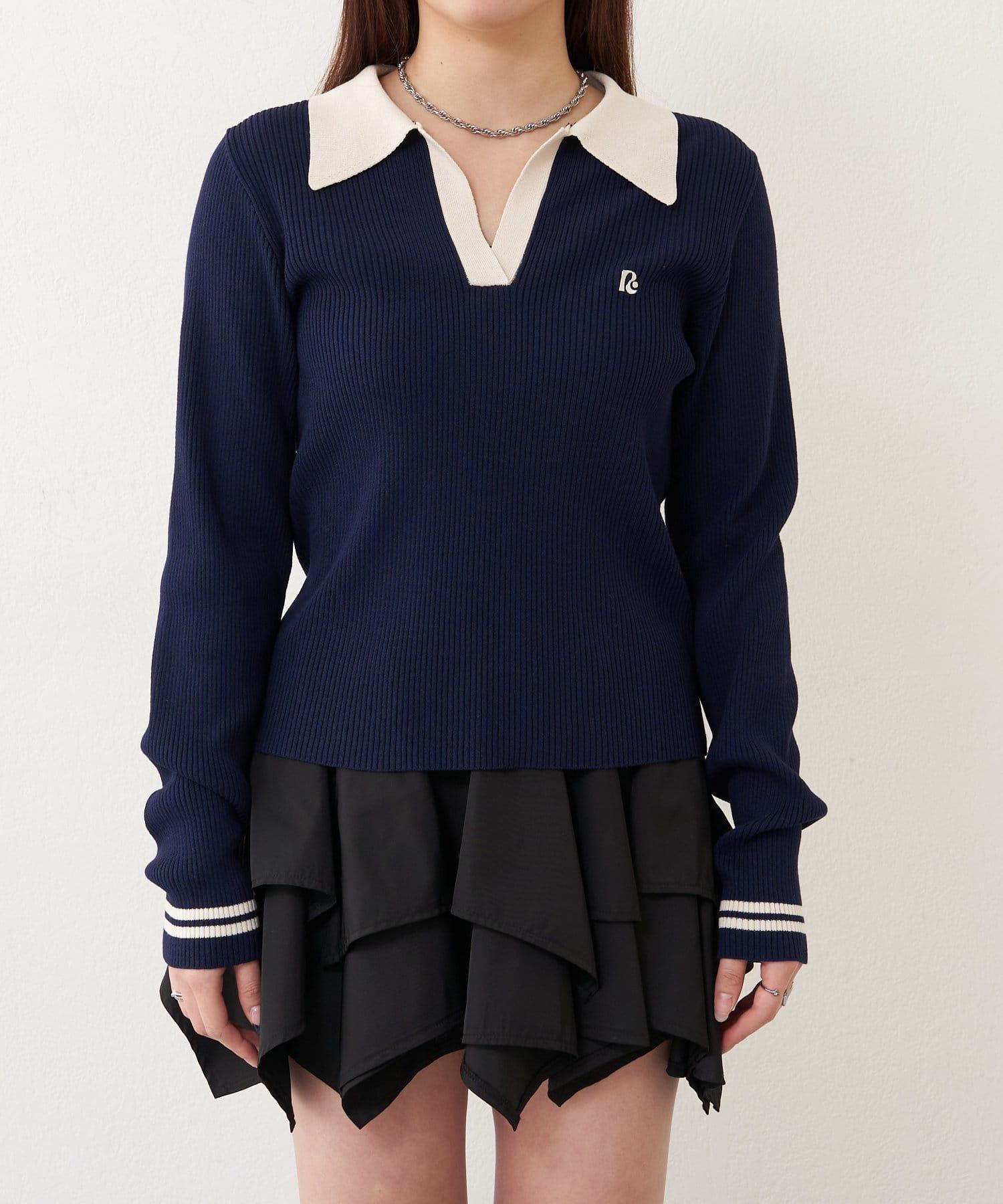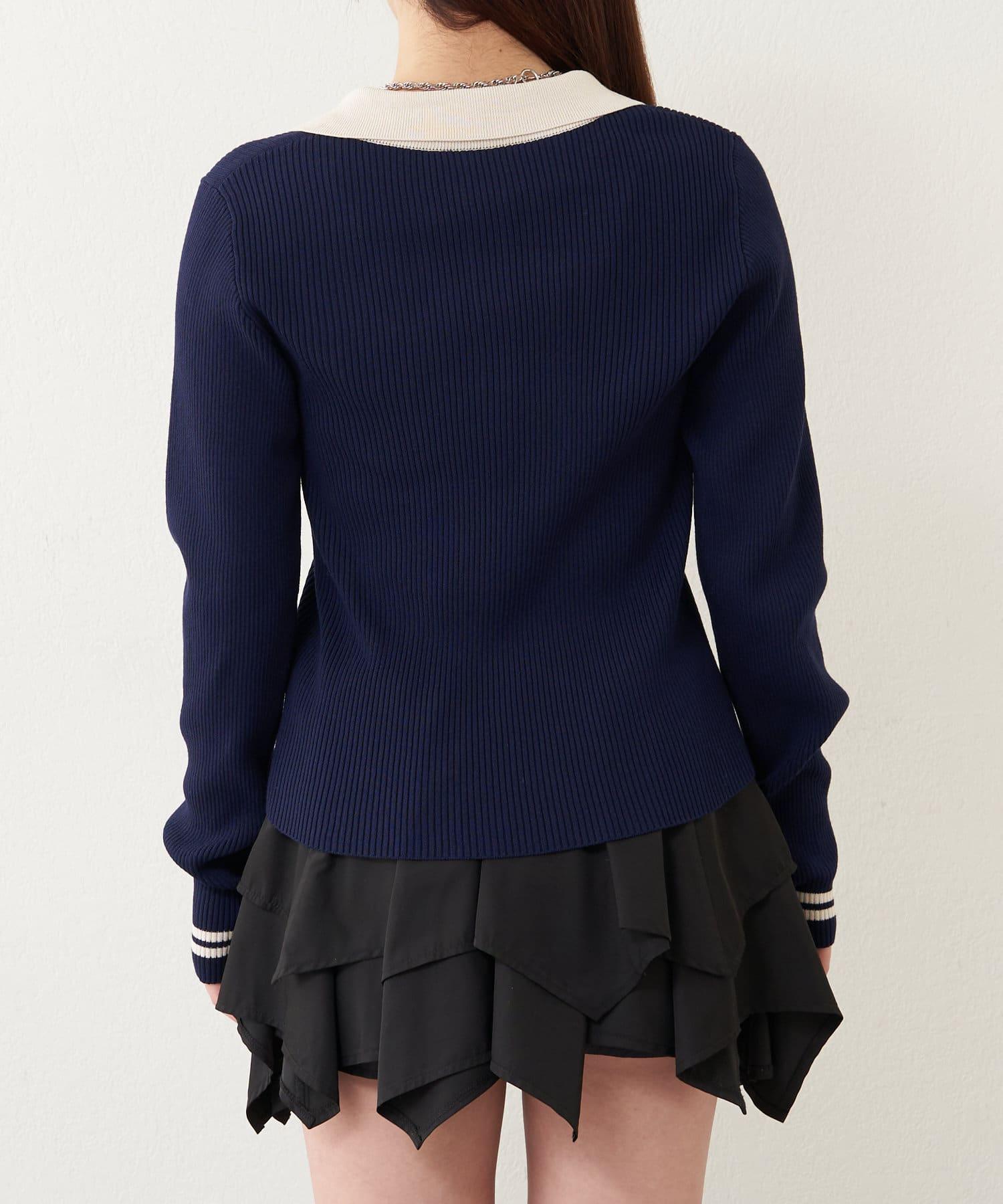 【RAY CASSIN】胸部刺繡V領翻領修身針織衫