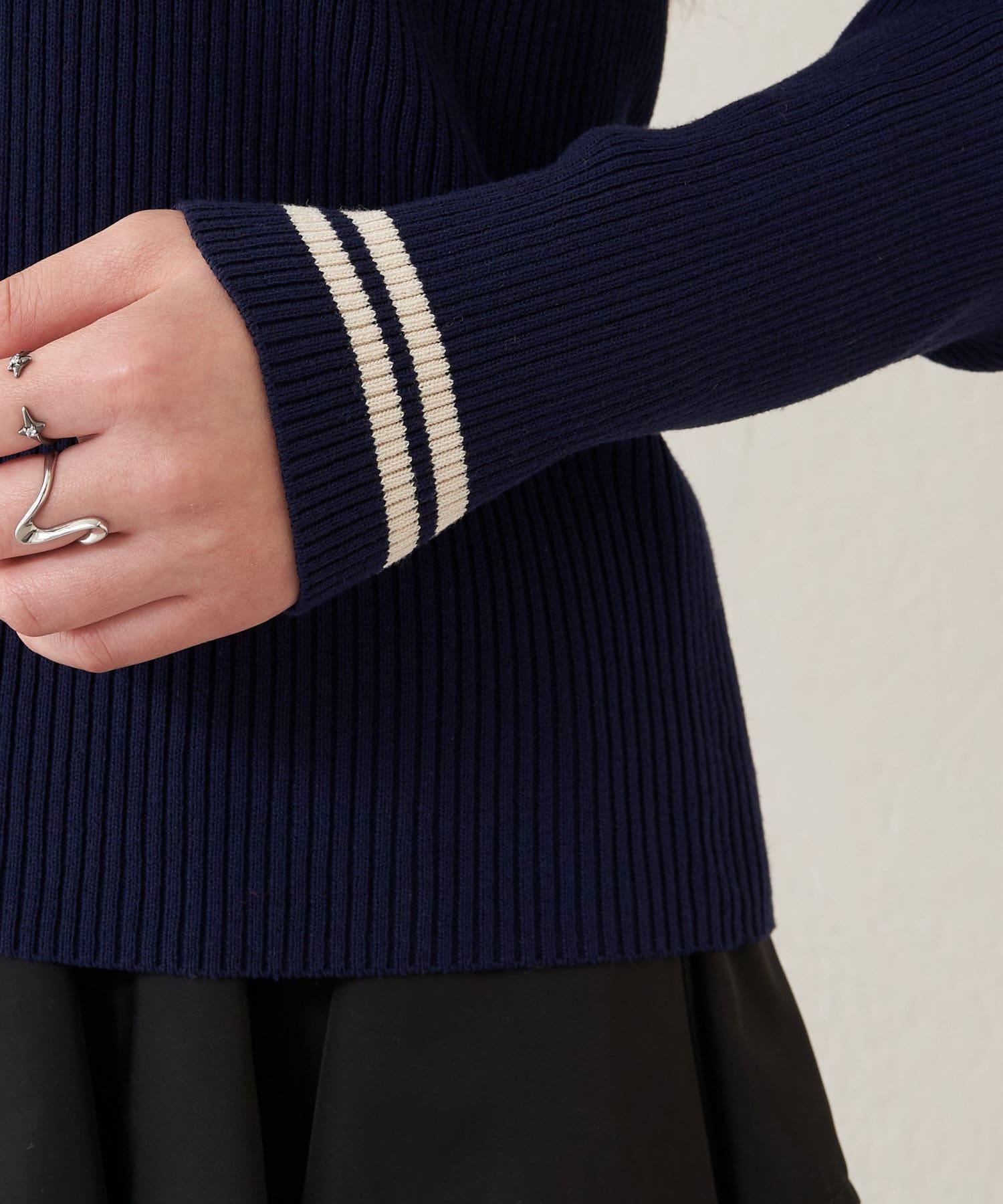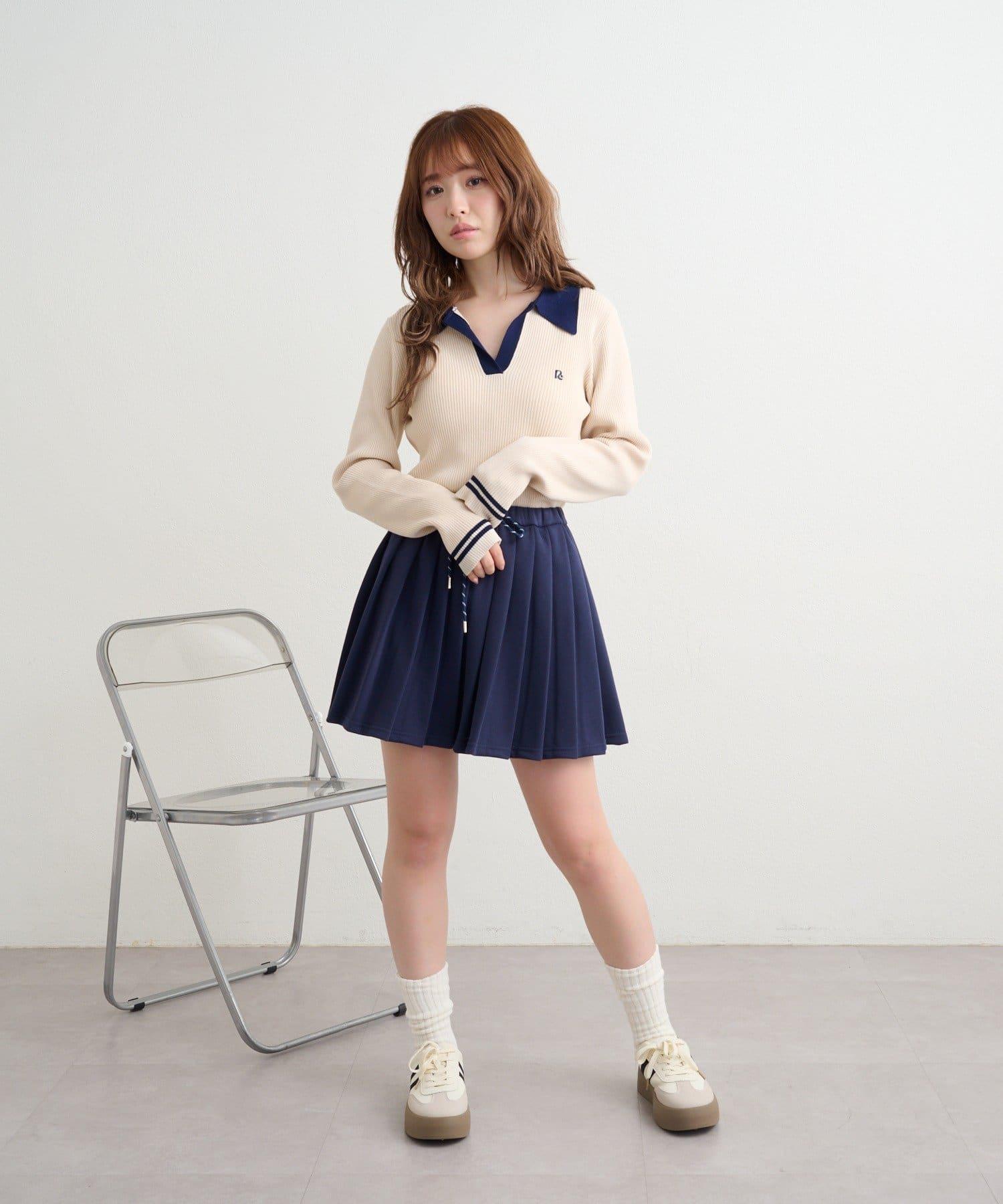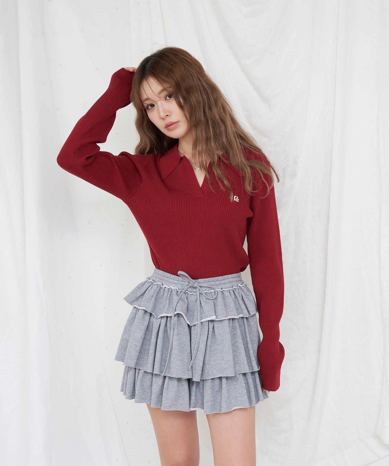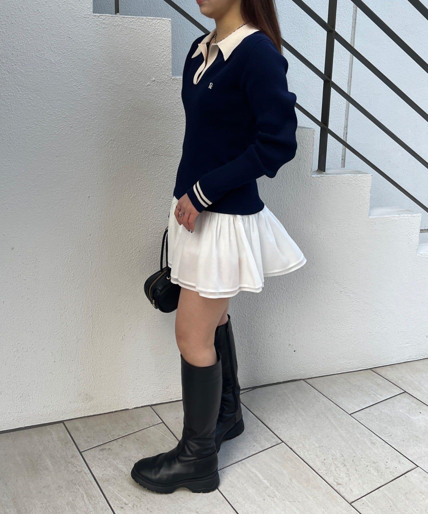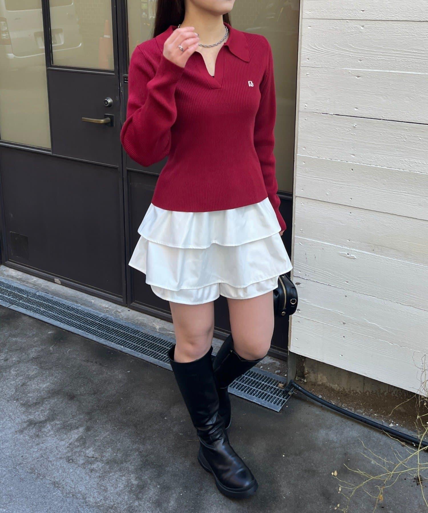 【RAY CASSIN】胸部刺繡V領翻領修身針織衫