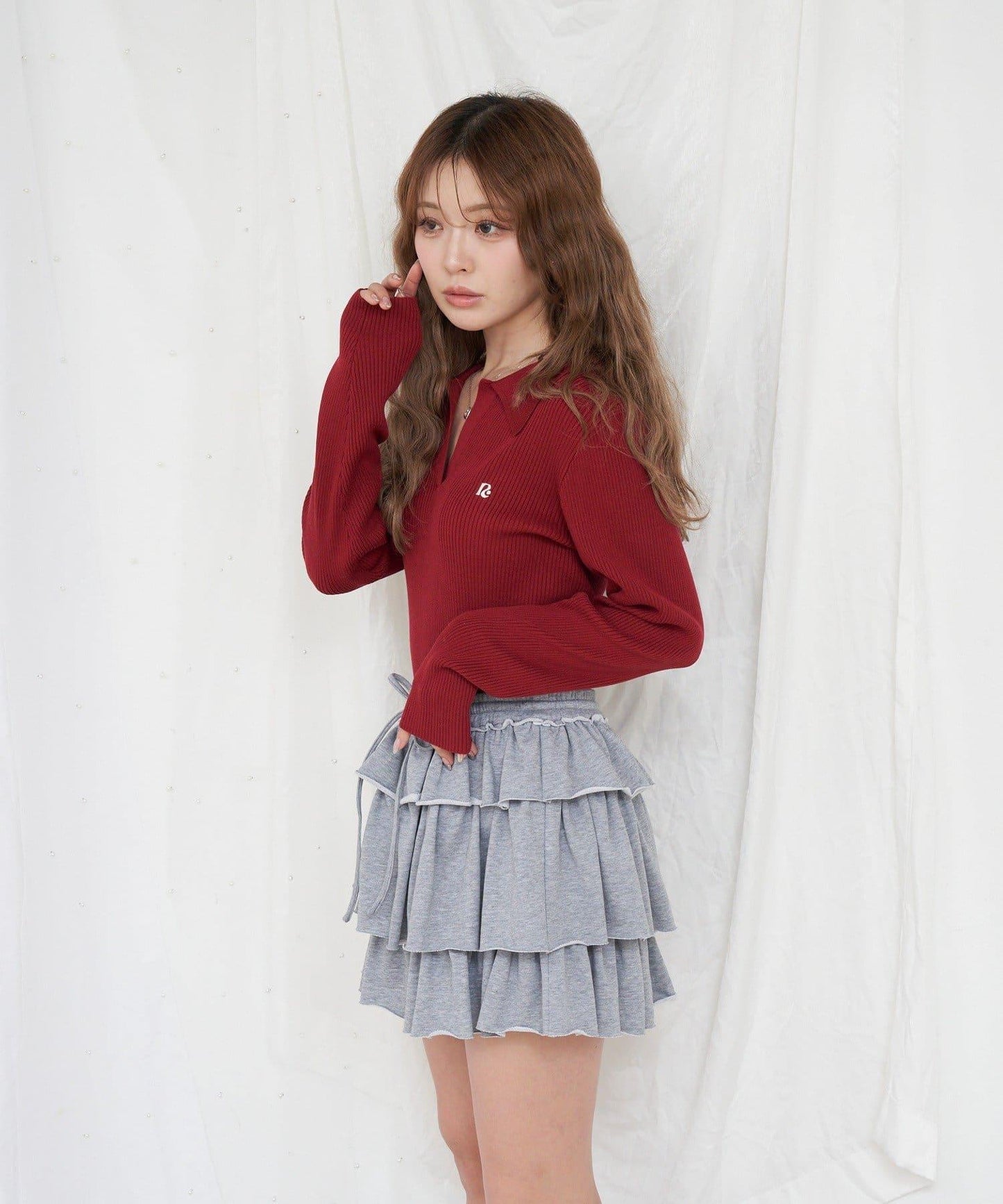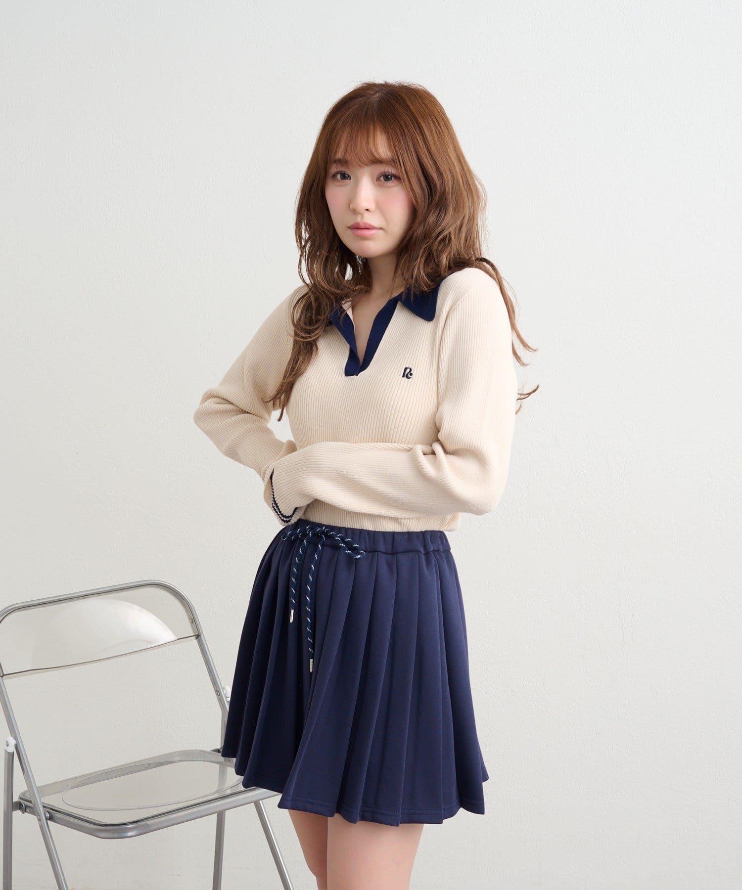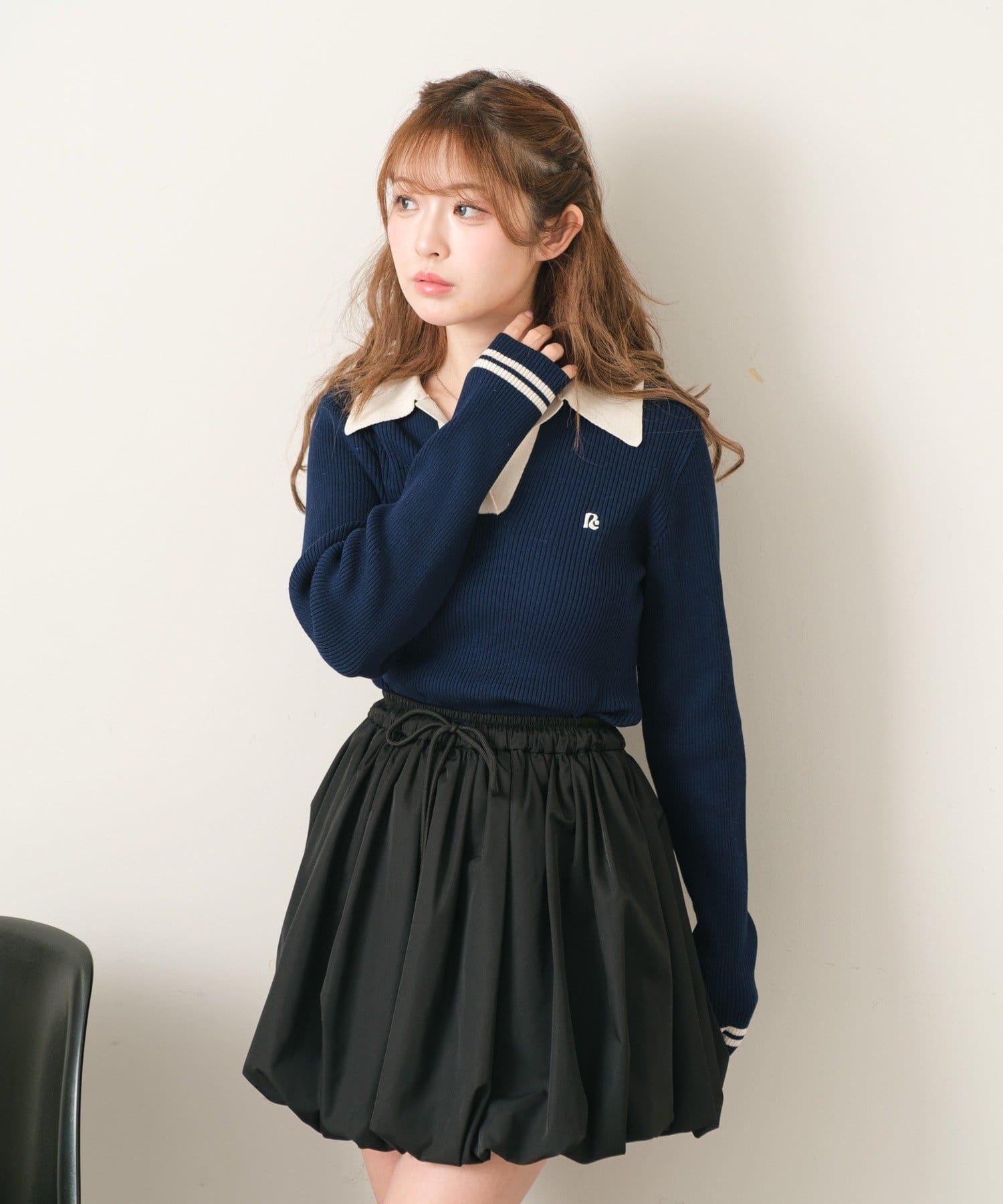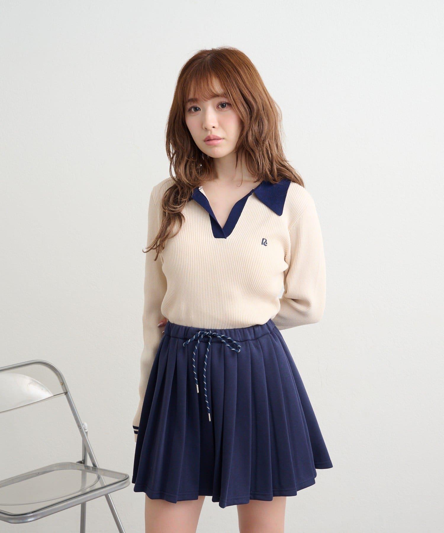 【RAY CASSIN】胸部刺繡V領翻領修身針織衫