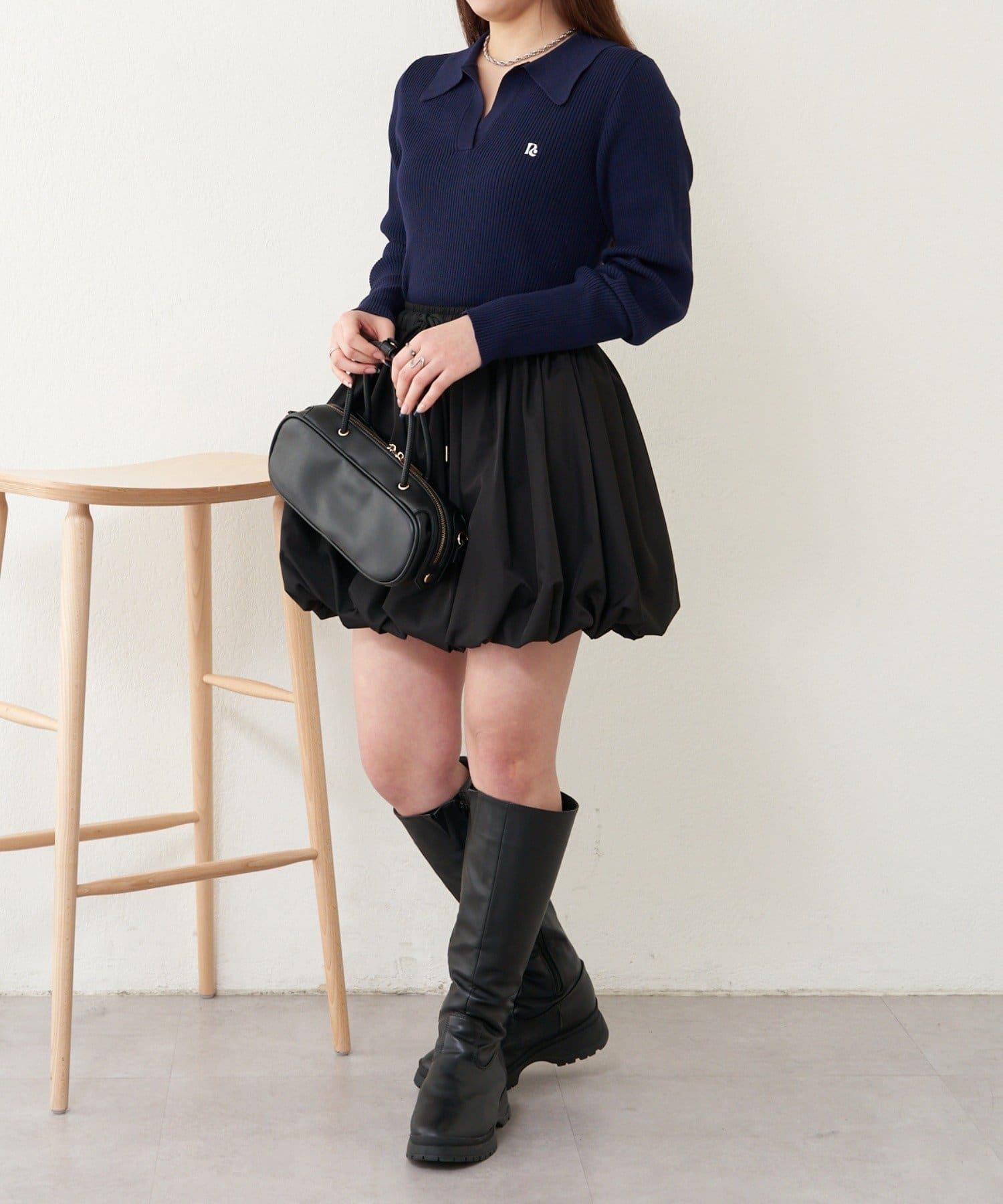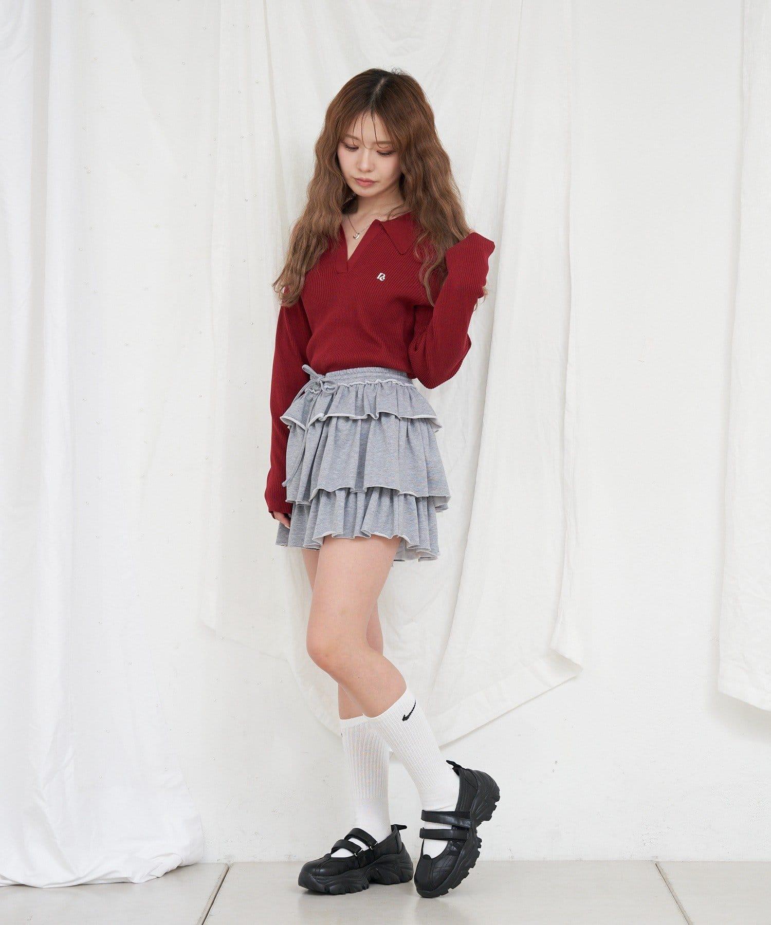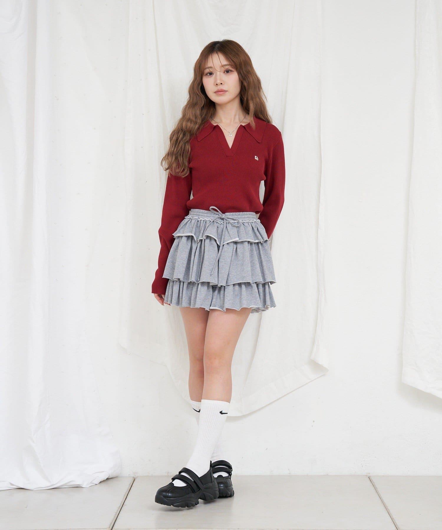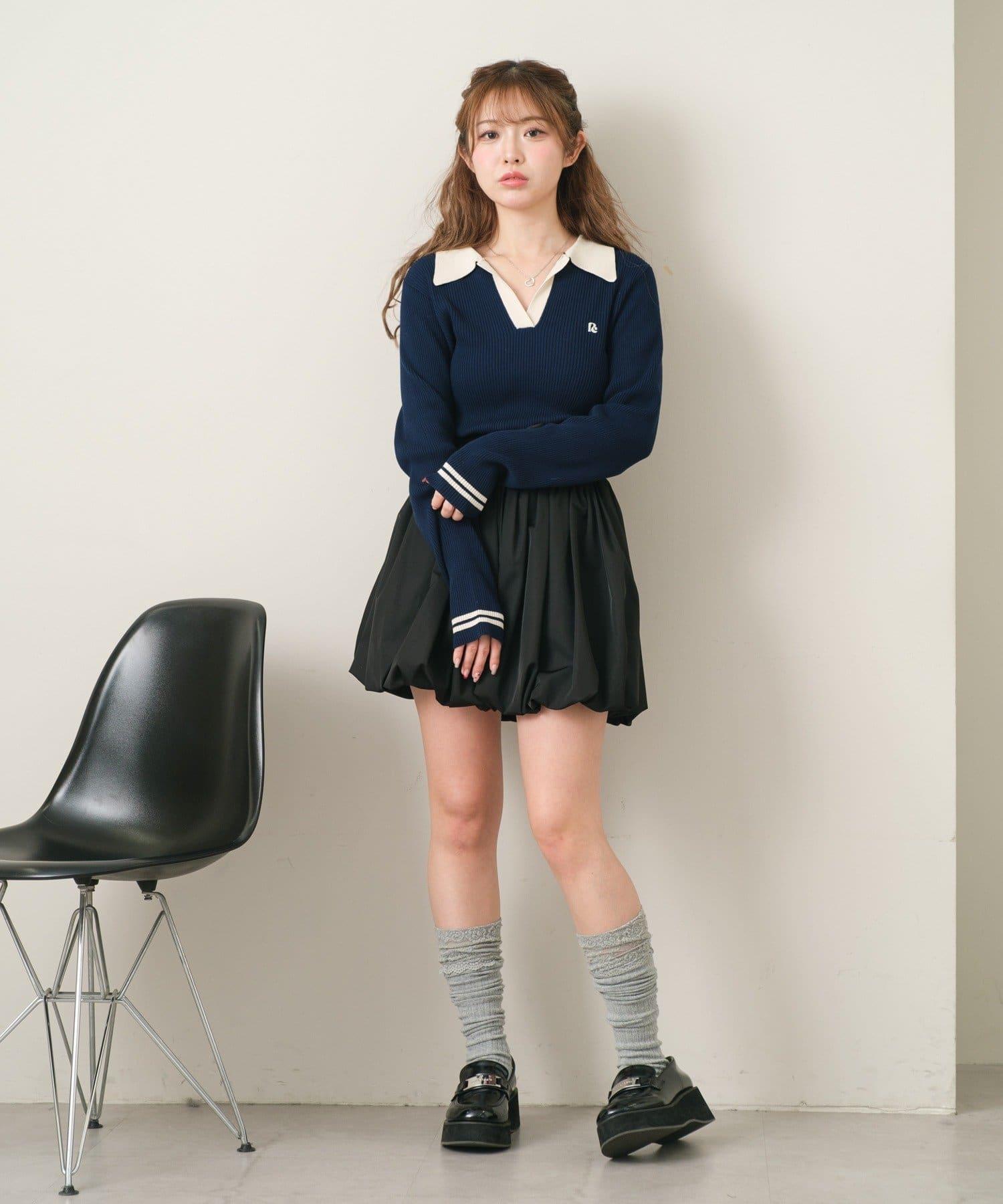 【RAY CASSIN】胸部刺繡V領翻領修身針織衫