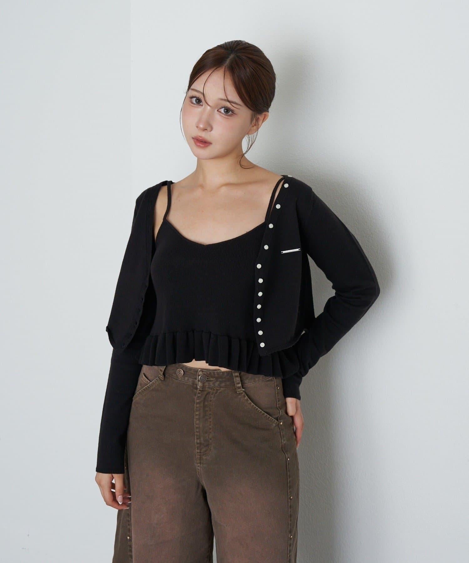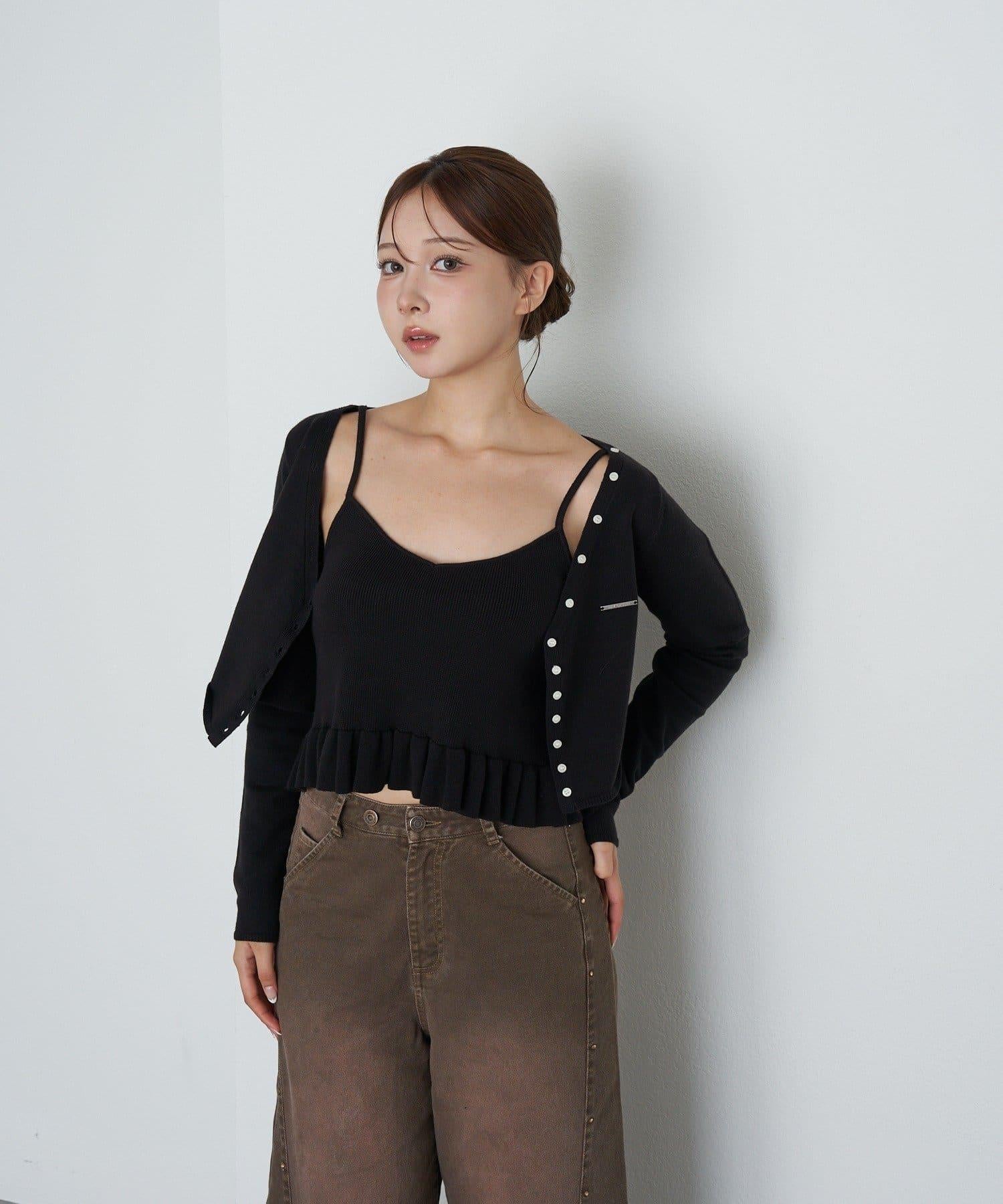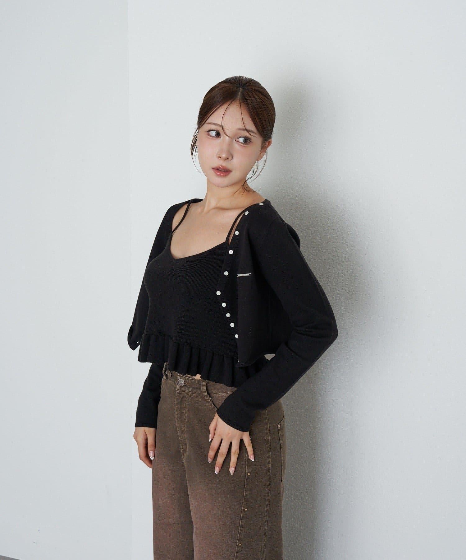 【RAY CASSIN】荷葉邊吊帶套裝開衫