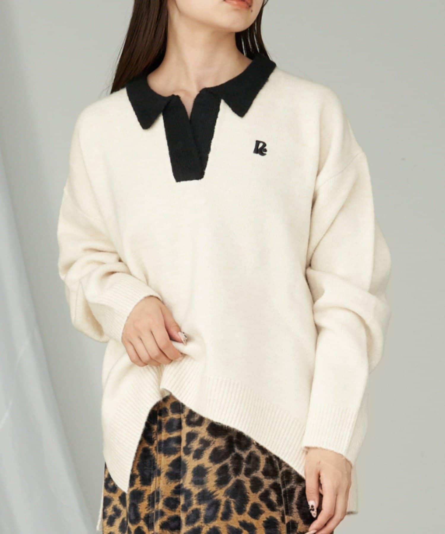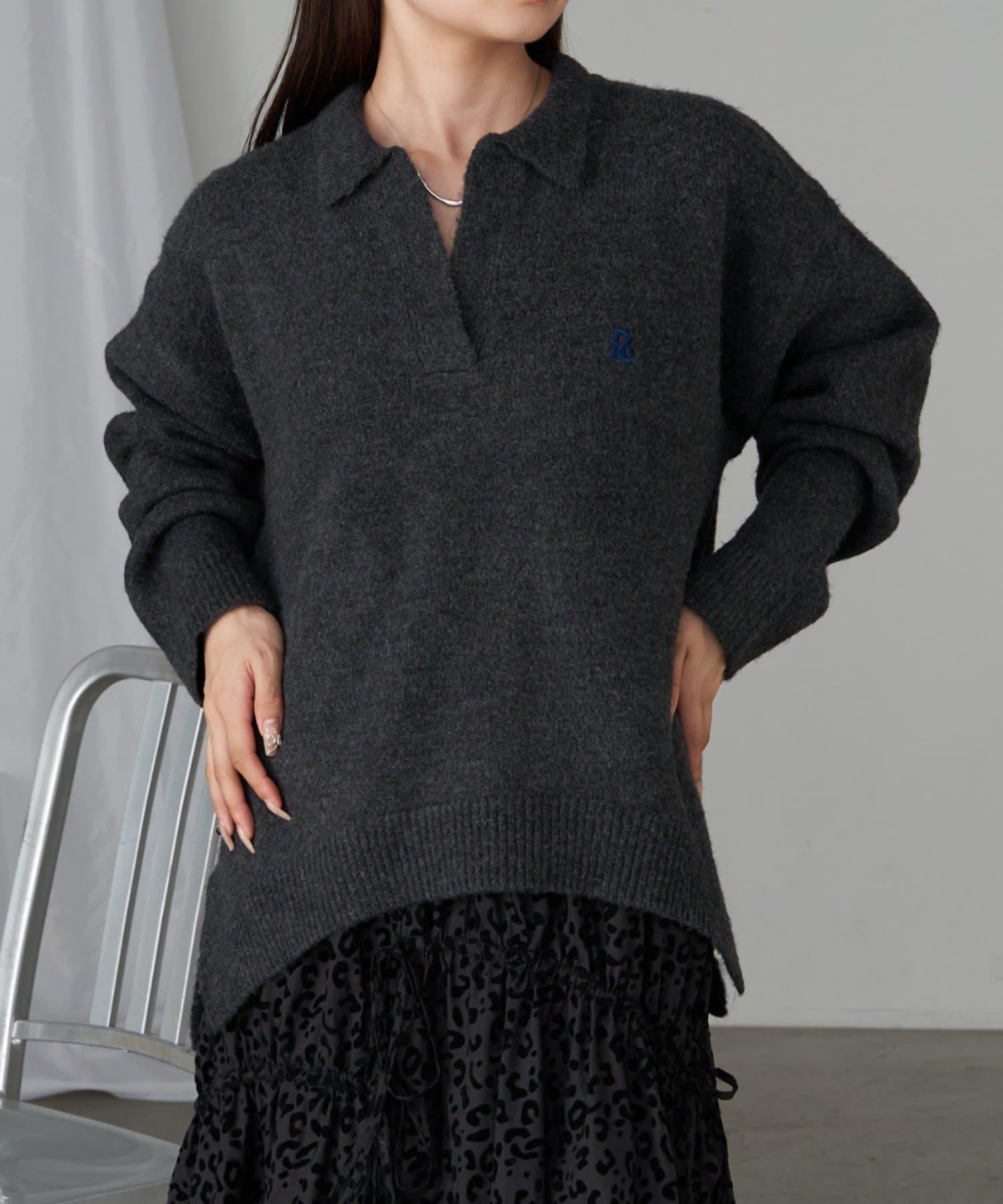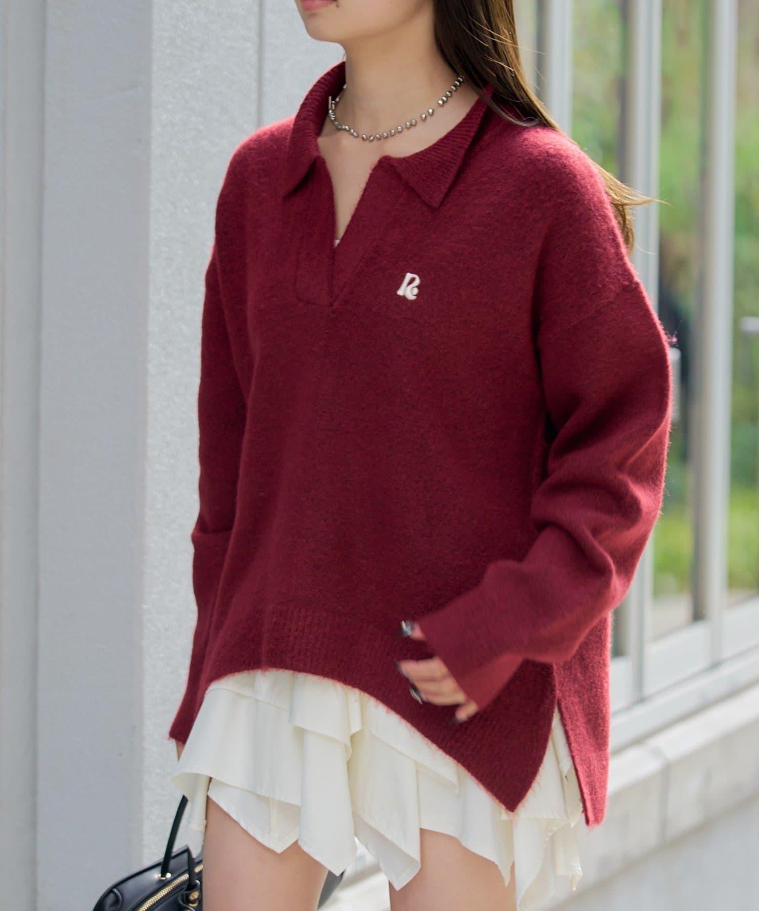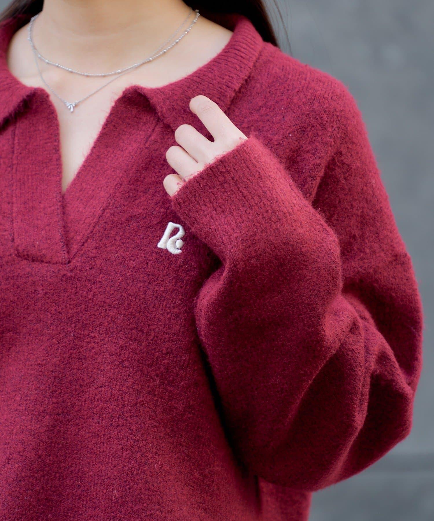 【RAY CASSIN】V領翻領刺繡針織衫 / 帶領針織衫