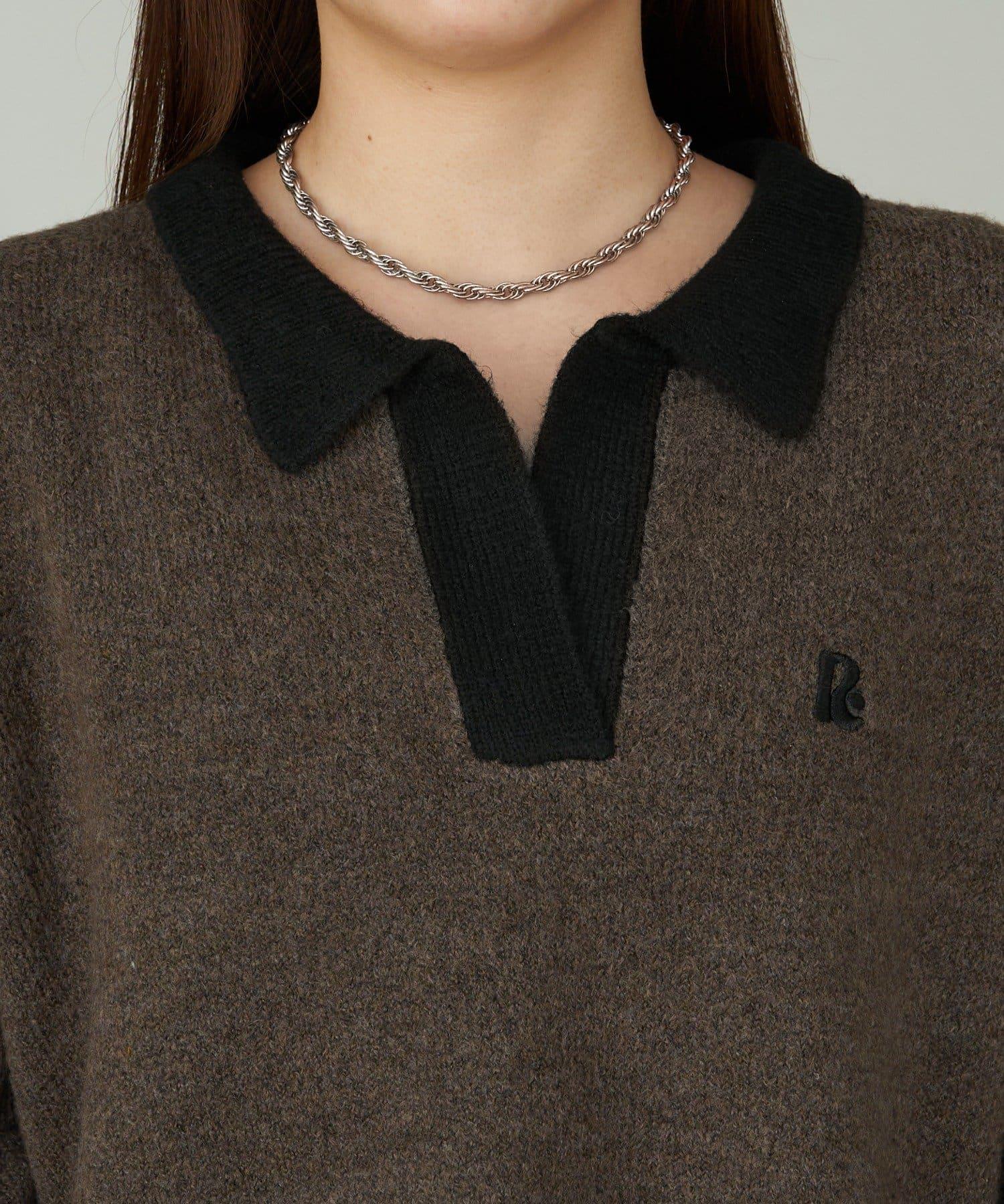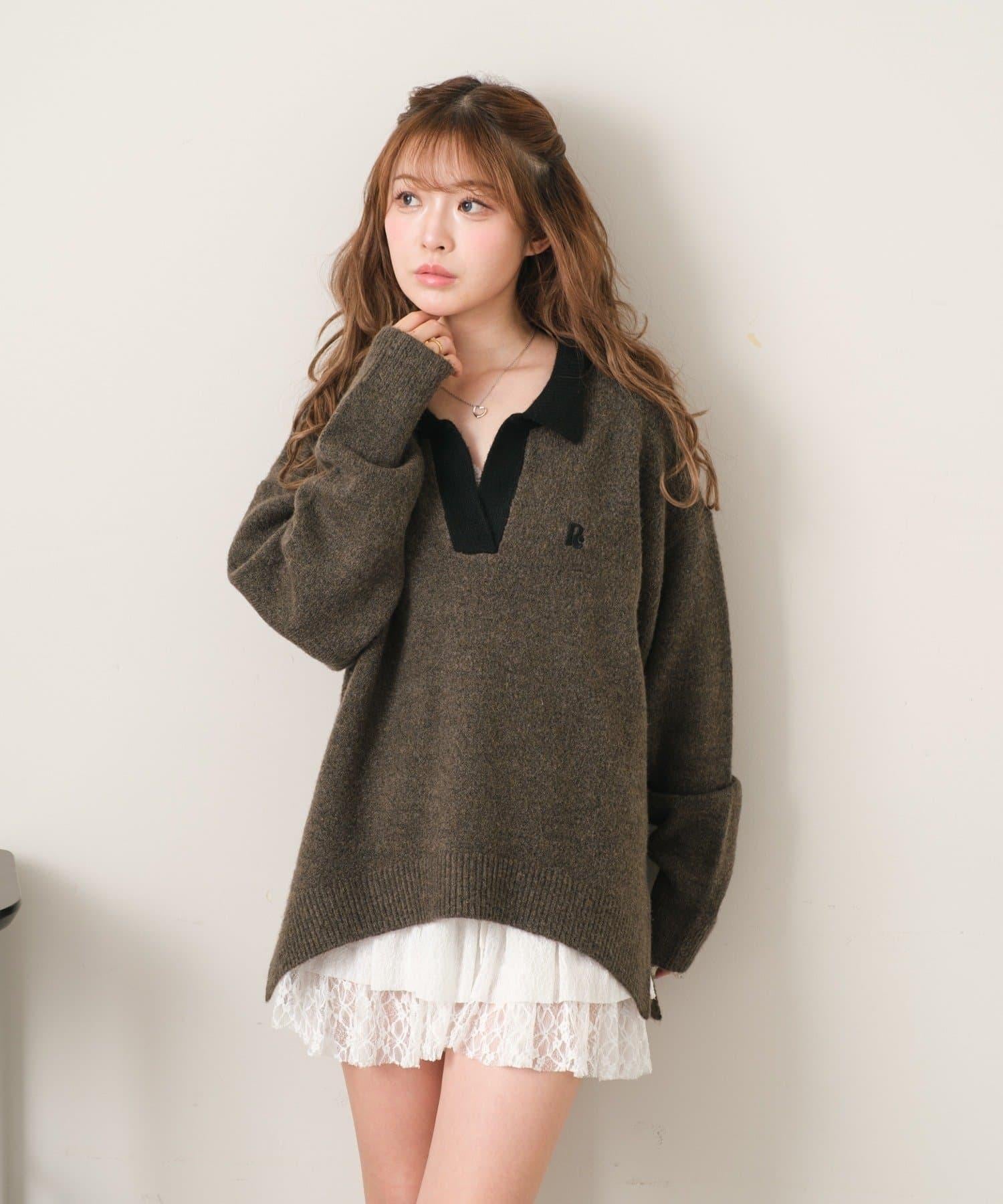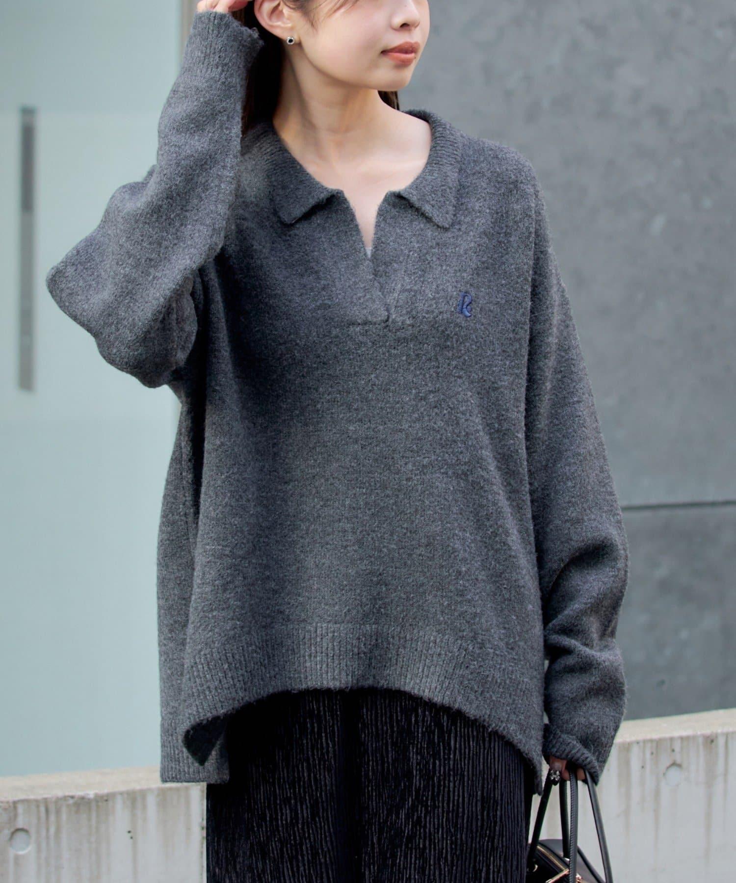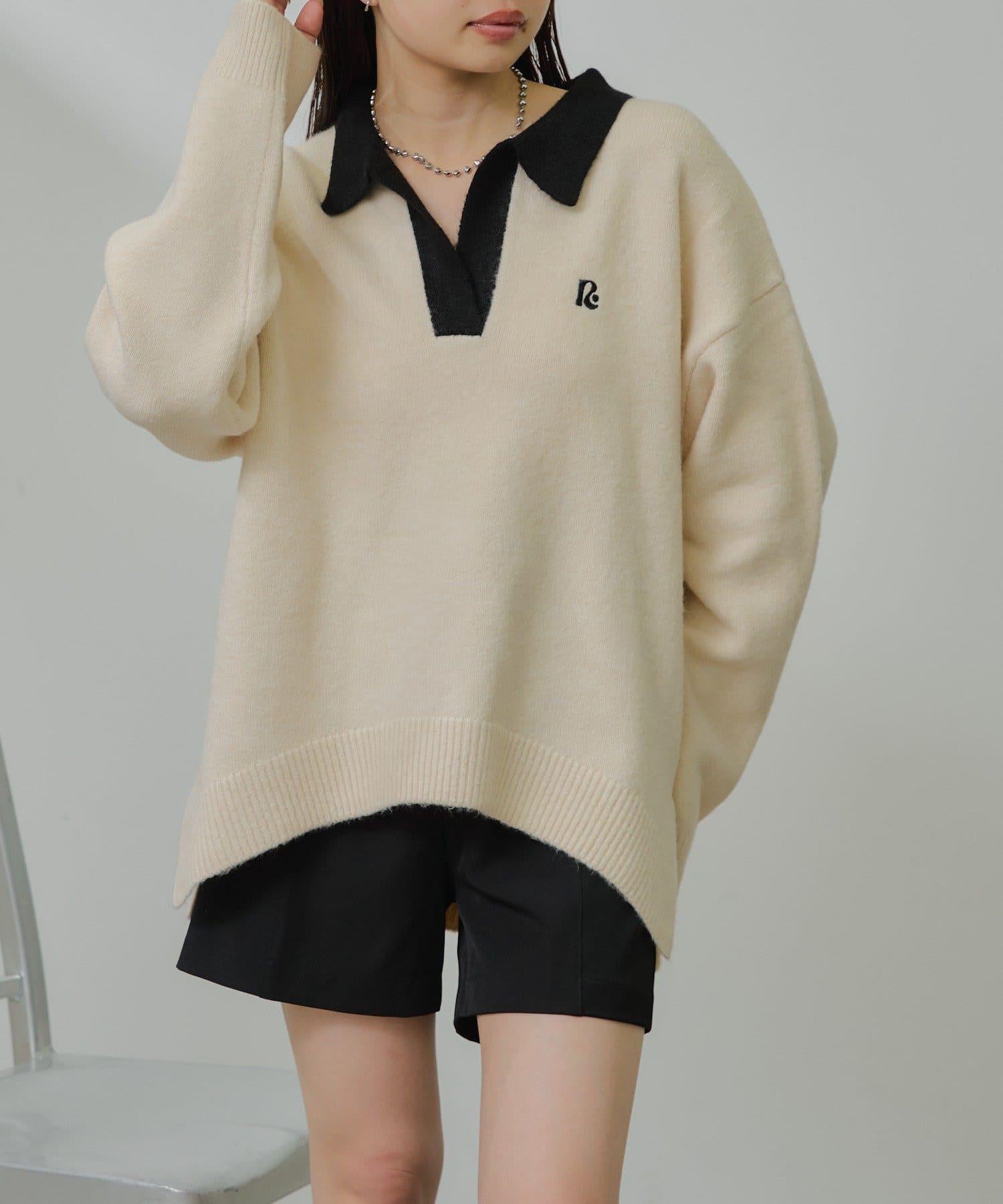 【RAY CASSIN】V領翻領刺繡針織衫 / 帶領針織衫