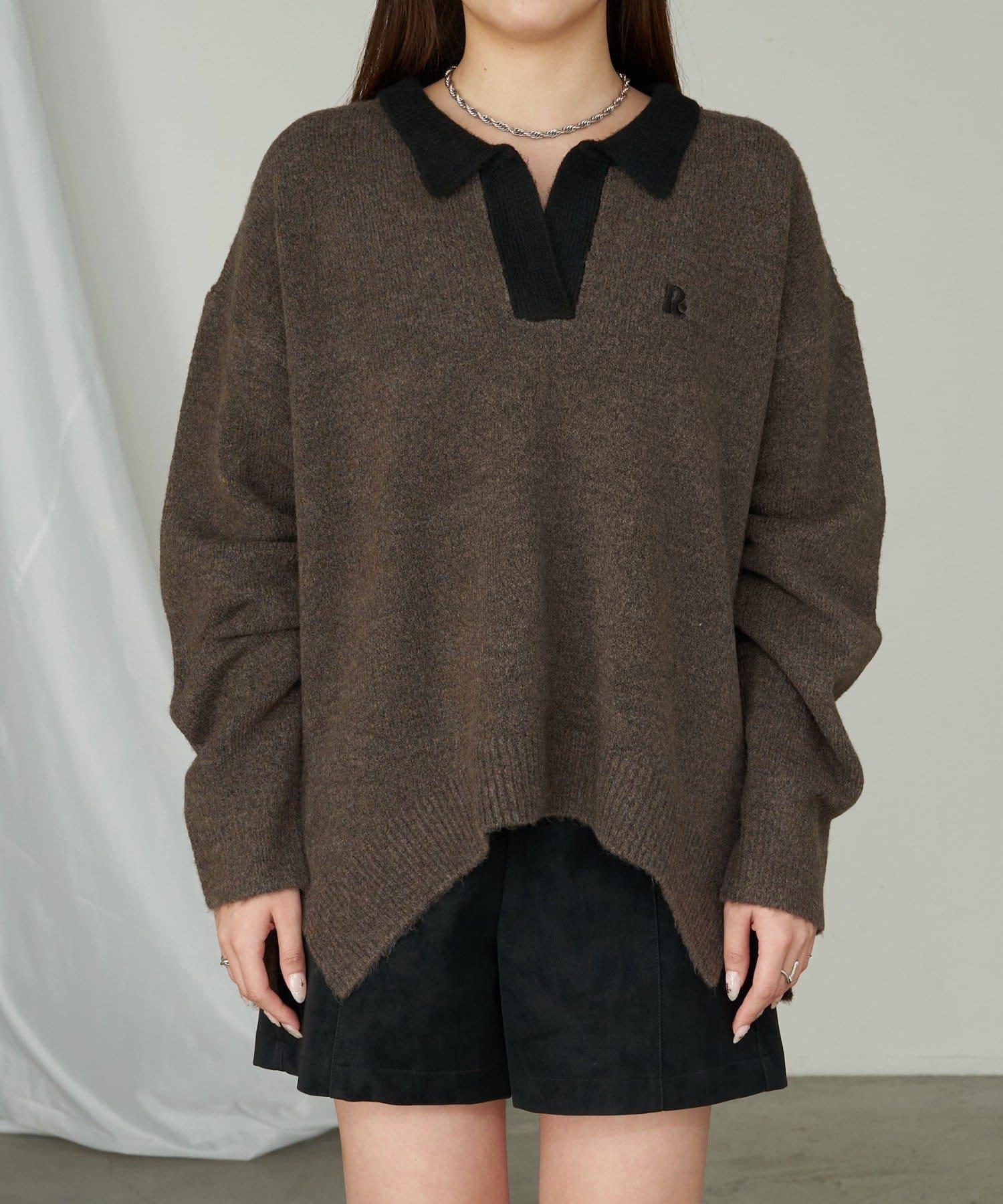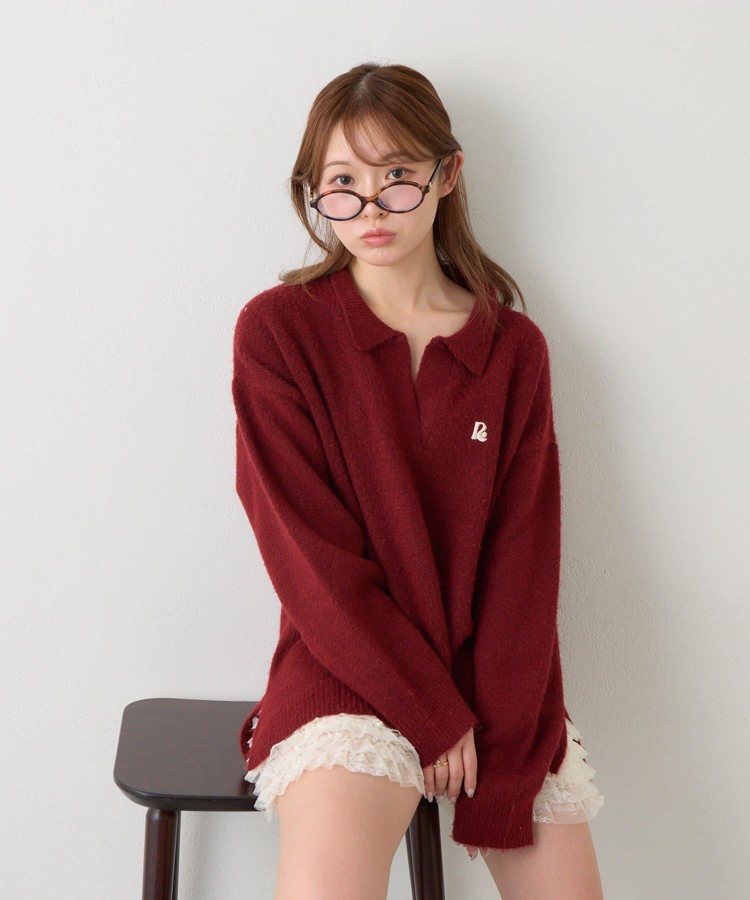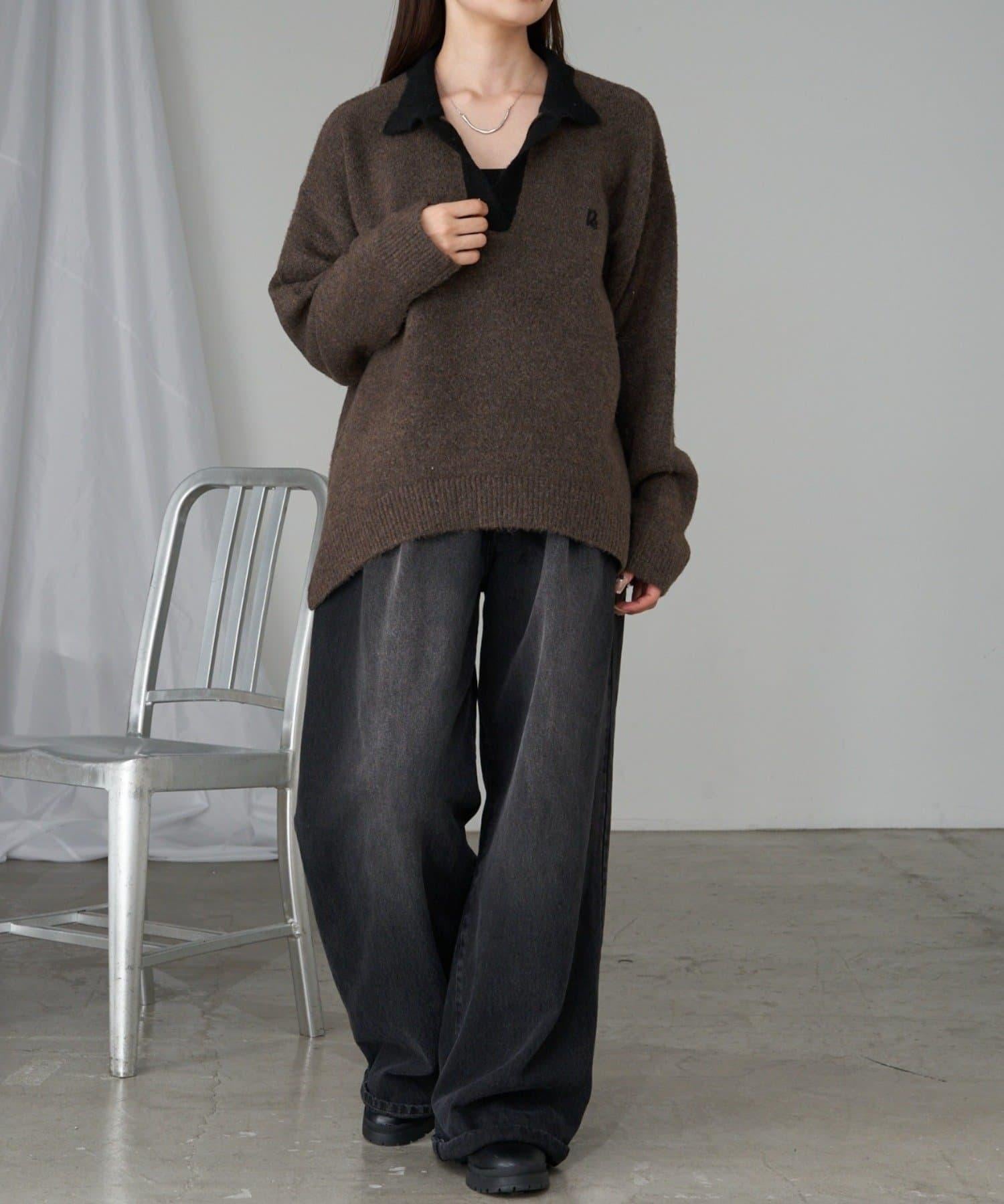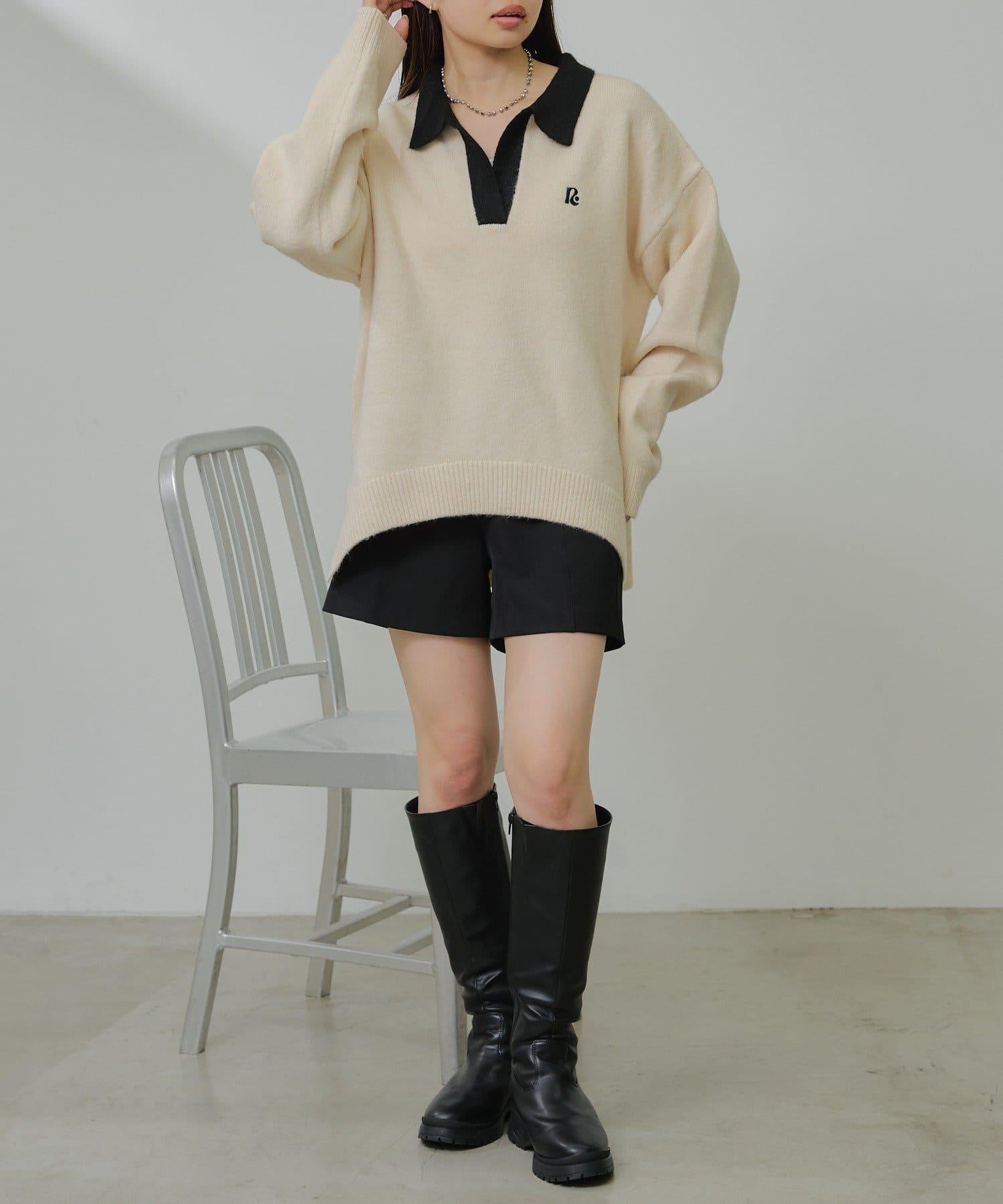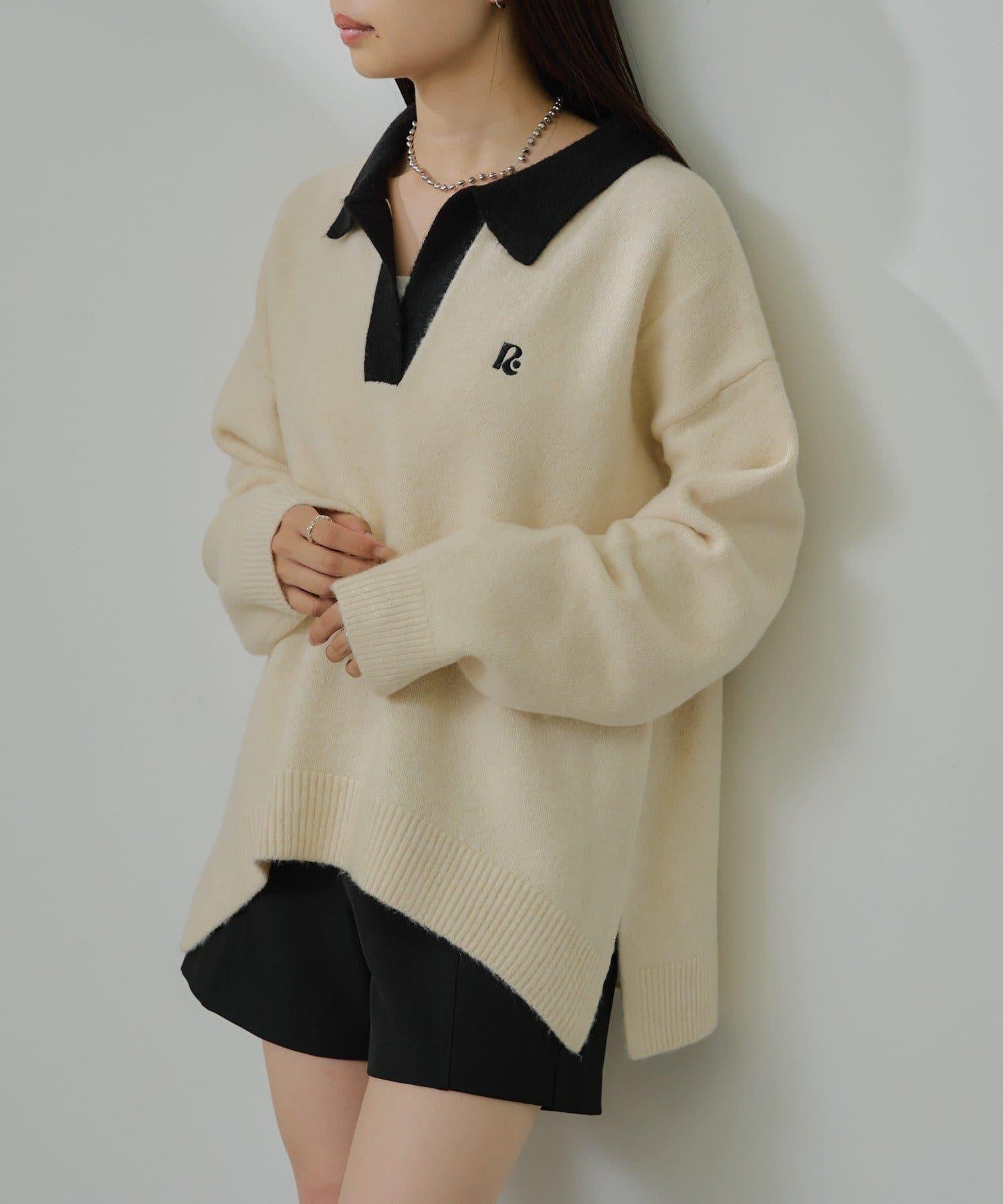 【RAY CASSIN】V領翻領刺繡針織衫 / 帶領針織衫